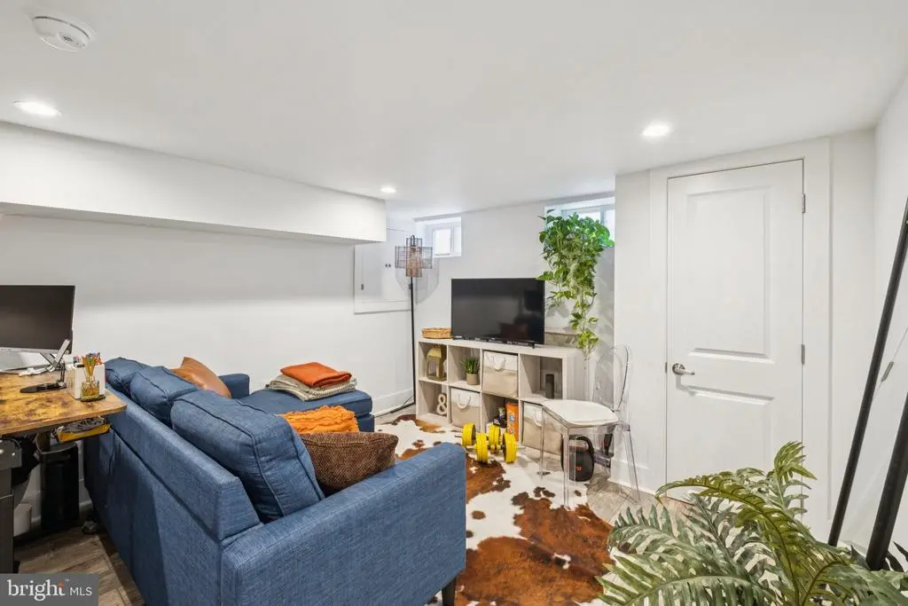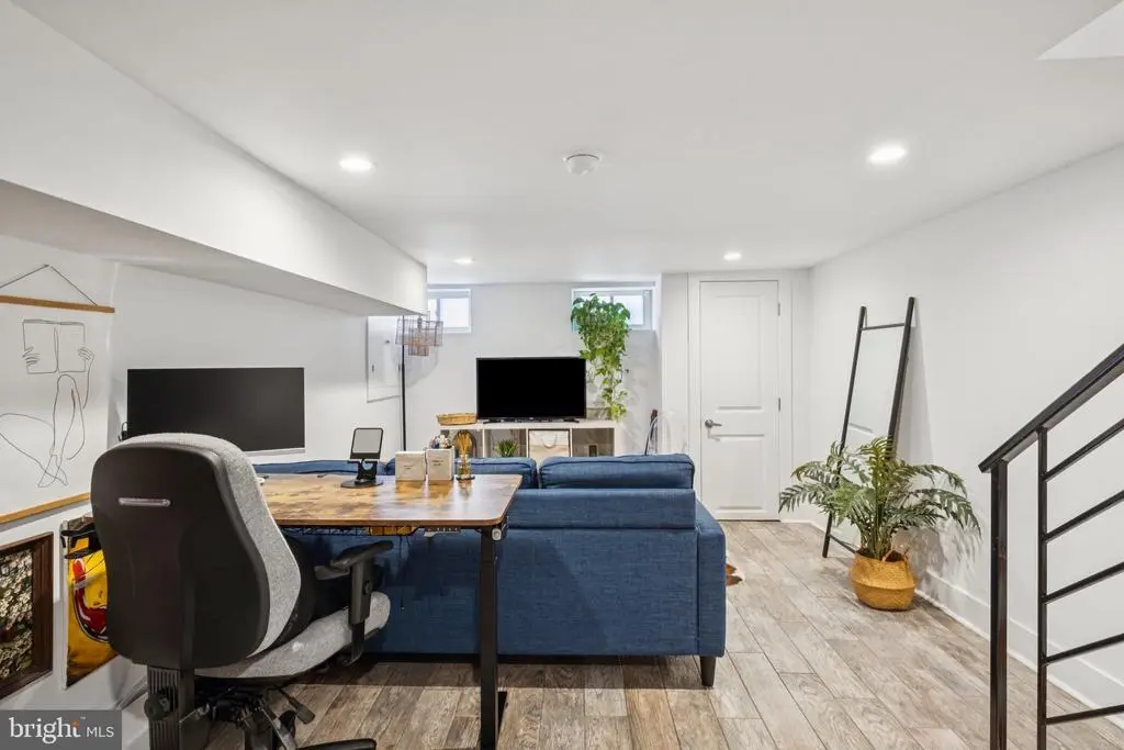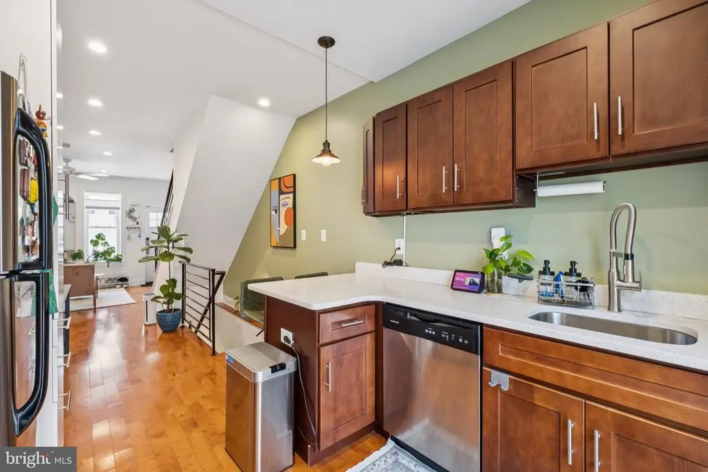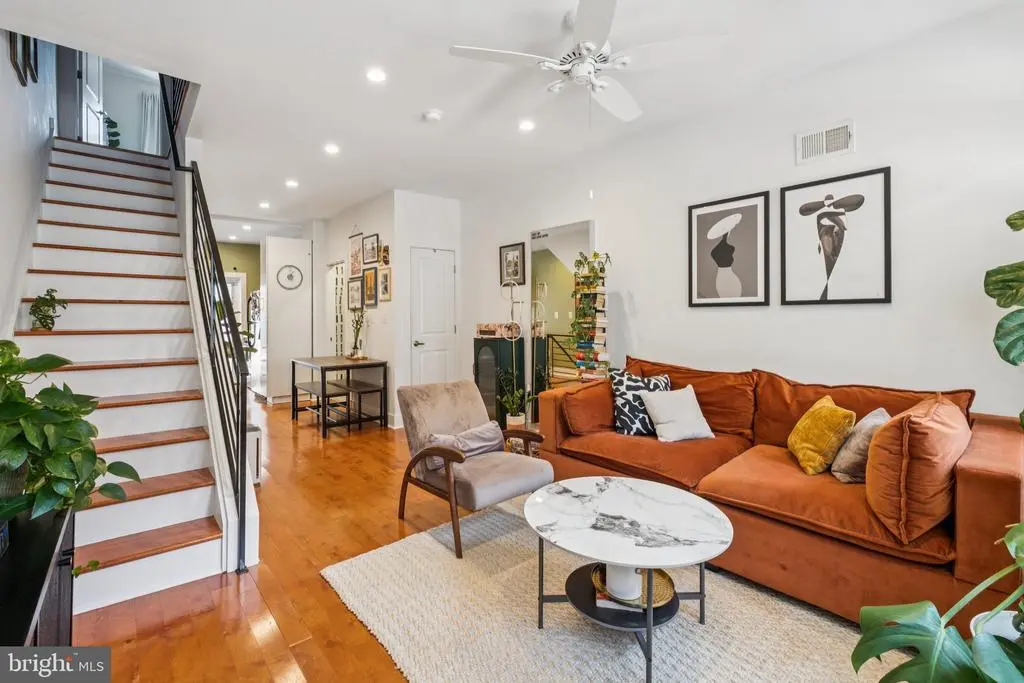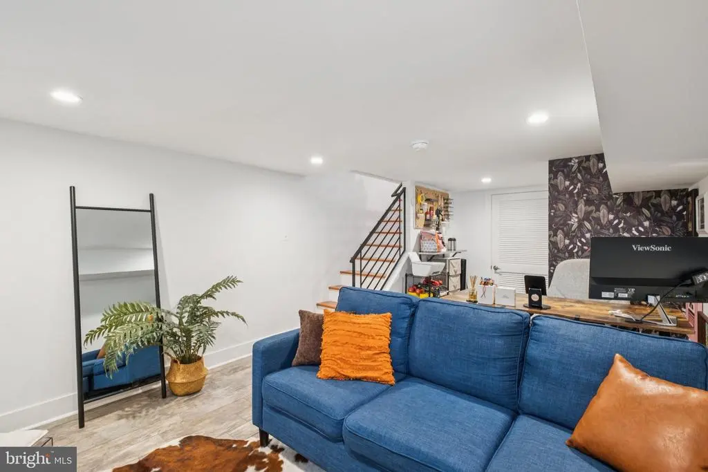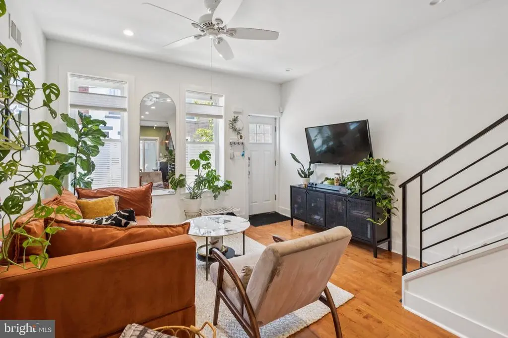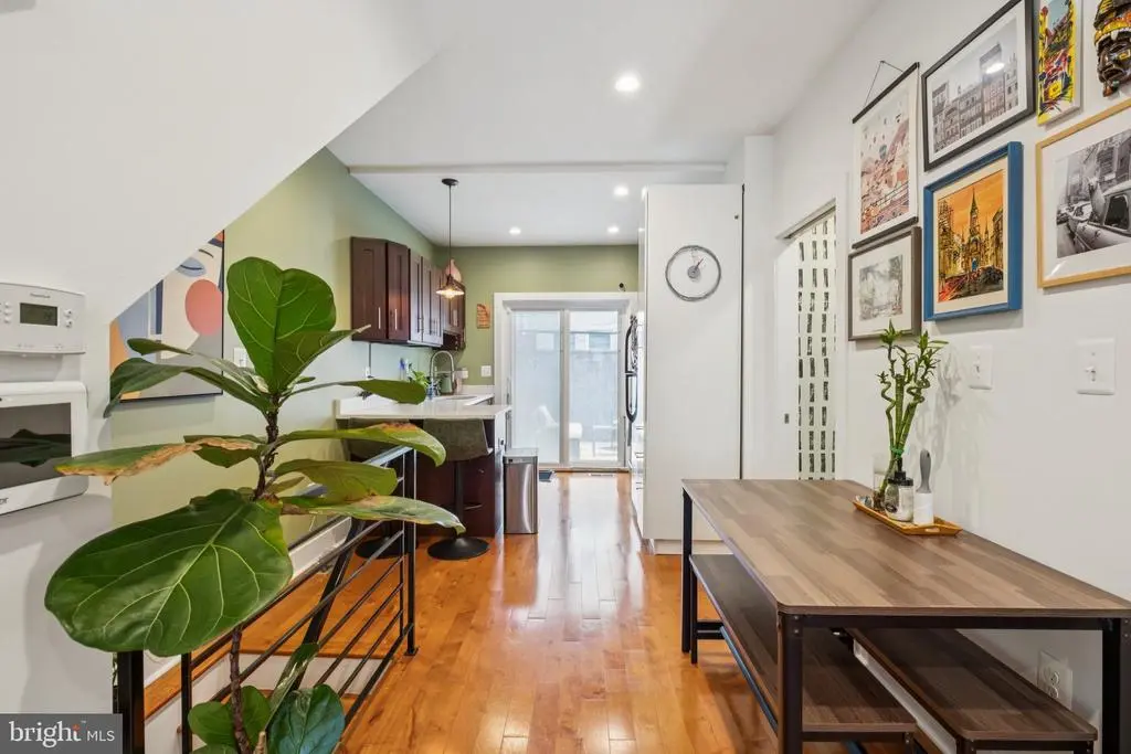 Welcome to 1723 S Dorrance Street, a fully renovated 2-bedroom, 2.5 -bathroom rowhome in the vibrant Point Breeze neighborhood of South Philadelphia, where modern comfort meets stylish, plant-filled living in a quiet yet conveniently located block. Step inside to discover an inviting open-concept living and dining area featuring warm hardwood floors and abundant natural light from large windows, complemented by lush greenery like fiddle-leaf figs and monstera plants that create a serene, bohemian vibe; the adjacent kitchen boasts fresh mint-green cabinetry, quartz countertops, stainless steel appliances including a gas range and dishwasher, and a breakfast bar perfect for casual meals. Upstairs, the primary bedroom boasts built-in shelving for versatile space, while the second bedroom provides ample room with fresh white walls and more greenery; both bathrooms shine with contemporary finishes, including a powder room with bold black-and-white striped wallpaper, a modern vanity, and a full bath with subway tiles and a rainfall shower. The finished basement is a versatile haven with laundry facilities, all under recessed lighting and accented by a feature wall with botanical wallpaper for added charm. Nestled in the highly walkable heart of Point Breeze, this gem is just steps from popular local favorites like Two Eagles Cafe, Batter & Crumbs, Hardena, The Tasty Toast, and American Sardine Bar, with excellent public transportation access via the nearby Broad Street Line for quick commutes to Center City and beyond—schedule your showing today to experience urban living at its finest! * 2 years remaining on the 10 year tax abatement on the improvement value *