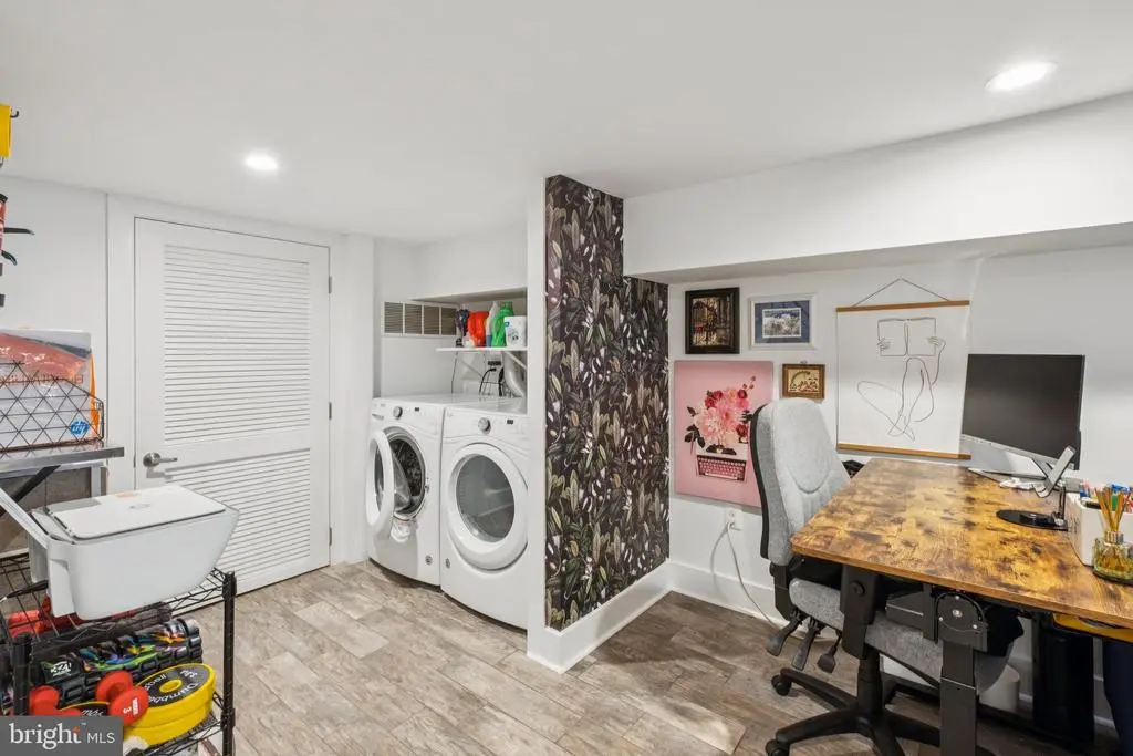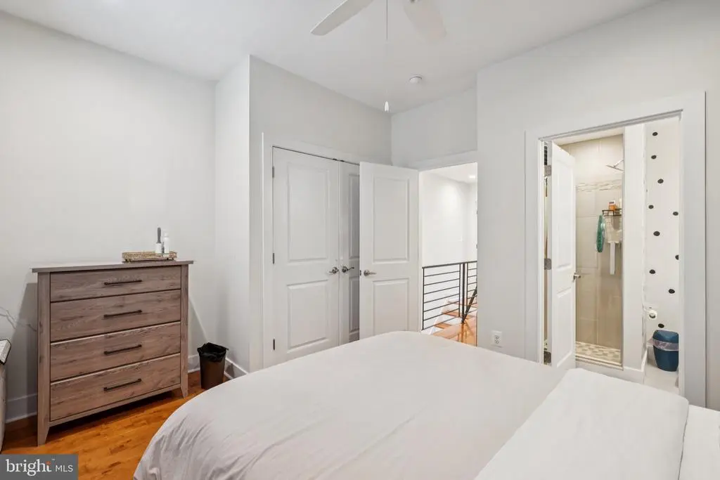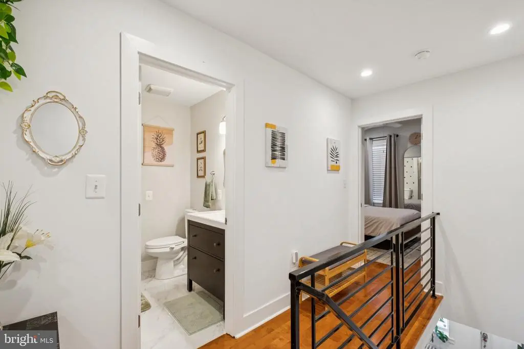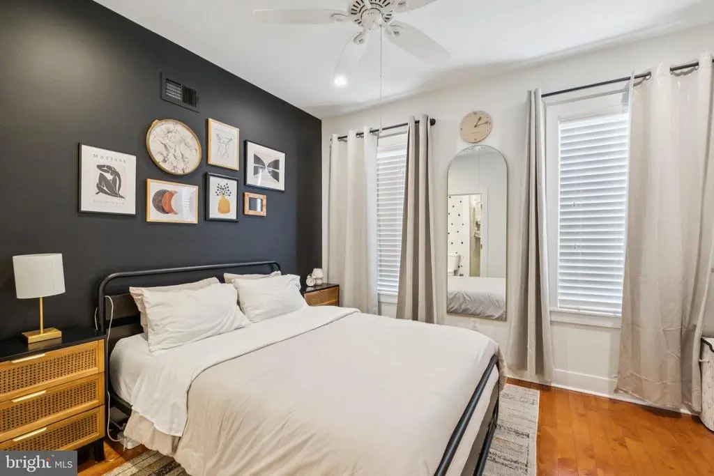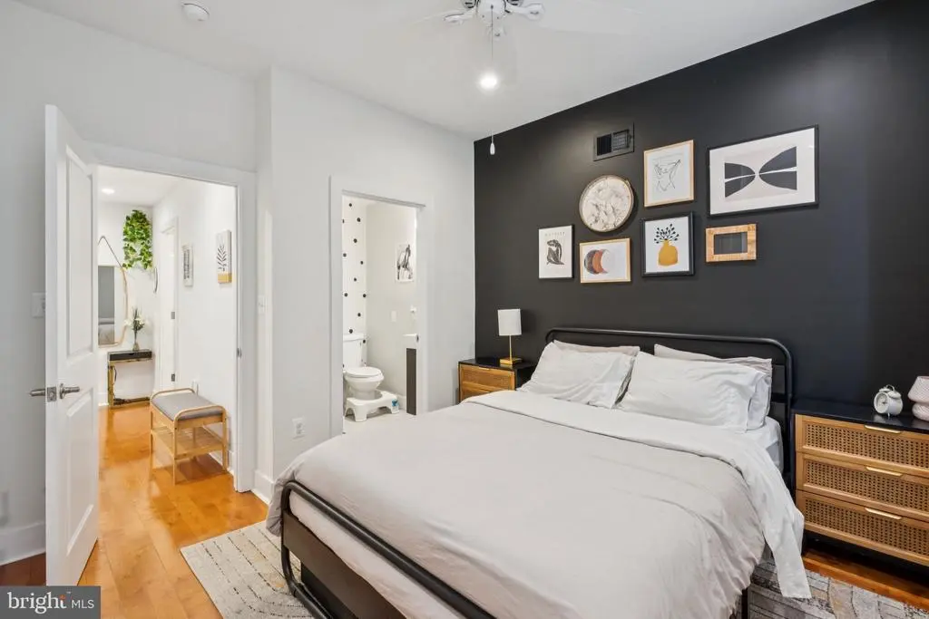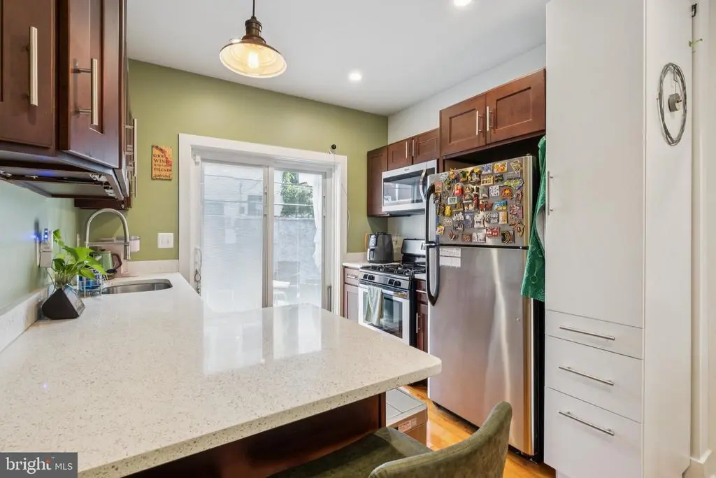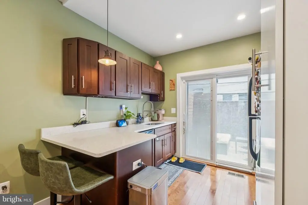 Welcome to 1723 S Dorrance Street, a fully renovated 2-bedroom, 2.5 -bathroom rowhome in the vibrant Point Breeze neighborhood of South Philadelphia, where modern comfort meets stylish, plant-filled living in a quiet yet conveniently located block. Step inside to discover an inviting open-concept living and dining area featuring warm hardwood floors and abundant natural light from large windows, complemented by lush greenery like fiddle-leaf figs and monstera plants that create a serene, bohemian vibe; the adjacent kitchen boasts fresh mint-green cabinetry, quartz countertops, stainless steel appliances including a gas range and dishwasher, and a breakfast bar perfect for casual meals. Upstairs, the primary bedroom boasts built-in shelving for versatile space, while the second bedroom provides ample room with fresh white walls and more greenery; both bathrooms shine with contemporary finishes, including a powder room with bold black-and-white striped wallpaper, a modern vanity, and a full bath with subway tiles and a rainfall shower. The finished basement is a versatile haven with laundry facilities, all under recessed lighting and accented by a feature wall with botanical wallpaper for added charm. Nestled in the highly walkable heart of Point Breeze, this gem is just steps from popular local favorites like Two Eagles Cafe, Batter & Crumbs, Hardena, The Tasty Toast, and American Sardine Bar, with excellent public transportation access via the nearby Broad Street Line for quick commutes to Center City and beyond—schedule your showing today to experience urban living at its finest! * 2 years remaining on the 10 year tax abatement on the improvement value *