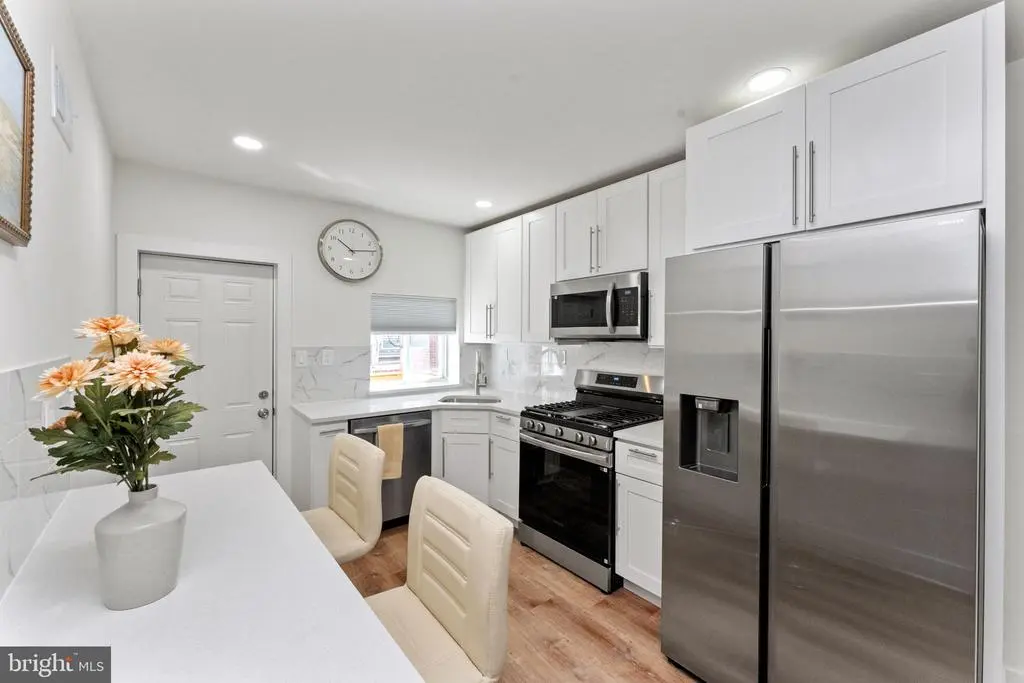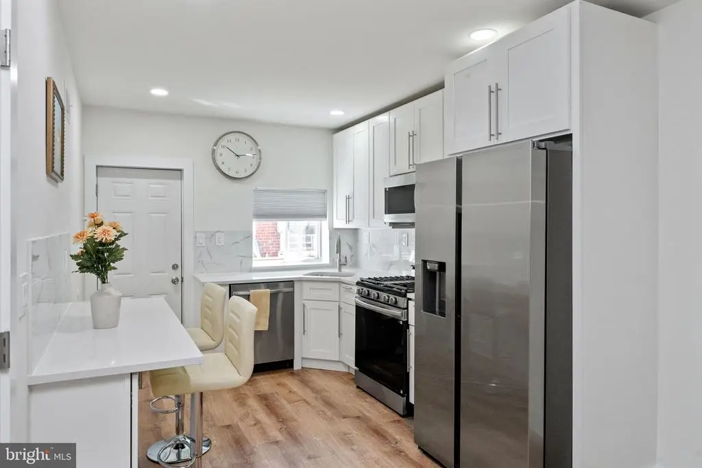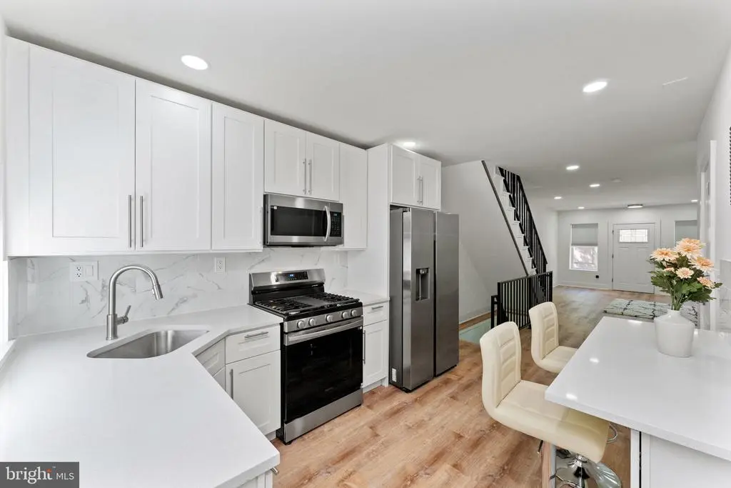 Welcome to this Carefully and Newly Renovated Large Home in the popular South Philadelphia neighborhood. Style, Quality, Workmanship, Conveniences, Location and comfort. It has been thoughtfully appointed. Walk into an impressive open floor plan concept with Beautiful Luxury vinyl plank Floors, 9Ft ceiling and recessed lights, custom made iron hand railing . Large living room lead you to your dining room. Kitchen was design in such elegance that will not Disappoint you. White shaker cabinets, quartz Counter top, beautiful Glass tile back splash, modern light fixture, and a breakfast bar , Modern faucet, and Samsung stainless steel appliances are a striking finishes that make this a perfect place to entertain. Main floor is completed with a convenient partial bathroom. From your Kitchen you will exit to a beautiful brand new wood deck, that will be great for all your outdoor entertainment. up to the second floor where you will find your master bedroom with the large closet, and big windows and plenty of natural light. Down the hallway you will find 2 bedrooms and great windows. Beautifully design hallway bathroom with great choice of ceramic tile encased bathtub, modern vanity, modern light fixture. Second floor is completed with a beautiful hallway chandelier. Your large finished basement with ceramic tile floor, Kitchen/laundry cabinets with a sink is ready for your own desire and use. Basement is completed with your new Washer and Dryer. This beautiful home has so much more, such as New Heating and cooling unit, New windows, new stairs new roof, Hot water heater, and much more. Schedule your showing today. It will not last long in this hot market!!!