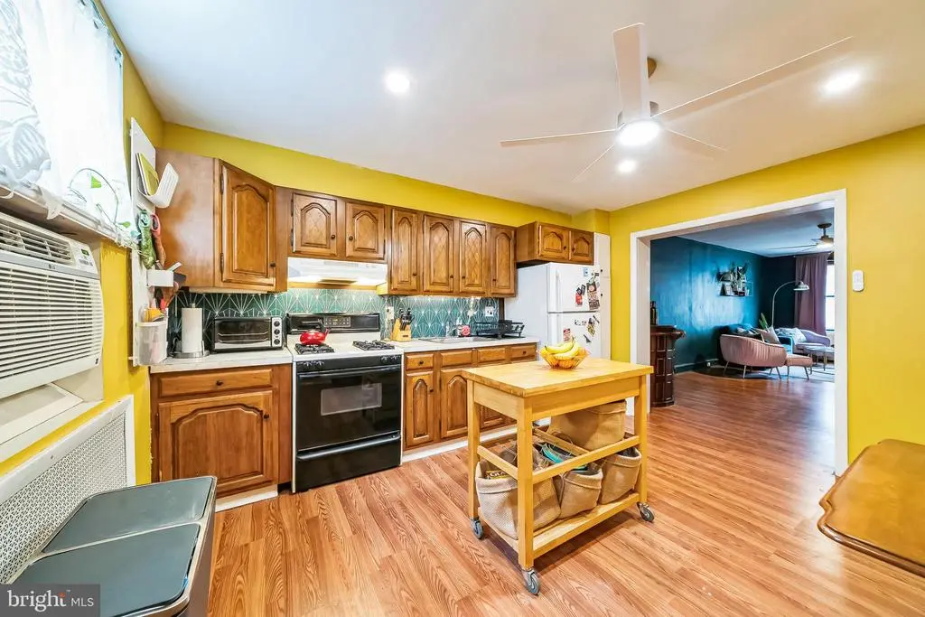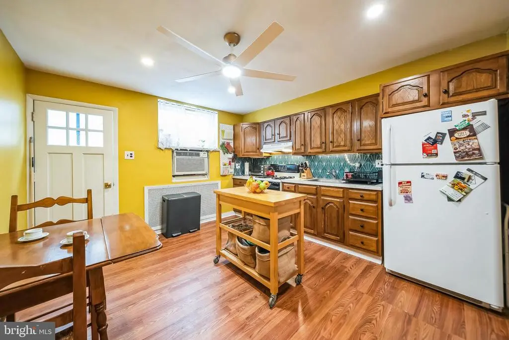 Charming Brick Row Home in the Heart of South Philadelphia! Nestled on a quiet street just blocks from the vibrant intersection of East Passyunk and Broad Street, this classic South Philly row home is full of charm and potential. Step through the inviting vestibule into a sun-drenched living room featuring beautiful wood flooring and a warm, welcoming atmosphere. The spacious eat-in kitchen boasts original wood cabinetry, a one-of-a-kind backsplash, and recessed lighting—ready for your personal touch and a little TLC. Just beyond the kitchen, enjoy a fully enclosed back patio, perfect for grilling, relaxing, or entertaining. Upstairs, you'll find three bedrooms, including a bright and airy primary suite, and a second & third room ideal for a nursery, home office, or guest space. The full hall bath offers a splash of vintage charm with classic pink tile and a tub/shower combo. A full unfinished basement adds even more value, with plenty of room for storage, laundry, and a semi-finished bathroom—offering endless possibilities for future expansion or a custom workshop. Located moments from some of the city's best dining, shopping, and nightlife along East Passyunk Avenue, this home offers the perfect blend of character, location, and opportunity. Don't miss your chance to make it your own!