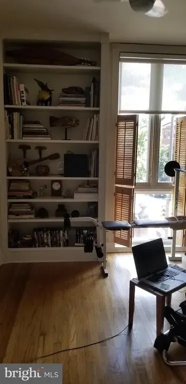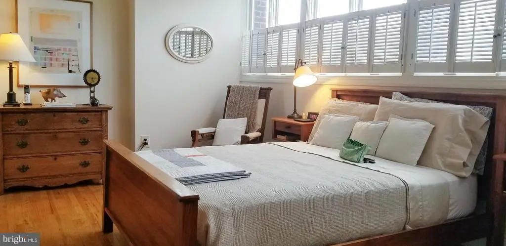 430 S 5th Street is a bright and spacious corner home with large windows that bring in natural light from three directions. Upon entering, there is a large coat closet in the entrance hall. The living room has a gas fireplace, book shelf and large windows overlooking the lush and spacious brick patio. This is a great setting for a family cookout or evening cocktails. Completing the first floor is a large dining area with floor to ceiling windows, a spacious open kitchen featuring granite counter tops, gas range, dishwasher and refrigerator. The second floor has a master bedroom with bath, two linen closets and hall bath with shower. There is a bedroom/office with a Murphy bed, and another small bedroom. The entire third floor is used as a master suite with great closet storage, a dressing room with a sink, bath with a skylight, and a large south facing deck, perfect for morning coffee. The lower level has a den with a half bath, and a beverage area, separate laundry room with storage and a large work shop with a sink. This home has wood floors throughout, wood baseboards and paneled doors. There is fantastic closet storage throughout this home. The property has gas heat and gas hot water along with central air conditioning. The top floor master suite has its own air conditioning.