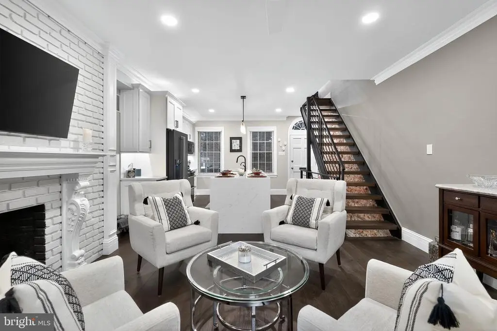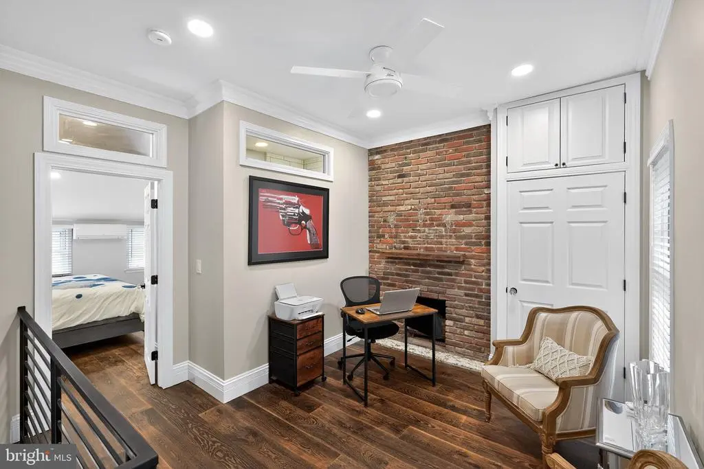 Experience the height of city living in this gorgeous Federal-style townhome in the heart of Washington Square West! Featuring 2 bedrooms plus a loft space, 3 spa-inspired bathrooms, and a fully finished basement. This home blends timeless charm with modern luxury. The open-concept main floor showcases solid oak hardwood floors, high ceilings, crown molding and recessed lighting throughout. The chef's kitchen has a Cambria quartz waterfall island, countertops and seamless backsplash with solid wood cabinets and upgraded GE Cafe matte black appliances. Exposed brick walls, a gas fireplace with marble thresholds, and oversized glass doors extend the living space to a private walled garden and patio-perfect for entertaining or unwinding. Upstairs, two generous bedrooms feature custom closet systems, There is Juliet balcony access from the second floor primary bedroom with a primary bathroom that is fully tiled with Carrara marble and absolute black granite floor. The top floor is dedicated to a recently renovated guest suite with heated tile floors, glass-enclosed shower, built-in storage, and an adjoining den/home office designed for today's lifestyle. The fully finished basement provides an additional media/family room, multiple storage closets, and updated mechanicals, creating both functionality and flexibility. Nestled in the coveted McCall Elementary School catchment, this home offers a Walk Score of 99, placing Center City's finest restaurants, cafés, shopping, nightlife, and cultural destinations just steps away. Offering the perfect balance of elegance, convenience, and vibrancy, this residence represents urban living at its absolute best. Schedule your appointment today to experience this exceptional property.