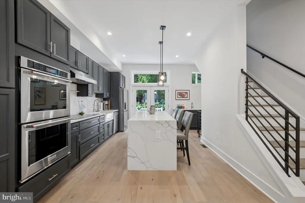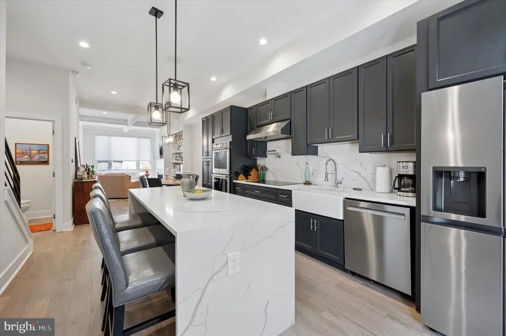 This stunning 4-bedroom, 4.5-bath multi-level townhome offers the best of city living with the rare convenience of off-street parking. Every detail has been thoughtfully designed — from the sun-drenched front rooms with nearly floor-to-ceiling windows to the custom built-ins and gas fireplace that anchor the open-concept living space. The chef’s kitchen is a showstopper, featuring gray shaker cabinetry, a 6-burner gas range with pot filler, double ovens, convection/microwave, stainless steel appliances, and a generous island for prep and seating. A separate wet bar with sink and drink fridge flows seamlessly to the back deck and custom patio, creating an ideal setting for entertaining. Upstairs, the bedrooms are spacious and versatile, with multiple en-suite baths. The primary suite feels like a private retreat, boasting a spa-inspired marble bathroom with soaking tub, dual vanities, and glass shower, plus a private deck and walk-in closet. A finished lower level adds flexible living space and a full bath, perfect for a guest suite or home office. Three outdoor spaces, including a roof deck with sweeping views, give you endless options to relax or host. With 6 years left on the tax abatement, this home blends modern style, convenience, and unbeatable location. Steps from Main Street’s dining and shops, Germany Hill Park, the Schuylkill River Trail, and regional rail, plus easy access to I-76 and Center City — this is Manayunk living at its finest.