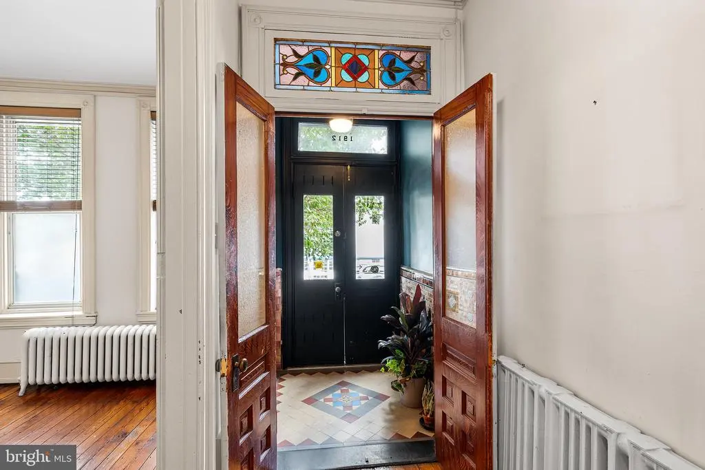 Nestled one block west of Broad Street this stately brownstone has been preserved with remarkable care, keeping its rich history and original character interwoven with slick modern updates. Highlighting original vestibule tiles, original Victorian stained glass transom, 3 sets of glass-paned french doors, rich rustic wood flooring and beautiful original doors throughout. Designed with an architects refined eye the existing color scheme is muted and natural in this well maintained home. You enter the home via broad brownstone steps and classically styled wooden french doors. Into a charming vestibule with antique crazed tiling and beautiful stained glass transom. Light streams through the second pair of frosted glass french doors into the home's foyer illuminating the hall and living spaces. Original flooring throughout gives a warm and rustic feel to this level. You are greeted by an engraved original solid wood stairwell and the living room via the home's traditional layout. The living room boasts a black carved wood and marble fireplace stealing the show in this sizeable space. Moving through the hall the adjoined dining and kitchen spaces are edged with newer Pella windows. The home has a fully modern kitchen and integrated dining area with tasteful lighting. There is a subtle industrial feel to the space via soft toned steel and glass faced cabinetry, under counter lighting and functional outlet placement for appliances. The dining area can seat 6 and the space also boasts a butcher block seating counter. With a well designed intuitive layout, the kitchen has plenty of counter space and two sinks. Complete with stainless appliances including fridge, microwave and dishwasher. The back of the kitchen is delineated with architectural detail providing a nook for the refrigerator, 2nd sink and huge windows. Use this space as an indoor herb garden or fill with house plants to take full advantage of the sun steaming in. The kitchen's side door takes you to a cozy back patio perfect for a cafe table and chairs. Stow trash along the side patio which includes a hose bib. Moving up the front stairwell you find two nice size bedrooms and modern hall bath. The front bedroom features an original built-in Eastlake-inspired wooden wardrobe encompassing one wall with space for a queen size bed. You enter the back bedroom through the home's third set of original frosted glass french doors. This room has another exquisite carved black fireplace, custom window shades and nook with plaster detail hosting a large bay window. All giving the room an understated refinement and cozy restful vibe with space for a queen size bed. The hall bath has natural green slate floor tiles, a custom feel to the MCM wood vanity and ceramic tile with thin natural stone slab walls and shower surround. The third floor of the home is open and unfinished with new wiring and a fully designed and plumbed full bath offering a wiped clean slate ripe for the creative buyer's vision. Superb location-Steps from local favorites like South Philly Tap Room, Ultimo Coffee, Second District Brewing, & Okie Dokie Donuts.1 block from Passyunk Ave main corridor, 2 blocks from Le Virtue, 3 blocks from Barcelona Wine Bar, 2 blocks from the Philly Food Coop. 3 block walk to either Tasker/Morris or Snyder Ave BSL stops. Make this nuanced Victorian townhome full of character yours today!