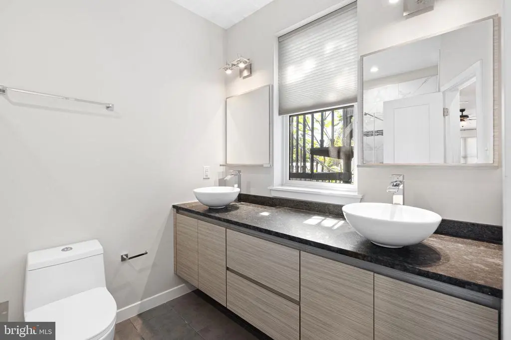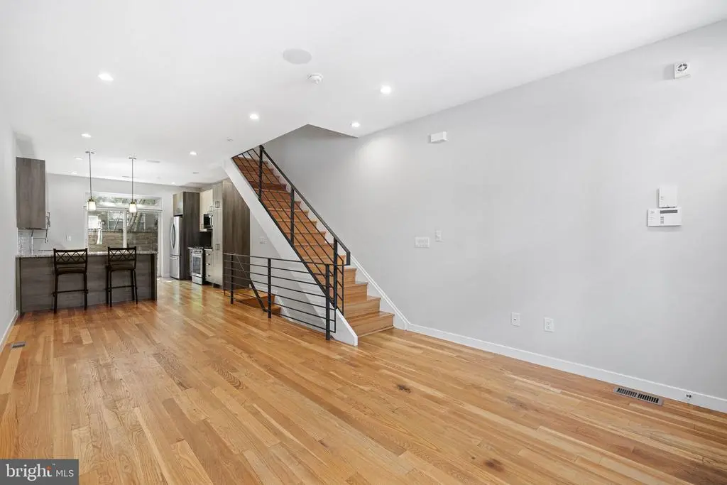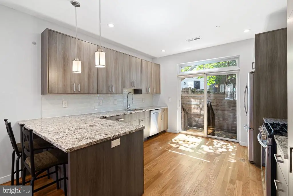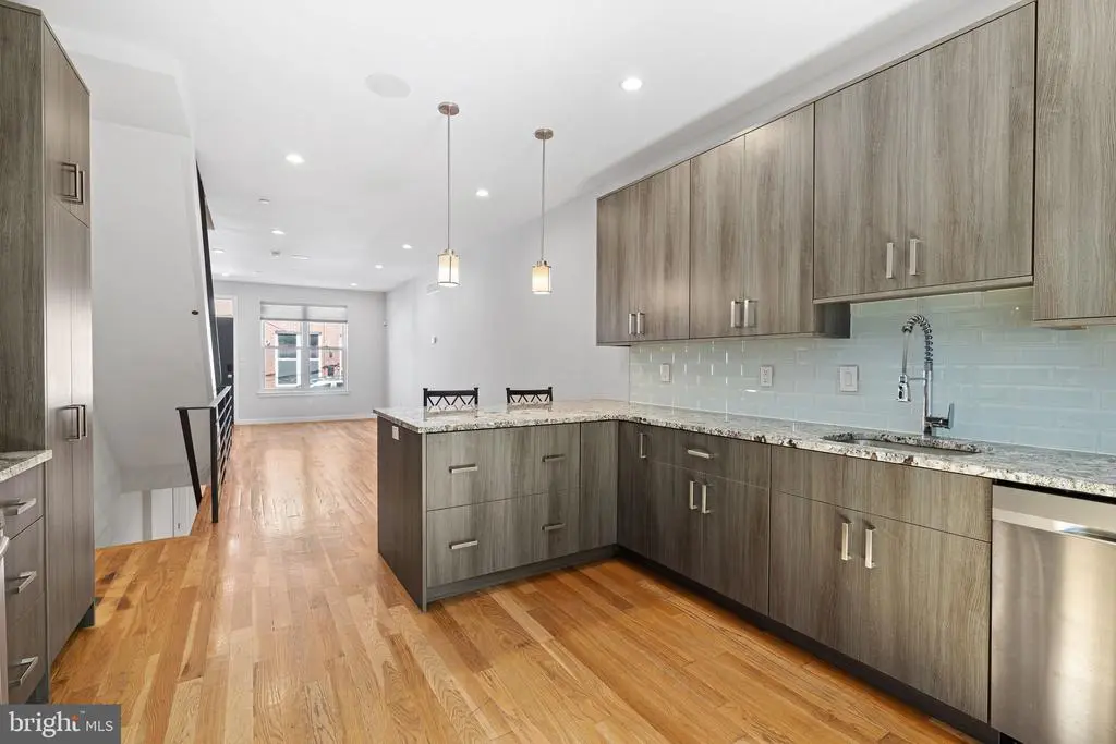 This modern beauty offers 3 bedrooms, 3 full bathrooms and 2 outdoor spaces. This home was built in 2018 so offers the luxuries of new construction plus also has a few years left on the tax abatement. As you approach the home, notice the mansard roof detail on the 3rd floor, an elegant element of design. As you enter the home, take note of the extra tall ceilings which make the home feel even larger than it is. Hardwood floors can be found thorough the home, including the main floor. The living room flows right into the dining room and then onto the kitchen. The kitchen, wow! Two tone cabinetry paired with a granite countertop that compliments the cabinets makes for a really beautiful space. There is plenty of kitchen countertops here, including the peninsula which can seat 2. A double wide sliding glass door with a transom window leads you to the nicely sized back patio. On the second floor of the home you will find 2 bedrooms, a shared hall bathroom and the laundry room. Both bedrooms are a great size and have ample sized closets with lights. The hall bath has a tiled shower and floating vanity and mirrored medicine cabinet for plenty of storage. On the third floor is the primary suite. The bedroom has ample room for a king sized bed plus more furniture. A cute built in bench can be found at the front window. Pass the walk in closet(!) as you head towards the en-suite bathroom. The bathroom features a dual vanity with leathered granite countertops on top of a sleek floating vanity. The shower has dual shower heads with a glass surround and marble tile. The basement is fully finished and offers two separate spaces. One space at the front and another in the rear, which could be used as a bedroom. There is also a full bathroom in the basement. On the top of the house is your private roof deck, perfect for looking at the city skyline! A wet bar with beverage center is located on the top floor, great for morning beverages as you get ready or evening drinks on the roof deck. The owner has installed Hunter Douglass shades throughout the home and there is Ring doorbell hardwired for security. This home is just 1 block from Wharton Square park which offers a kids playground plus tennis courts and plenty of space to hang or walk around. Easy access to Center City and University City via biking, walking or taking the bus.