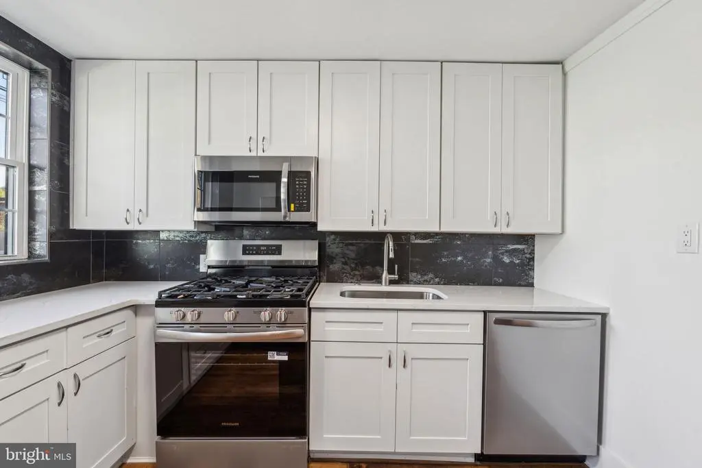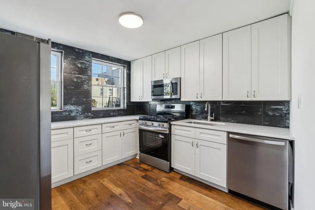 Welcome to this charming 2-bedroom, 1-bath twin home nestled in the vibrant Norris Square neighborhood, surrounded by new construction and the buzz of a growing community. Step onto the large, inviting front porch—perfect for relaxing—and into an open floor plan that seamlessly blends style and comfort. Engineered hardwood flooring flows throughout the main level, complemented by warm wood accents in the dining area that add a touch of character. The kitchen is a modern showpiece, featuring stainless steel appliances, sleek quartz countertops, and a full large-format tile backsplash for a polished finish. Upstairs, you'll find a fully tiled bathroom with a stand-up shower and two comfortable bedrooms filled with natural light. Enjoy added outdoor space with both rear and side yard access. This home is a must-see for anyone seeking comfort, style, and convenience in Philadelphia.