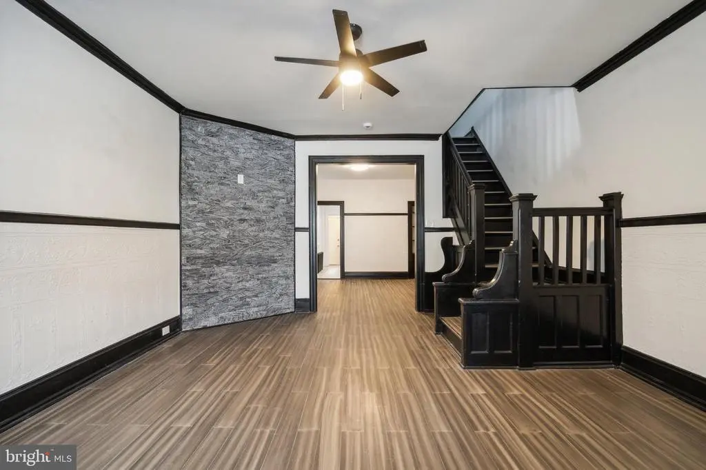 Ebony and Ivory. This spacious 3 bedroom Art Deco styled townhome is situated on a hill in the vibrant Overbrook community. Step inside and find the harmonious character and charm West Philadelphia homes are beloved for. Notice the contrast of the obsidian trim, and doors complimenting the wide planked ash flooring consistent through out the living spaces of the home. Chair rail and crown molding accents the rooms lending a quality feel to the space. Updated throughout, this residence is move in ready with updated energy efficient windows. The kitchen lovely kitchen is outfitted with stainless steel appliances, natural stone countertops, with coordinating backsplashes. The exterior spaces are fantastic with a large front porch to sit and watch the world go by, as well as a fantastic back yard area where barbeques and gardening can be imagined. Upstairs find three generous bedrooms each equipped with ceiling fans, and nice closet space. The bath is well appointed with large format stone tile, completely updated. The neighborhood of Overbrook offers great access to public transportation, as well as lots of restaurants and shops on nearby Lansdowne and Lancaster Avenues. Schedule a tour today!