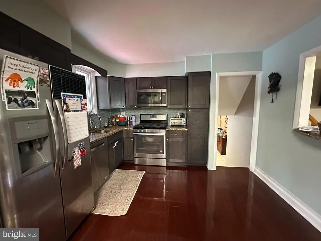 Welcome to 637 Charette Rd.! This lovely Split-Level Home is located on a quiet street in the desirable Pine Valley neighborhood, just one block to Greenberg Elementary School. Enter the foyer entry to the main floor which offers an open floor plan. Enjoy relaxing in the sun filled living room w/gleaming wood floors t/o, beautiful modern eat-in kitchen w/stainless steel appliances and dining area with sliding door which leads to the rear porch overlooking the spacious rear yard backing up the Pennypack park. Upstairs features three nice size bedrooms w/ample closet spaces and a modern tile hall bath. The lower floor features a bonus room which can be made into another bedroom or an office space, adjacent power room for guest convenience and a cozy family room with access to the expanded rear yard with a detached garage. Finished basement features new hot water heater, laundry area, & additional storage space. This home ensures comfort and convenience for every member of the household. It is perfect for hosting family gatherings, holiday parties, or simply enjoying your own space in comfort and style. Schedule your appointment today!!