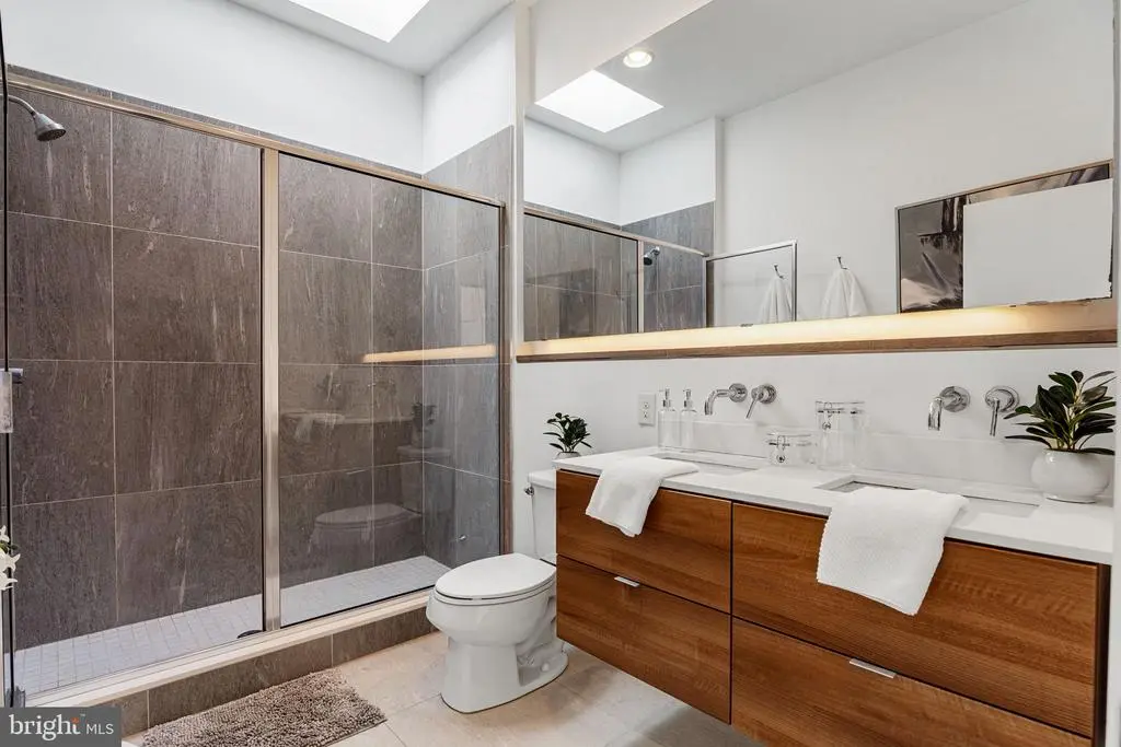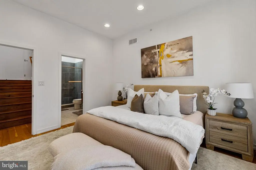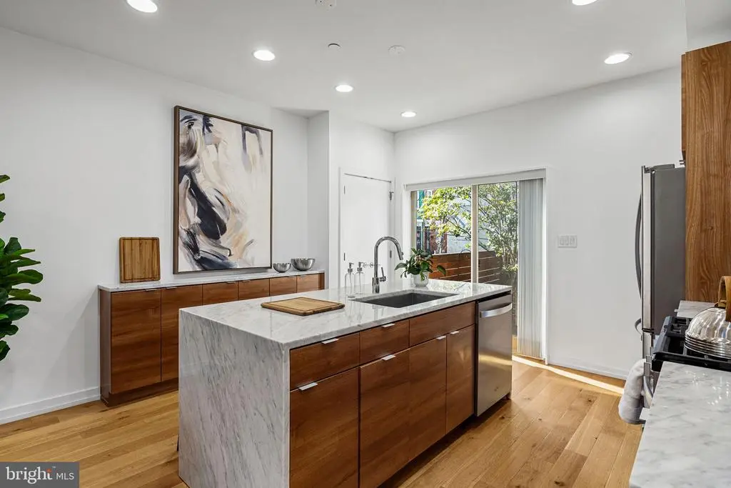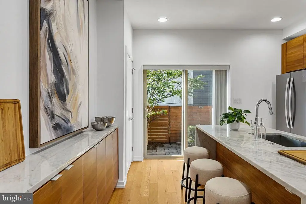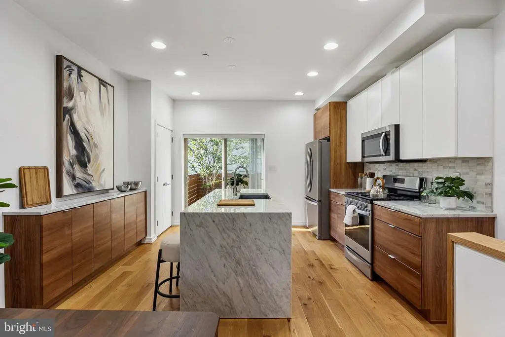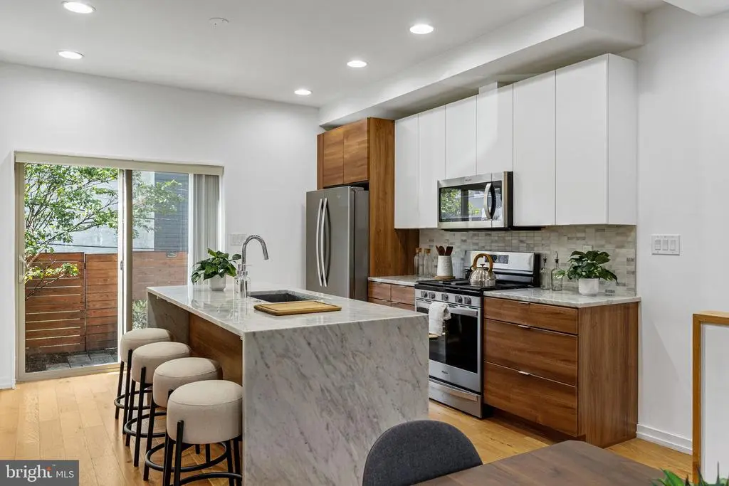 Introducing 2930 Master Street! This exceptionally well-built home features a Northern European inspired roof-line and facade, as well as clean and modern interior lines and finishes, which offer both style and warmth. The first floor highlights an open living/dining area that extends through to a Scandinavian inspired kitchen. The living area features a double height ceiling, expansive windows, and wide plank white oak flooring. The kitchen design includes Carrara marble counters and backsplash, warm wood base cabinets, modern white upper cabinets, and a sleek stainless steel appliance package. The kitchen sliding door opens to a landscaped patio with solid wood privacy fencing. The 2nd floor contains 2 generously sized bedrooms, a full bathroom with tub and shower. The spacious third floor owners suite features an ensuite tiled bathroom with a skylight over the shower, 2 built out closets, and lots of natural light. The basement level offers options for use as a media room or a 4th bedroom, as there is a 3rd full bath off the finished space. Topping off the house is a large fiberglass roof deck with expansive views. Approximately 3 years remaining on the tax abatement. Convenient to Rival Bros Coffee, Human Robot, Fairmount Park, I-76, and Center City Philadelphia. Visit an open house this weekend or schedule your private showing today!