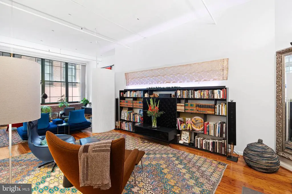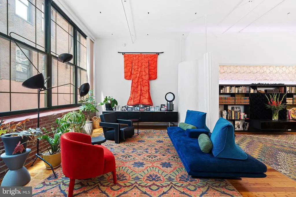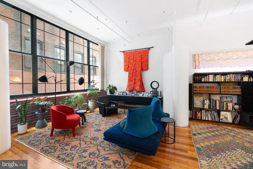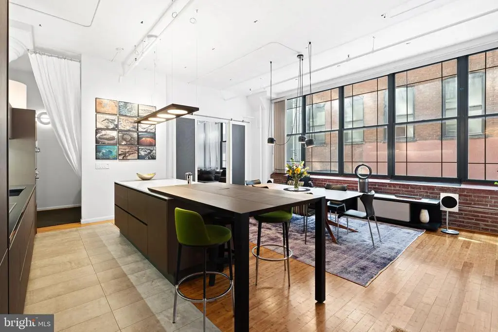 DRAMATIC PRICE IMPROVEMENT plus 100% financing with no PMI and a 5K grant (for those who qualify) make this stunning home more attainable than ever. This rare, expansive loft offers approximately 2,000 SF of open living space, blending industrial character with timeless warmth. Wood floors over solid concrete complement exposed brick walls and nearly 12-foot ceilings. Wall-to-wall windows fill the home with natural light and fresh air, creating an effortless sense of openness. Flexible partitions allow you to define spaces when needed or open the layout for a seamless flow. Spacious enough to adapt, minimal enough to stay calm. The custom Poliform Varenna kitchen features sleek Italian cabinetry, quartz countertops, and an island that doubles as a bar-height table. Built-ins keep the look clean and sophisticated. Open to the dining area, it’s perfect for lively dinners or quiet nights in. The primary suite offers generous space with a dressing area and custom wardrobes for effortless organization. The contemporary yet timeless bath features an oversized shower, soaking tub, and floating vanity. Artist-made touches and textured finishes add quiet character throughout. Step outside to galleries, premier dining, and easy access to SEPTA at the corner. Condo fees are refreshingly low for a home of this scale, a rare bonus in a building like this complemented by impressively low utilities year-round!