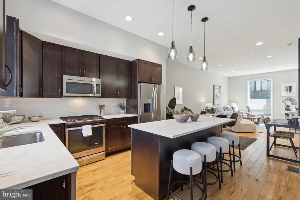 Here’s one you don’t come across every day—a four-bedroom, two-and-a-half-bath home with two-car gated parking right in the heart of Old/South Kensington. It’s the kind of place that gives you space to spread out, but still keeps you close to all the energy of the neighborhood. The first floor has a bright, open flow with hardwood floors, recessed lighting, a convenient powder room and a kitchen that’s built for gathering—complete with a brand-new backsplash, fresh quartz countertops, stainless steel appliances, and a generous island. Upstairs, you’ll find two sizable bedrooms, a sleek hall bath with double vanity, and laundry right where you need it. The primary suite upstairs feels like its own retreat, with a walk-in closet and spa-style bath. A fourth bedroom with floor-to-ceiling windows makes the perfect guest space or home office. Head all the way up to the roof deck and you’ll see why this home is special—expansive views in every direction, perfect for sunsets or summer hangs. Bonus: the newer fiberglass roof deck (installed last year) was just freshly sealed and painted last week. The large finished basement is another perk—great for a media room, gym, or extra storage. Freshly painted from top to bottom, this home feels move-in ready. Out your back door, the secure two-car parking off American Street makes city living that much easier, and the location places you steps from Frankford Avenue and Fishtown favorites including Liberty Kitchen, La Colombe, Wm. Mulherin’s Sons, Frankford Hall, Kalaya, and more. Super walkable to so many local favorite playgrounds and parks including Hancock, Hart, Cruz and Benson - all within a 10 minute stroll. With a sliver of tax abatement remaining, this is a rare opportunity to plant roots in a booming neighborhood with unbeatable convenience and style. (Total amount of tax abatement remaining to be independently verified by Buyer).