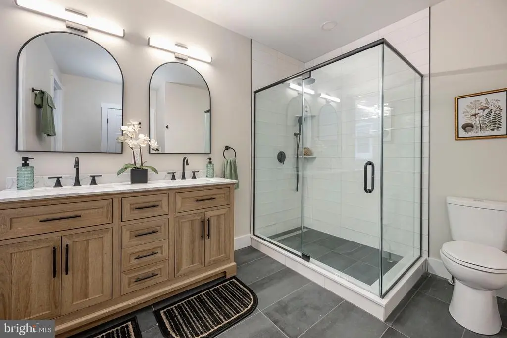 Step onto the inviting covered front porch, complete with durable Timbertech decking, an ideal spot for your morning coffee. As you enter, a vestibule leads you into the formal living room, where a classic brick fireplace creates a warm, welcoming focal point. This space flows seamlessly into a large eat-in kitchen, a true chef's delight. It boasts expansive 42-inch cabinets, a central island, and beautiful quartz countertops. You'll love the double oven and a 36-inch gas cooktop with a convenient pot filler. A large pantry, which also houses the laundry area, ensures everything is within reach. A nearby half bath and a door leading to the new raised deck make entertaining a breeze. The second floor offers a private retreat. The large primary bedroom includes a luxurious en-suite bathroom with a sleek glass-surround shower and a double vanity. The spacious second and third bedrooms share a well-appointed hall bath featuring a tub/shower combination and a large dual vanity. The surprises continue in the finished lower level, designed for ultimate flexibility. Here, you'll find a generous bedroom with a sitting area and a dedicated full bathroom, perfect for guests or an in-law suite. This level also provides ample storage and a separate mechanicals closet, keeping the living space clean and uncluttered. This home is a perfect combination of thoughtful design and functional living, ready for its new owners. Co-Listing agent has. interest in home.