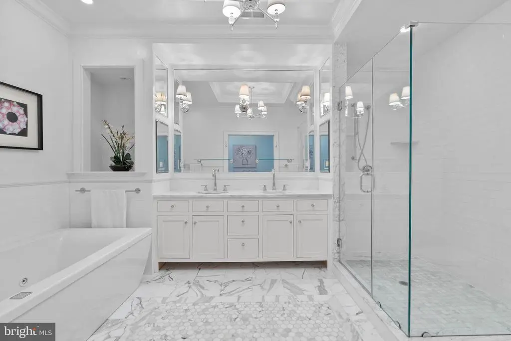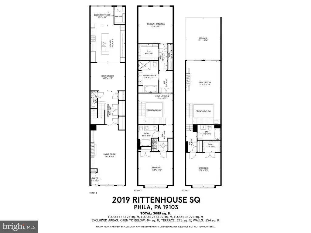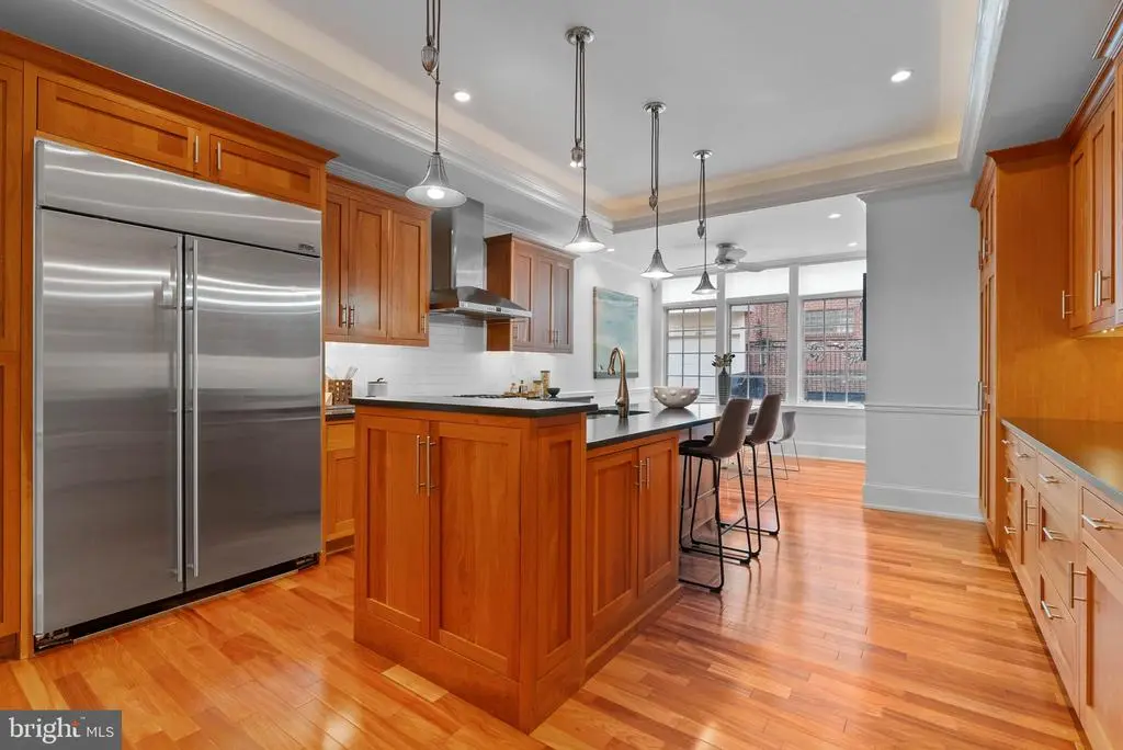 A coveted location, only steps from the park, exquisite architectural details, abundant space, and modern updates make 2019 Rittenhouse Sq an enticing choice for the discerning buyer. Spanning an 80ft deep, street-to-street lot, this 3,000 sqft (per matterport) home offers 3 bedrooms and 3.5 bathrooms, each suite with its own private wing, and a serene terrace off the third level acting as an escape from the city's hustle. A quiet, tree-lined block leads to the residence's impressive brick and concrete facade. Stepping inside, you're welcomed by a foyer with a coat closet. Gleaming hardwood floors extend to a large, airy living room where tall windows pour in natural light and crown molding traces the soaring ceilings. Adding to the timeless character is wainscoting on the walls and a fireplace mantel flanked by built-ins. At the center of the home is a commanding spiral staircase topped by a skylight, allowing more natural light. Past a powder room, the formal dining room has plenty of space for entertaining and more detailed millwork. Many memories and comforting meals are sure to be made in the magazine-worthy chef's kitchen, boasting custom wood cabinetry, high-end stainless steel appliances, natural stone countertops, a subway tile backsplash, backlit tray ceilings, and an island with seating and pendant lights overhead. There's also a sunlit breakfast nook and a pantry by the back door. Up on the home's second level, the hotel-like primary suite is off the stairs. It's composed of a large, bright bedroom, a walk-in closet, and a luxurious ensuite bathroom adorned with rich marble tile, a double vanity, a glass-enclosed shower, and a multi-jet soaking tub. Sitting opposite the primary suite is another full bathroom, a spacious bedroom, and the laundry closet. The third level has the final bedroom suite with a similar layout. There's also a bonus den with a wet bar and access to the terrace, perfect for hosting friends and family. Inside, you can gather around the fireplace mantel for a cozy night in, while outside, you can enjoy summer barbecues and al fresco dining. Completing the home is an expansive basement with tons of extra storage. In addition to everything inside, 2019 Rittenhouse Square's unbeatable location earns a near-perfect Walk Score of 98! The city's best dining, shopping, and entertainment are all at your doorstep. Sprawling Rittenhouse Square Park is only a block away, and the extensive Schuylkill River Trail is close. Plus, there's easy access to the University of Penn, Jefferson Hospital & Pennsylvania Hospital, and I-76. Schedule your tour today!