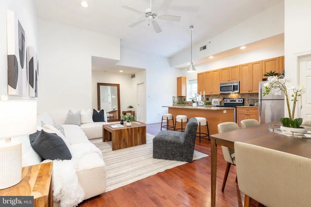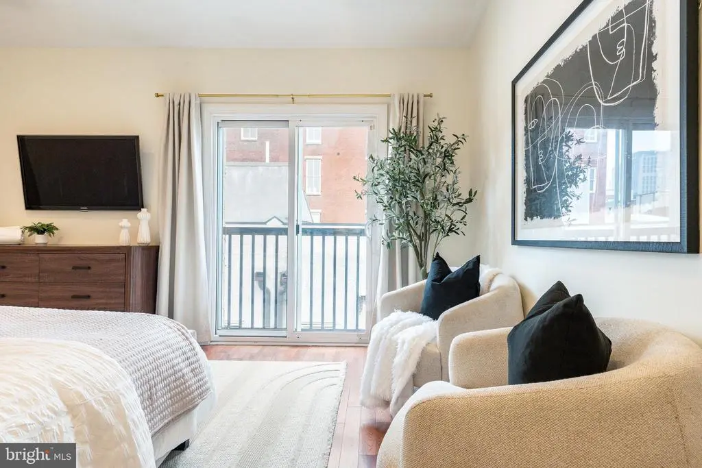 Welcome to your new home in the heart of historic Old City! This top-floor, 2-bed, 2-bath condo is one of the largest units in the building - offering modern convenience and timeless charm within a boutique setting. From the moment you arrive, you’ll appreciate the secure lobby with camera monitoring, providing peace of mind from the very start. Take the elevator up to the top floor to a quiet hallway that leads to your private retreat. Step inside and be captivated by the expansive open layout with soaring 18-foot ceilings and rich cherry hardwood floors flowing throughout. The designer kitchen is a chef’s delight, featuring 42” custom cabinetry, granite countertops, an upgraded granite backsplash, stainless steel appliances, a trash compactor, and a breakfast bar with bonus storage—perfect for both casual dining and entertaining. The spacious living area offers a dramatic sense of scale and an inviting backdrop for everything. Down the hallway, discover a generously sized bedroom and a stylish full bathroom with dual entry, ideal for guests. The serene primary bedroom is complete with a Juliet balcony for fresh air, plus its own en-suite bath. Perks include a full-size washer and dryer tucked into the utility room, as well as a dedicated 10x13 storage unit in the basement. With its unbeatable location—steps from top dining, shopping, and cultural destinations, with easy access to public transit and I-95—the condo also benefits from the exciting new I-95 capping project, which will create an expansive park over the highway. This project will bring new green space, walking paths, and a stronger connection between Old City and the Delaware River waterfront, further enhancing the neighborhood’s appeal and value. Don’t miss the chance to call this Old City gem your own. Schedule your private showing today! UNIT OWNS ROOF RIGHTS**** Owner is allowed to build a balcony on the roof, Or put in sky lights, and extend the Juliette balcony into a big balcony off of primary suite *