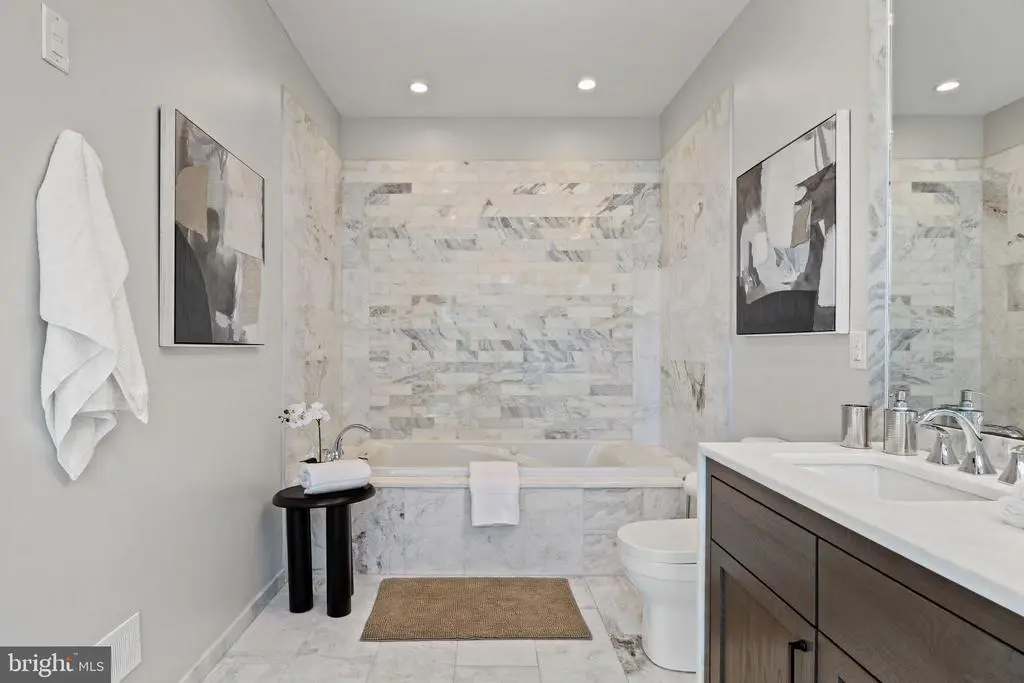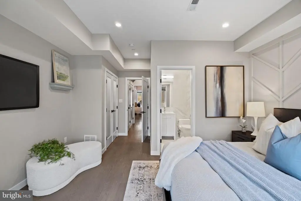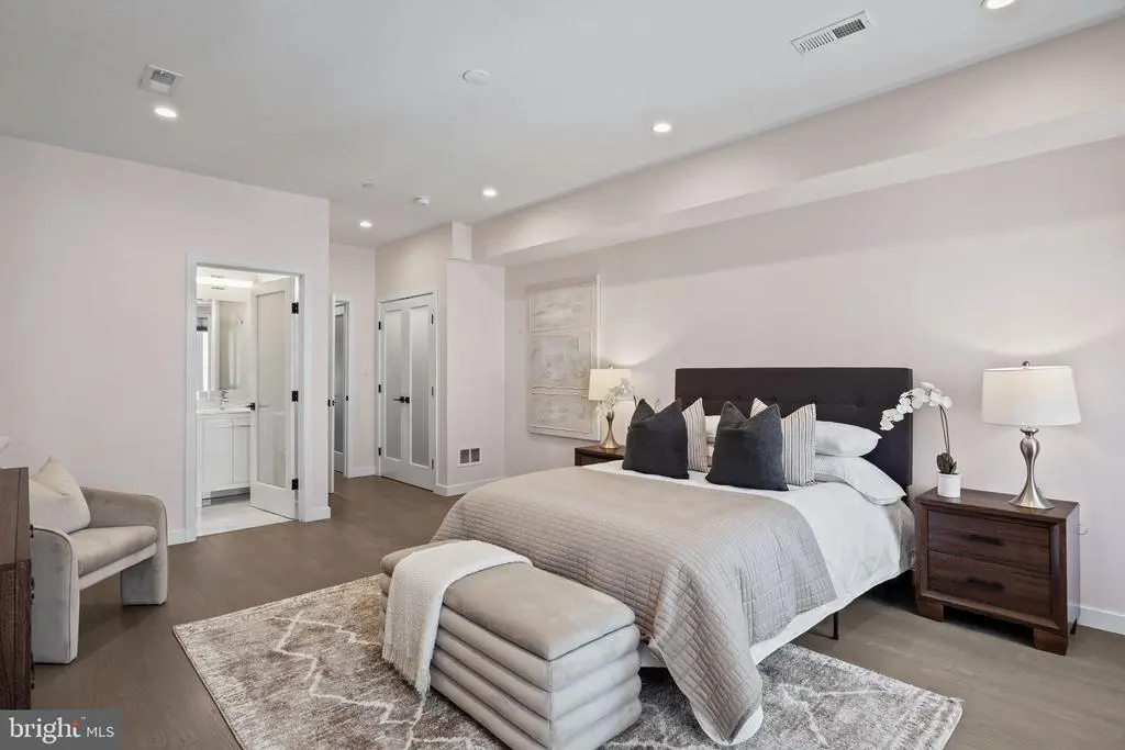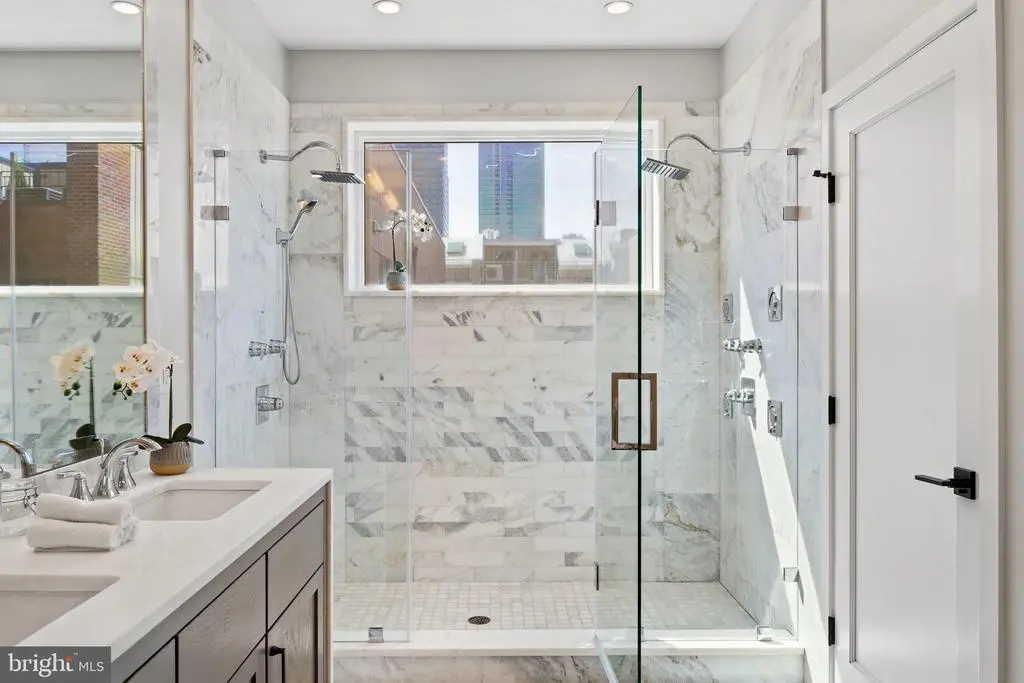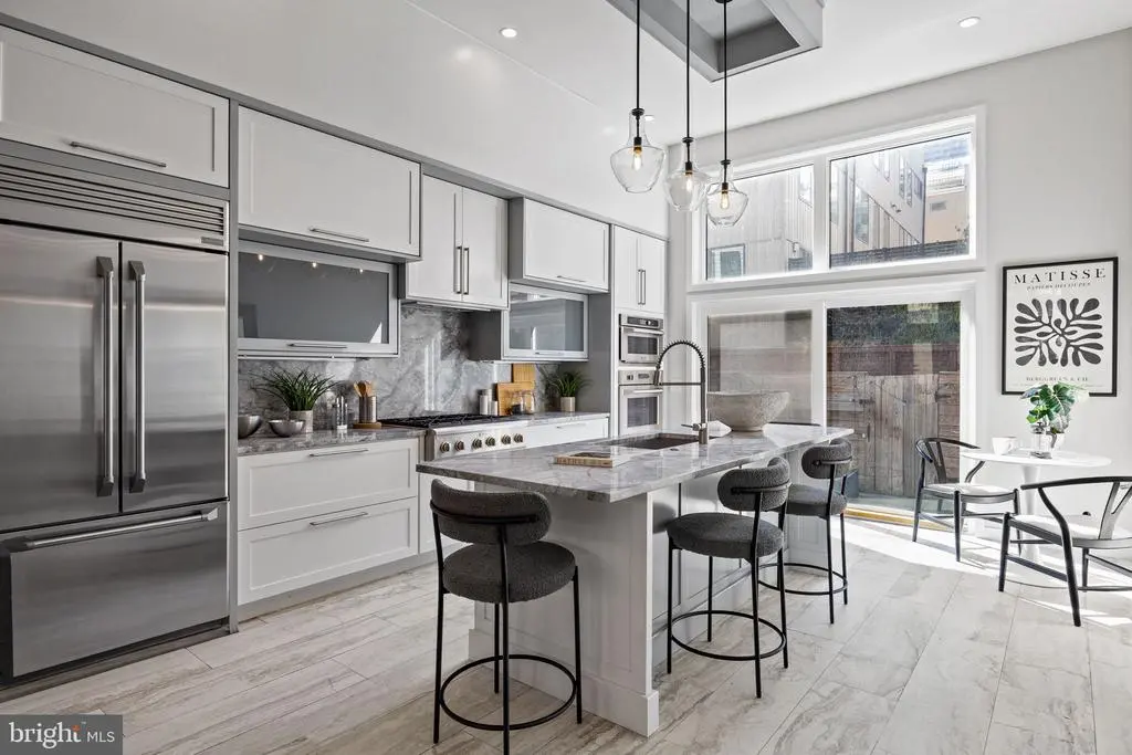 On a quiet, tree-lined street, this stunning 4-bedroom, 4-bath townhome blends historic character with modern luxury. New construction in 2019, the home features soaring ceilings and an exposed brick wall preserved from the original c.1880 structure. The open-concept first floor flows through to a chef’s kitchen boasting marble countertops, premium stainless appliances, and abundant natural light. A fenced backyard with stone patio offers the perfect spot for morning coffee or outdoor dining. On the second floor, two spacious bedrooms feature generous closets and en-suite bathrooms, while a laundry and utility closet are discreetly tucked away on the landing. The third-floor primary suite is a private retreat with dual closets, a Juliet balcony, and a spa-like bath with jacuzzi tub and dual-head rain shower. A rooftop deck with unobstructed Philadelphia skyline views makes an ideal space for entertaining or relaxing. The finished basement provides a flexible space for a media room, home office, or guest suite, complete with an en-suite bedroom. Permitted parking in the lot at the west end of the block will be transferred to the new owner. The current owners made premium upgrades throughout the home with features including custom millwork and cabinetry, Pennsylvania bluestone patio, luxury light fixtures, and Farrow and Ball low VOC paint. Perfectly situated in Logan Square, 2106 Spring St. offers the best Philadelphia has to offer with the city's museums, top restaurants, parks and river trail all within a short walk. At the same time, convenience is maximized with a Whole Foods, Trader Joes, and Giant Heirloom Market around the corner, easy access to major highways and 30th Street Station just a a 10-minute trek. Incredible for commuting to NYC or popping out to the Main Line. Located in the Albert Greenfield catchment, this home is also steps from top private schools, the Franklin Institute, Boathouse Row, and the upcoming Calder Museum. With a property tax abatement in place through 2029, this home offers a rare mix of luxury, location, and long-term value. Spring Street is a treasure in Philadelphia’s most sought-after neighborhood with a vibrant community of accomplished civic and business leaders, artists, doctors, and young families alike.