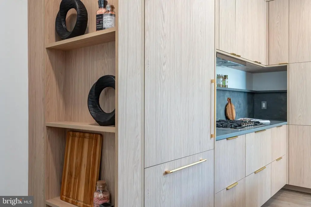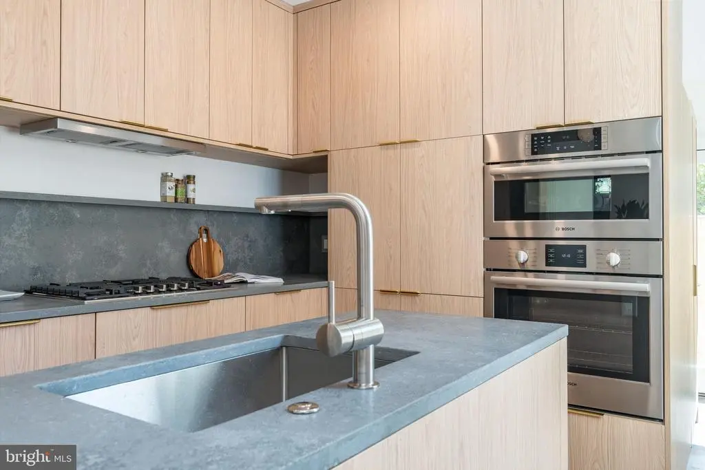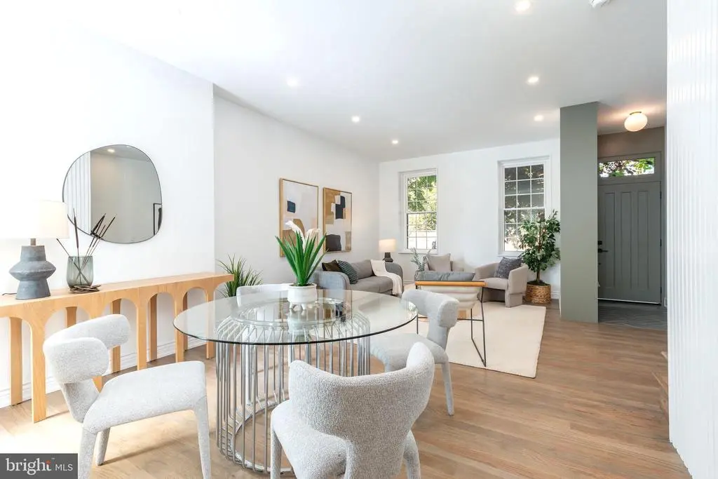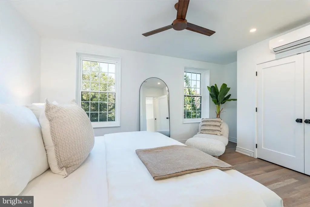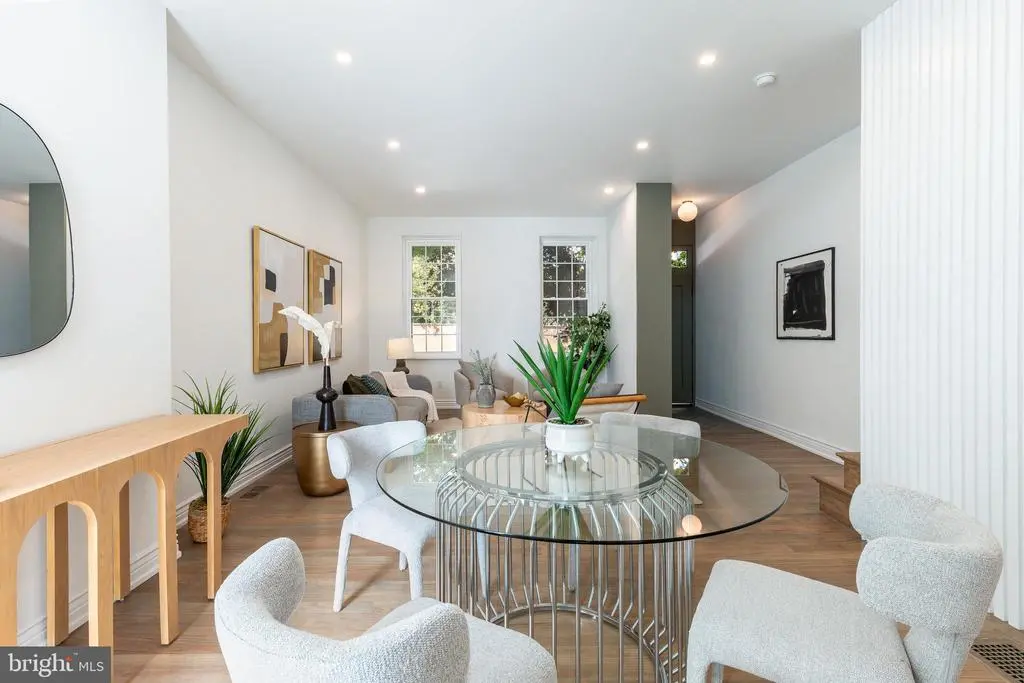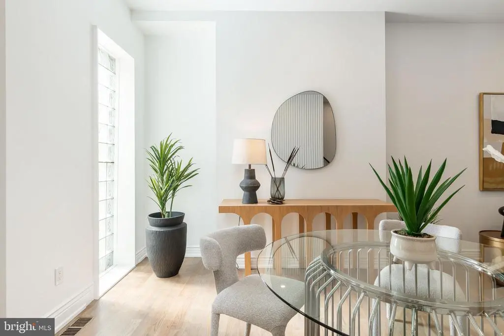 Where Fitler Square converges with Graduate Hospital—steps from 23rd & Bainbridge and about a one-minute stroll to Heirloom Market—2311 Grays Ferry is a three-bedroom, 2.5-bath, 1,900 SF, 18-foot-wide residence fully transformed by an impeccable full-gut renovation and QB3’s warm, modern design. Enter through a custom mahogany front door to a porcelain herringbone-tiled vestibule with tailored built-ins (uppers, bench & cubbies), then into sunlit living/dining spaces with 9′7″ ceilings, cashmere-gray, site-finished red-oak floors, an architectural slat wall, and a vertical glass-block light column. At the center is a custom chef’s kitchen—light-oak cabinetry with brass hardware, Caesarstone slab counters/backsplash, Bosch appliances including a convection wall oven and 5-burner gas cooktop, a panel-ready Blomberg refrigerator/freezer, and an oversized peninsula with a deep undermount sink beneath a sculptural brass/globe pendant—framing a clean sightline to the front windows. A tiled rear landing discreetly serves a chic powder room and opens to a fenced patio for coffee, herbs, and evening grilling. Upstairs, two sun-splashed bedrooms feature deep-set windows and hardwoods; the hall bath blends encaustic-style patterned tile, a white-subway tub/shower with niche, matte-black fixtures (including handheld), and a floating stone-topped vanity. A dedicated laundry room adds uppers, a butcher-block folding counter, deep utility sink, and LG gas washer/dryer. The top-floor primary suite feels boutique with two closets, a ceiling fan, mini-split zoned comfort, and a spa bath with twin vessel sinks, wall-mounted faucets, oval black-rim mirrors, vertical kit-kat tile wainscot, and a walk-in shower finished in vertical white tile over warm-taupe ribbed tile with a charcoal hex-mosaic floor. A finished lower level provides flexible bonus space plus utility/storage. With all-new systems (roof, windows, doors, floors, HVAC, hot water heater) and an approved 10-year tax abatement, this QB3-crafted 1908 row home pairs high design with turnkey convenience—moments from the Schuylkill River Trail and easy South Street Bridge access, walkable to UPenn and Center City, parks, top-rated restaurants, and shopping, with quick connections to CHOP, Drexel, and I-76.