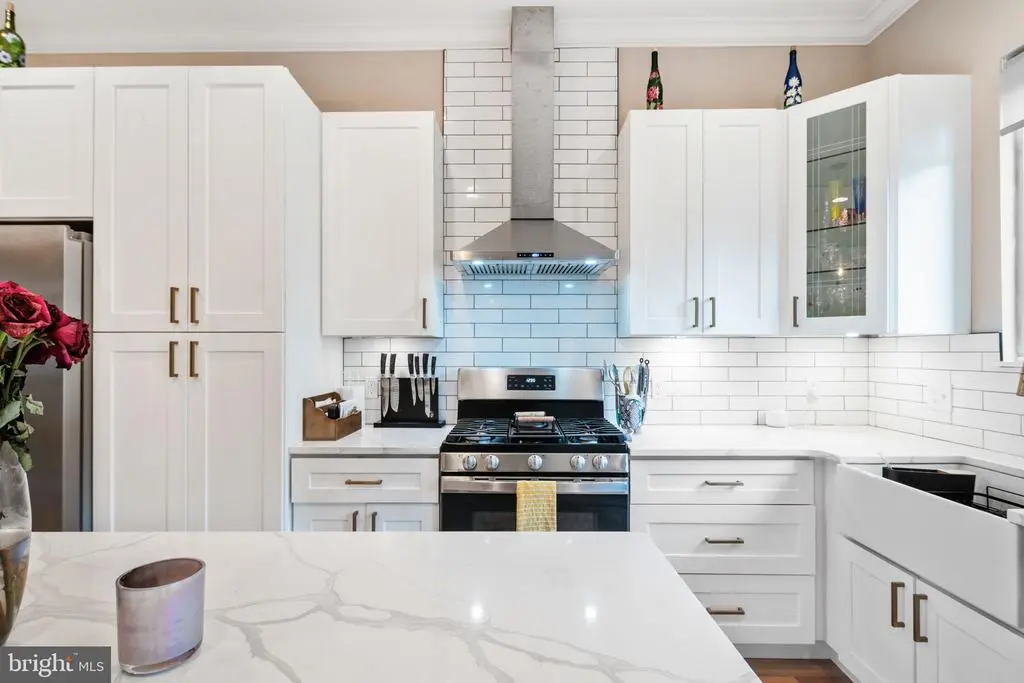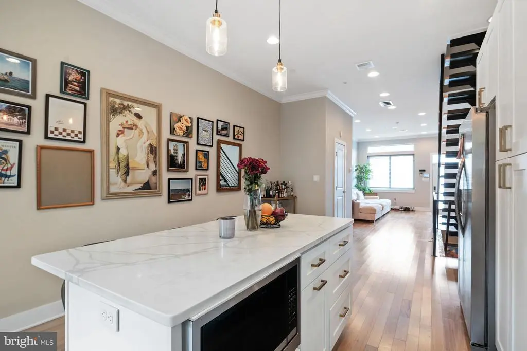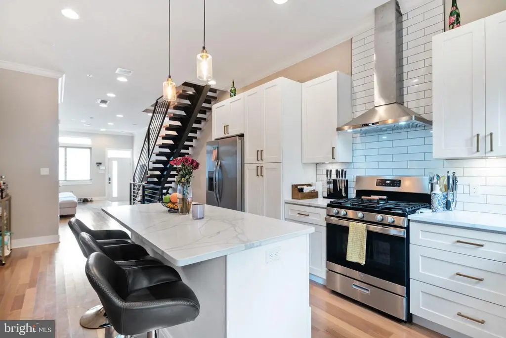 If you are looking for a new home that combines modern luxury with practical living, you have found JUST the place! Located in vibrant Olde Kensington, this stunning property features 3 bedrooms, 3 full baths, 2 half baths, a finished basement, and a roof deck. With 2,575 sq ft of interior space, this home is designed for entertaining, complete with a full wet bar on the roof deck. The curb appeal is undeniable with its beautiful brick facade. Inside, you'll be impressed by the spacious open-concept floor plan, hardwood floors, and enormous closets throughout to provide for ample storage. The custom kitchen is a chef's dream; stylish tile selections, farmhouse sink facing a window, and an island featuring a built-in microwave complete the space. The finished basement offers bright, open space perfect for a home office, guest room, or flex space, and it includes a full bath, making it easily convertible into a 4th bedroom. The second floor has 2 spacious bedrooms and a laundry room with a full-sized washer and dryer, while the third floor hosts the main bedroom suite with a private bath featuring a stand-alone soaking tub and a frameless walk-in shower and two large closets. Convenience is key with half baths on both the main living level and the third floor, perfect for rooftop gatherings! The private yard is ideal for year-round grill-to-table enjoyment. Additional features include natural gas heat, central air, extra storage in the basement, and an abundance of natural light throughout. This home is truly epic and designed to impress. Don't miss your chance to make it yours! *Several years remaining on tax abatement, it is buyer and buyer agent's responsibility to verify taxes.*