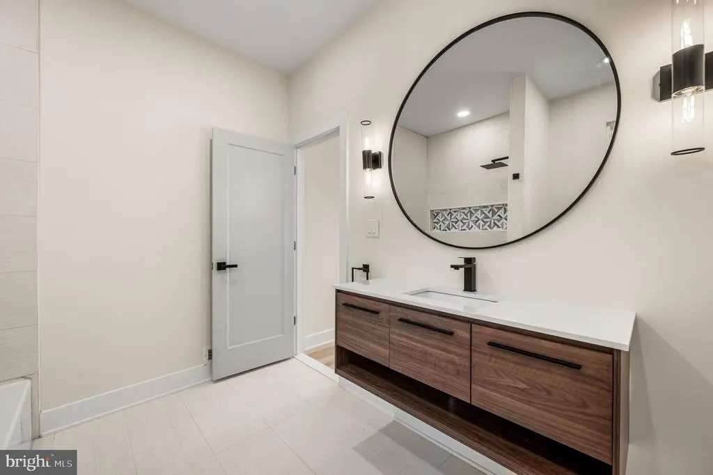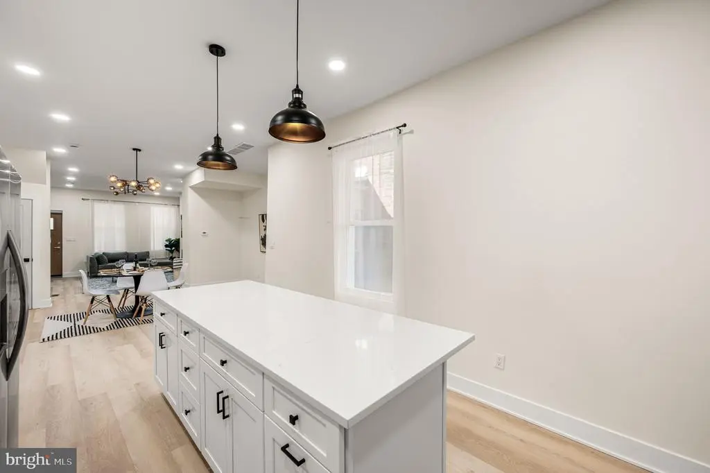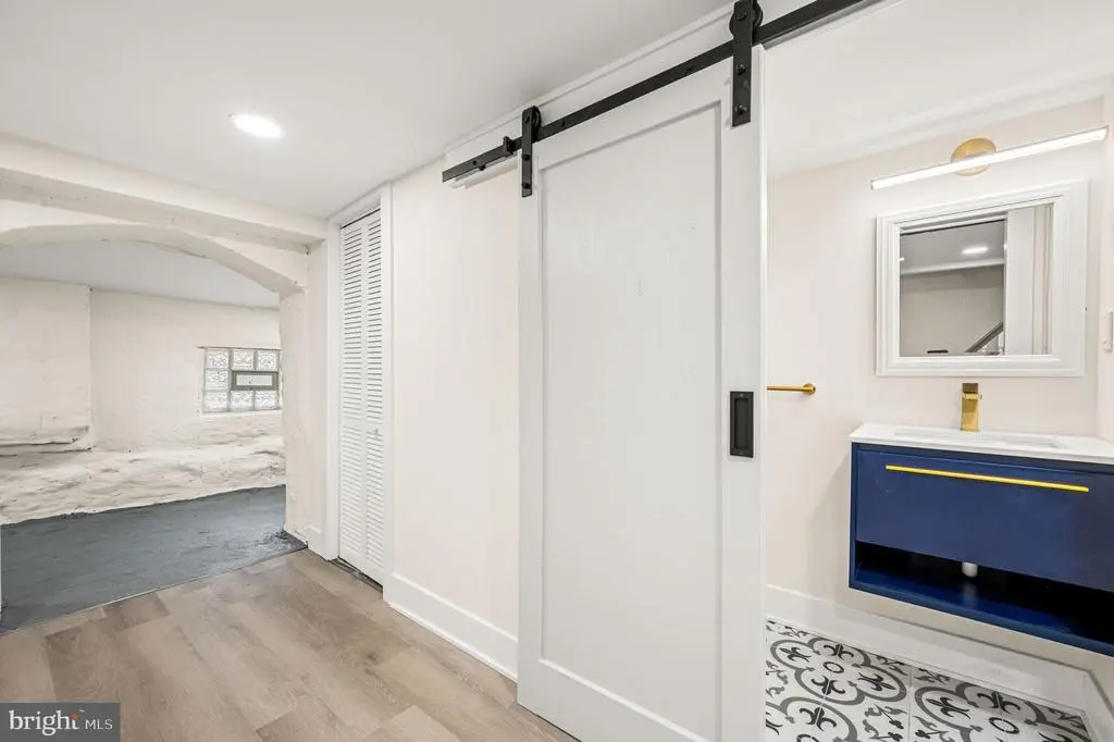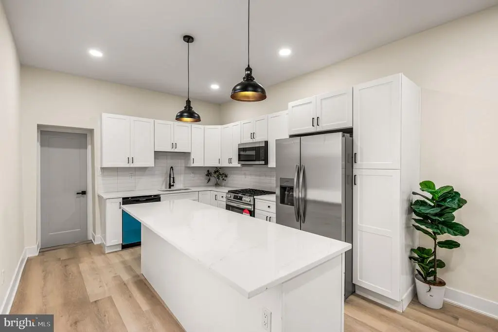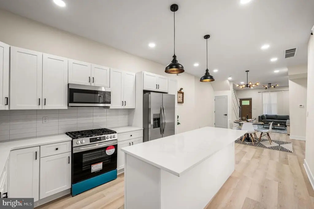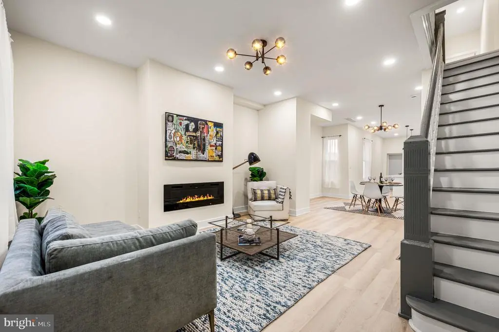 Welcome to 49 W Sharpnack Street, a beautifully renovated 3-bedroom, 2.5-bath home nestled in the heart of West Mt. Airy. From the moment you arrive, the inviting covered front porch and rich wood entry door set the tone for a warm and elevated living experience. Step inside to discover a bright, open-concept layout with an elegant flow from the cozy living room—complete with an electric fireplace feature—through to a spacious dining area and into the thoughtfully designed kitchen. Perfect for entertaining and everyday living, the kitchen features a large quartz island with bar seating, extensive shaker cabinetry, stainless steel appliances (including a gas range, dishwasher, microwave, and refrigerator), and striking modern finishes throughout. At the rear of the main floor, you'll find a versatile mudroom with laundry hookups and direct access to a private, grassy backyard—ideal for hosting, gardening, or relaxing outdoors. Upstairs, all three bedrooms are generously sized with ample closet space. The primary suite includes a tastefully tiled en-suite bathroom with a soaking tub/shower combo. A stylish hall bathroom—featuring sliding barn door access—completes the second floor. The finished basement offers flexible bonus space perfect for a home office, media room, or gym, along with a powder room and extra storage. Enjoy peace of mind with all major systems newly updated, and take advantage of this vibrant neighborhood's access to local cafes, parks, regional rail lines, and major routes into Center City and the suburbs. Located in the sought-after C.W. Henry Catchment, this turnkey home is ready for its next chapter.