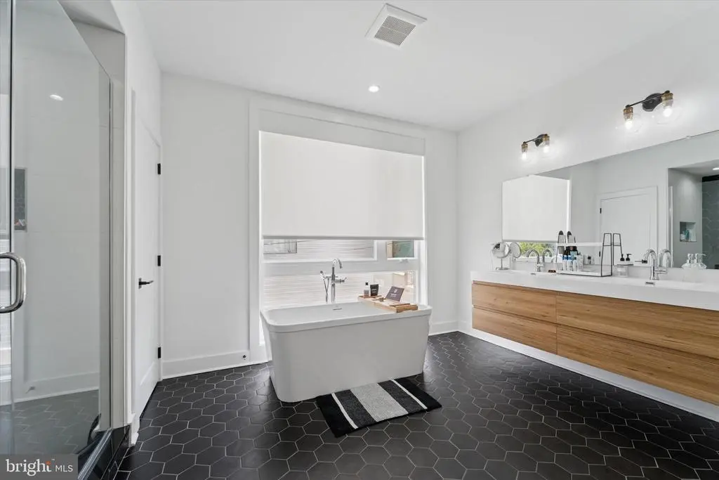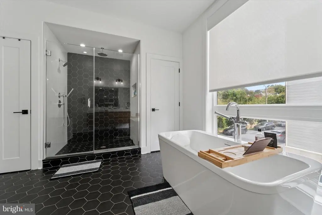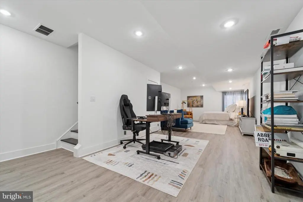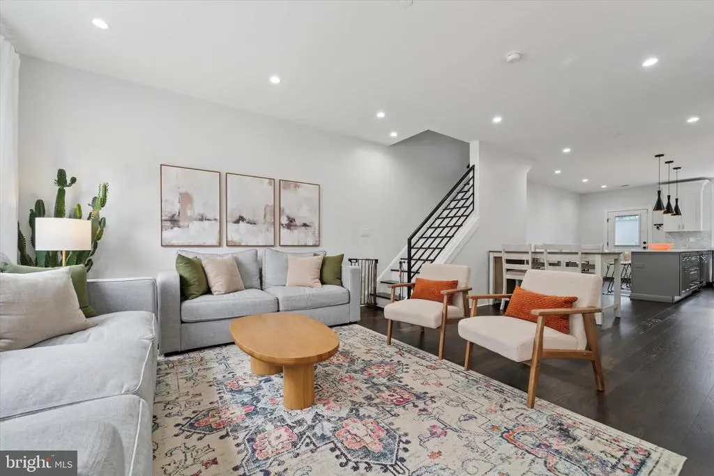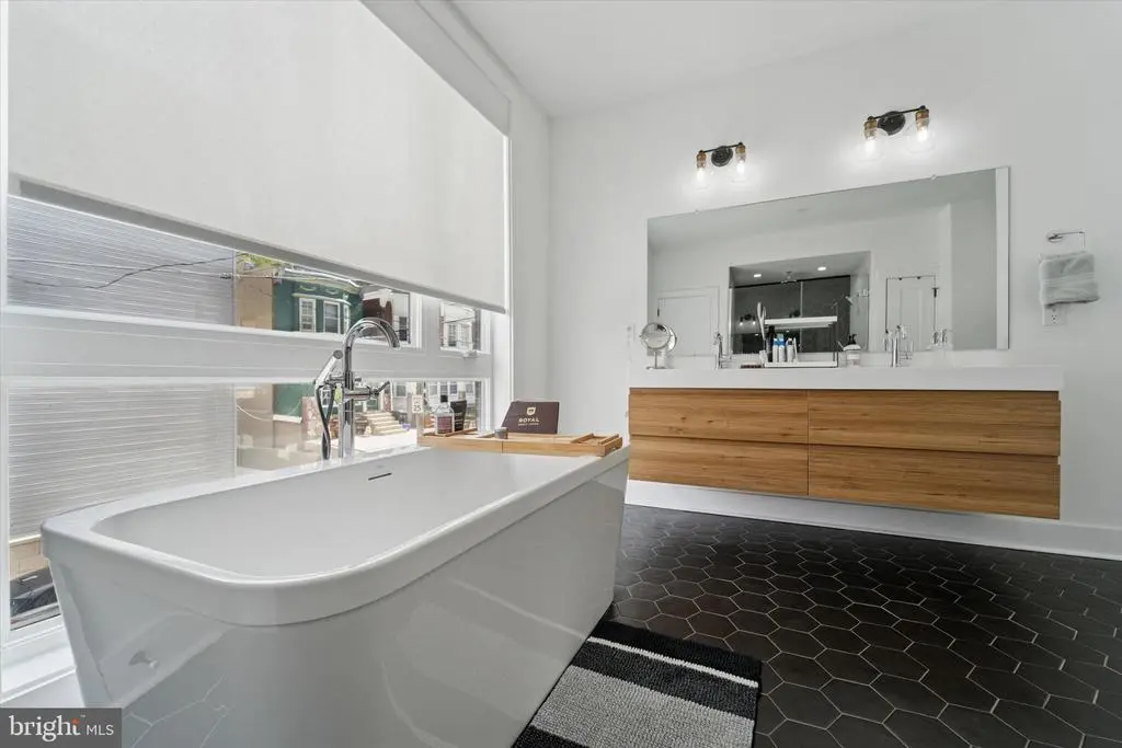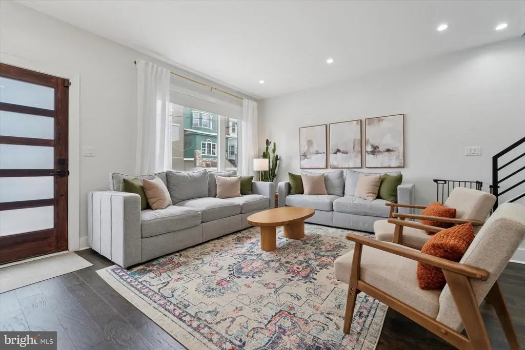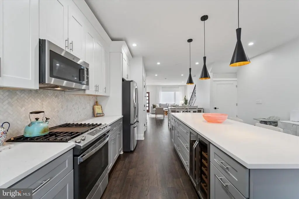 Modern Charm Meets Tranquil Living in a Prime Location! Nestled just steps from the vibrant heart of Germantown Avenue, this spacious, meticulously designed home, with 5+ years of a full tax abatement remaining and 2 car parking, offers the perfect blend of modern amenities and serene comfort. With soundproofed walls throughout, this residence provides a peaceful retreat while still being close to all the excitement of the neighborhood. Step through the front door and be greeted by a bright, open-concept living space, ideal for both relaxed living and entertaining. Large front windows flood the living room and dining area with natural light, and custom remote-control blackout and light-filtering shades allow for privacy and comfort at the touch of a button. The adjacent dining area and powder room flow seamlessly into the kitchen, creating a perfect space for hosting guests or enjoying casual meals. The chef-inspired kitchen is a true standout, featuring a stunning 9-foot quartz island with a built-in wine fridge, generous counter space, and sleek stainless steel appliances. Whether you're preparing a gourmet dinner or gathering around the island for drinks, this kitchen is as functional as it is beautiful. Additional features like a wet bar and custom pantry shelving elevate this space even further. Ascend to the second floor to find the tranquil primary bedroom is a true retreat, featuring calming custom paint and stylish custom shades for the ultimate in comfort and relaxation. The en-suite bathroom is a luxurious haven with a double vanity, modern step-in shower, and a newly added soaker tub—perfect for unwinding. Heated floors in the bathroom ensure a cozy start to your day, even on the coldest mornings. The adjacent laundry room, with its custom storage, adds convenience to daily living. The third floor offers two spacious bedrooms and another full bathroom, providing plenty of room for family, guests, or a home office. And for the ultimate in outdoor living, head up to the expansive roof deck. Whether you’re enjoying a sunset with a glass of wine or hosting a summer gathering, this private space offers endless possibilities. Don't forget that you will find your 4th bedroom in the fully finished lower level which provides even more versatility, with a full bathroom and ample space that could be transformed into a game room, home theater, guest suite, or home gym—whatever suits your lifestyle.. Conveniently located near the Upsal train station, Wissahickon Park, and all the shops and restaurants of Germantown Avenue, this home offers the best of Northwest Philadelphia living. Don't miss the opportunity to make this urban oasis your own!