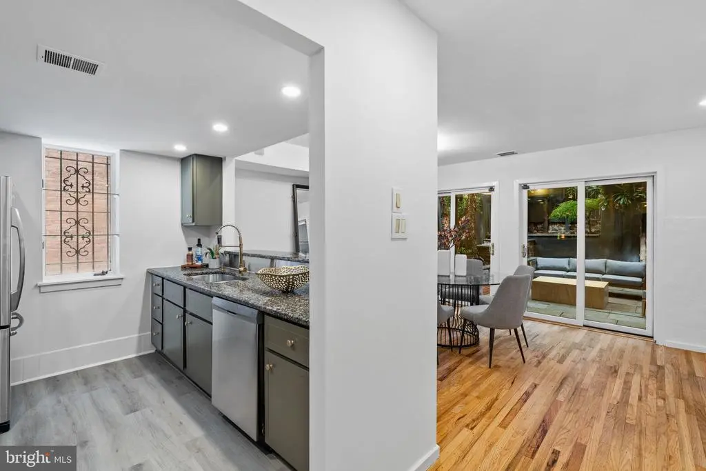Located in the highly sought-after Meredith School Catchment with a private attached garage with covered off-street parking! This beautifully renovated Contemporary/Mid-Century-Modern home built in 1965 sits on a very desirable block in the always-in-demand Queen Village neighborhood—where homes like this rarely come to market. Featuring 3 bedrooms, 2 full bathrooms, and an attached 1-car garage, a large private fenced backyard, and a front walkout roof deck, this property offers a rare combination of style, comfort, and lots of outdoor space. The home boasts a stunning private rear yard oasis—professionally landscaped and hardscaped by Liberty Tree & Landscape Management—with flowering beds, mature Magnolia, River Birch, and Weeping Japanese Maple trees. The outdoor space is enhanced by Bluestone and Old World Brick patios, walkways, fieldstone garden walls capped with Bluestone for additional seating, and elegant landscape lighting. This expansive yard also includes an additional connected lot (Tax ID 022029810), creating a truly rare outdoor retreat in the city. Inside, the layout is open and bright, with a front walkout roof deck, a cozy gas fireplace with a stone surround and hearth, and a first-floor laundry room. The home is filled with thoughtful updates, including a cook’s kitchen with Oakmoss solid wood cabinetry, Brushed Brass hardware and fixtures, stone countertops, stainless steel backsplash and appliances (5-burner gas range/convection oven, microwave, refrigerator/freezer, dishwasher, disposal), double-bowl sink, and LVP flooring. The first full bathroom features a walk-in shower with glass door, Rainhead, stone countertops, floor and wall tile, Brushed Brass fixtures, recessed lighting, and a stylish vanity. The second full bathroom offers a combination bathtub and shower with Rainhead, dual sinks, skylight, Brushed Brass fixtures, ceramic and stone tile, and custom lighting. Additional upgrades and features include Low-E casement and double-hung windows, sliding glass doors to the yard, roof, electric, Carrier gas furnace and central air HVAC systems, and an AO Smith gas hot water heater. The entire interior and exterior were just professionally painted. Original hardwood floors, stairs, and railings have just been professionally refinished, and all exposed brick walls have been restored and painted white. Other highlights include an office/workstation area, LED recessed lighting throughout, Matte Black exterior lighting and modern ceiling fans, custom closet organization, restored double wood front doors with slate foyer flooring, an insulated garage with automatic opener and shelving, wrought iron front door gates, a front door smart lock, hardwired fire, smoke, and security systems, updated masonry, and brick pointing. The home is filled with natural light, generous storage, and abundant space to spread out both indoors and out. Enjoy walkability to top-rated schools, restaurants, coffee shops, cafes, boutiques, parks, hospitals, and universities. This is truly a rare opportunity—a “needle in a haystack” in Queen Village and the City of Philadelphia. With easy access to Center City, Delaware Avenue, I-95, I-676, I-76, major bridges, stadiums, 30th Street Station, and Philadelphia International Airport, convenience is unmatched. With the Philadelphia Homestead Exemption, estimated 2025 property taxes are just $10,864.