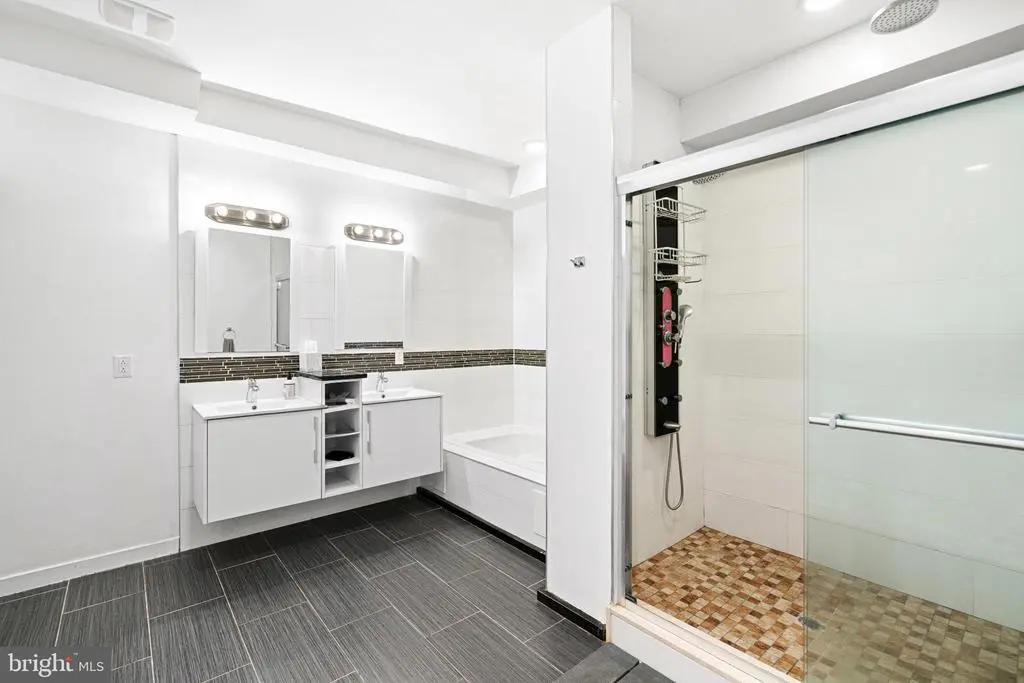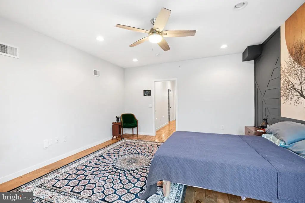 Welcome to your dream home at 2041 East Sergeant Street, nestled in the heart of the vibrant East Kensington neighborhood. Built in 2017, this stunning corner rowhome captures the essence of contemporary design with its unique facade of brick and siding, paired with handsome recycled hardwood floors that flow seamlessly throughout. Step inside to discover a spacious 2,700 square feet of living space, where the open-concept layout reigns supreme. The main floor is a haven for both entertaining and daily living, featuring a living room adorned with a custom-crafted wall feature framing the media area, a dining space, a half bath, and a modern kitchen. Equipped with a full suite of stainless steel appliances, white shaker cabinets, and ample granite countertops, and a convenient breakfast bar, this kitchen is designed to make cooking and entertaining a delight. Step outdoors to extend your living space into your charming backyard — the first of two private outdoor spaces complete with a grassy area, barbecue setup, and two storage sheds. This home boasts three generous bedrooms and two and a half bathrooms. The second floor houses two large bedrooms, a hallway full bath, and separate true laundry room, outfitted with designer wall paper, open shelving, built-in ironing board, and the washer and dryer in place with custom built storage. Ascend to the third floor to find a full floor primary suite—a tranquil retreat with a regal entrance adorned with motion-sensor lighting, a magnificent walk-in closet, and an impressive ensuite bathroom featuring elegant fixtures, dual sinks, and modern finishes including a soaking tub. The basement has been thoughtfully transformed into a fully equipped woodworking shop, perfect for projects or crafting, with the utility room smartly enclosed in a separate room to offer extra storage space. For a true escape, head up to the custom floating roof deck to unwind, taking in the panoramic city views, or enjoy movie nights with the pull-down projection screen. Designed for modern living, this home includes air conditioning, recessed lighting, and a state-of-the-art security system. With custom smart home elements, upgraded cabling, and a personal home server, this property caters to both comfort and sustainability. The East Kensington community, a community that is home to many creative artisans and makers of their craft, is bustling with energy, offering easy access to Frankford Avenue and all Fishtown has to offer, such as host of must-try acclaimed restaurants like Kalaya, Suraya, Jaffa Bar, Meetinghouse, Yuhiro Sushi, and more, just steps from your door. Convenient access to the airport and just a 2 block walk to public transportation adds to the vibrant urban lifestyle and convenience of this incredible city location. Truly the best of city living and a must see home. Note: The seller plans on removing the workshop equipment and home server and will negotiate those items with an interested buyer.