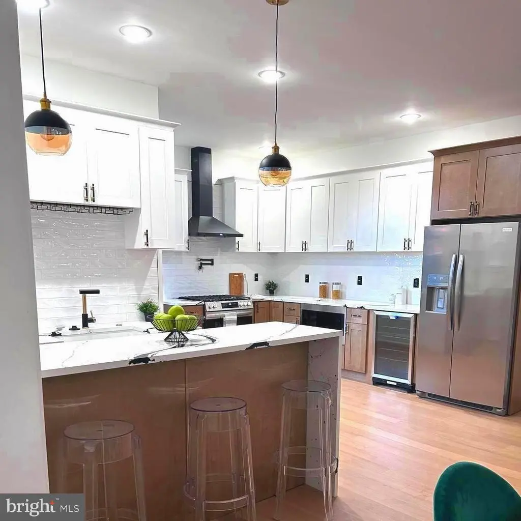 Welcome to 316 W Earlham Terrace! This spectacular Germantown townhouse has been fully reimagined with modern style and luxury finishes, offering the perfect blend of sophistication and comfort. Step into the open-concept main level, where a spacious living and dining area is anchored by a striking electric fireplace and designer accent wall. The ultra-modern kitchen is a showstopper, featuring white quartz waterfall countertops, stainless steel appliances, a farmhouse sink, pot filler, wine fridge, and ample storage. From here, you’ll enjoy access to the private backyard and garage – the perfect spot for gatherings and relaxation. Upstairs, the primary suite offers a spa-inspired retreat with a custom-tiled walk-in shower and double vanity. One additional level provides three more spacious bedrooms and beautifully designed bathrooms, ensuring everyone has their own space. The fully finished basement with high ceilings offers even more living options – whether you need a home office, entertainment space, or playroom. A modern powder room and separate utility area make it as functional as it is stylish. With a two-car garage, off-street parking, zoned central air, and all-new systems, this home is completely move-in ready. Highlights: 5 Bedrooms | 3.5 Bathrooms / Open-concept main level with recessed lighting & electric fireplace/Gourmet kitchen: quartz waterfall counters, SS appliances, farm sink, pot filler, wine fridge, & ample storage/Laundry area + half bath off kitchen/Primary suite with walk-in shower, double vanity, custom tile/Fully finished basement with powder room & high ceilings – perfect for office, playroom, or family room/Two-car garage + off-street parking /Two-zoned central air, new HVAC & water heater.3– It’s the home you’ve been waiting for.