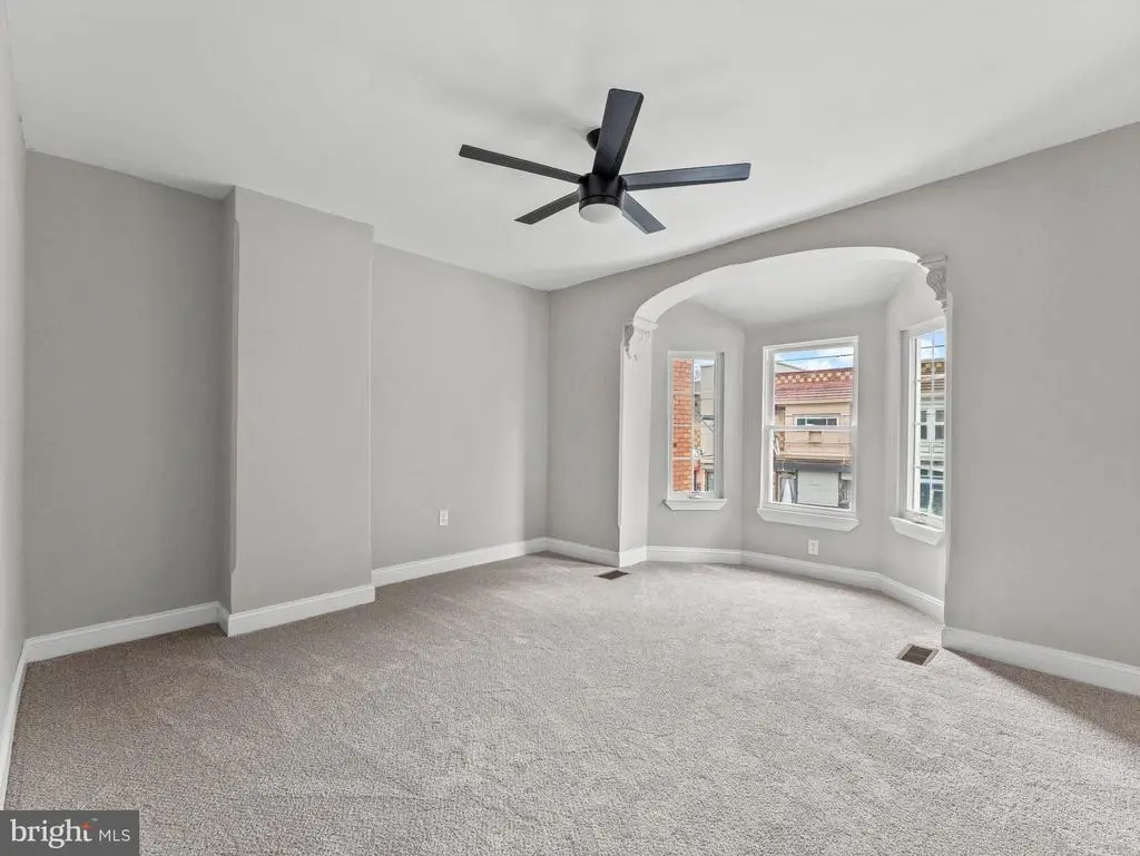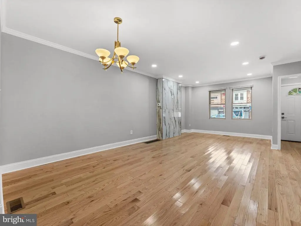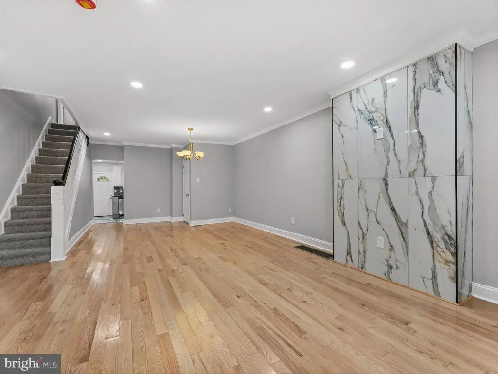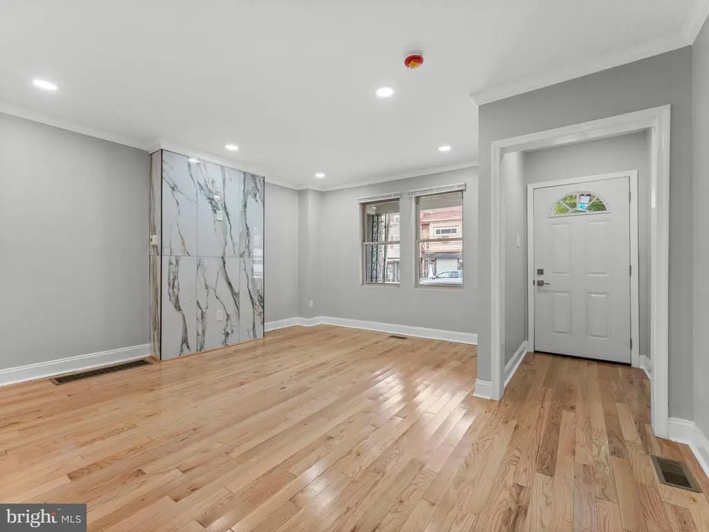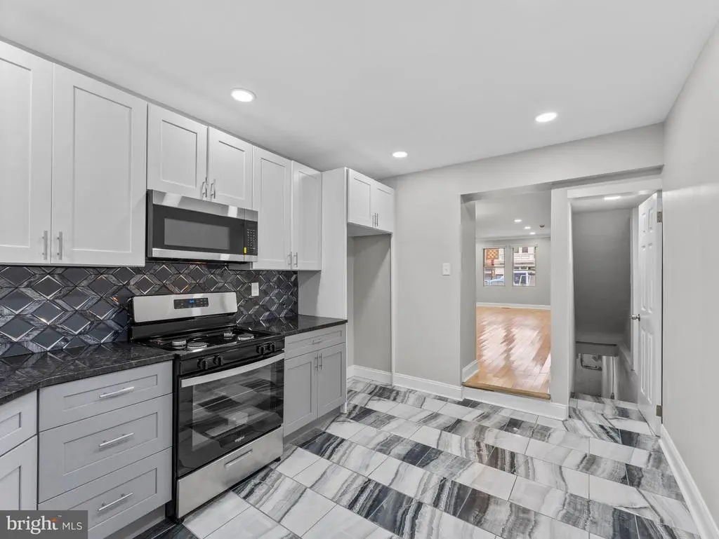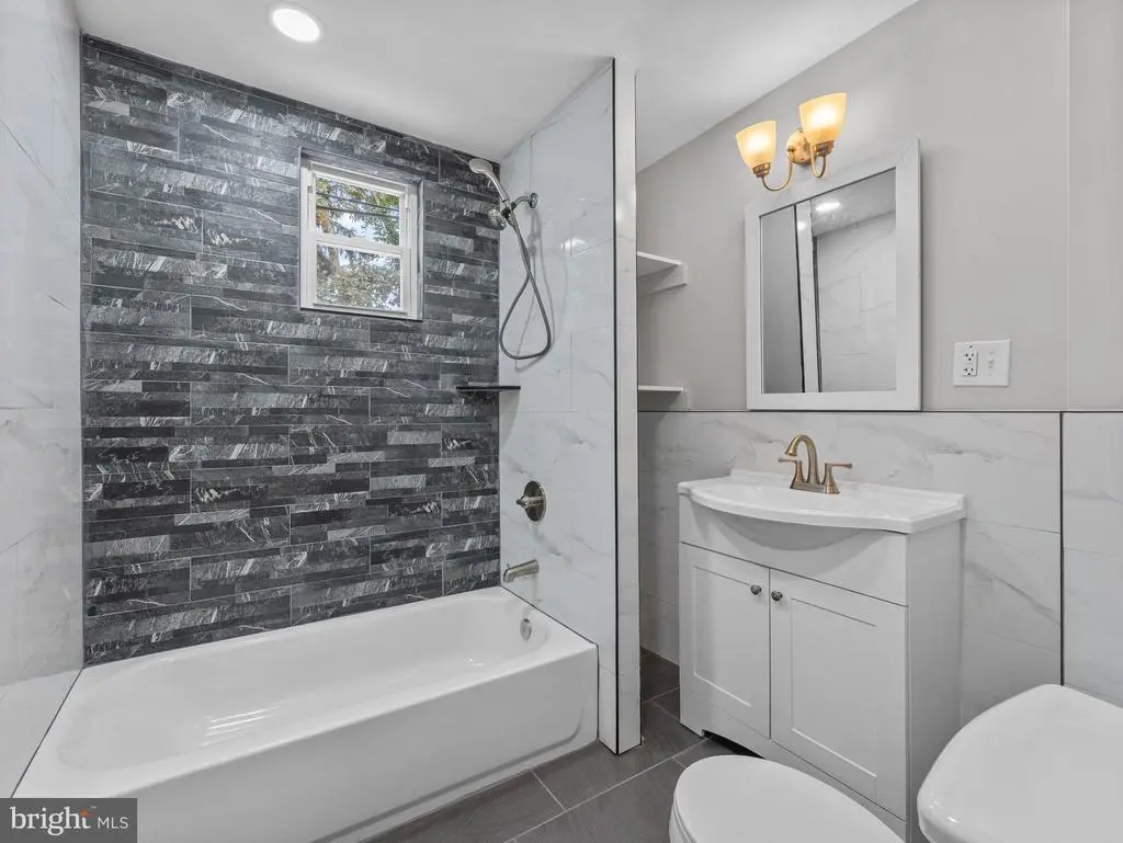 Sophisticated and Cosmopolitan. Urban Living on 4 full levels . Cool color palette greets you with a covered front porch. Enter the first floor with beautiful neutral colored hardwood flooring complete with a stylish marble tile accent wall and crown molding for endless decorating options. Two tone kitchen cabinetry with premium soft close doors/drawers, stainless steel appliance package, and gleaming backsplash are highlighted by efficient recessed lights. Step out back to a large private rear deck and fenced spacious backyard for entertaining. First floor powder room provides convenience. Downstairs you will find a bright and clean basement for man cave options, or additional storage space. There are brand new mechanicals to serve you for may years to come. As you travel upstairs, retire to 4 spacious bedrooms carpeted for coziness and comfort. The full bathroom has been designed with choice color and materials. 3 full levels of living space provides plenty of room for all. All protected by a new roof /with warranty and new windows to provide a cozy and energy efficient home. You desire the best. Come claim it today.