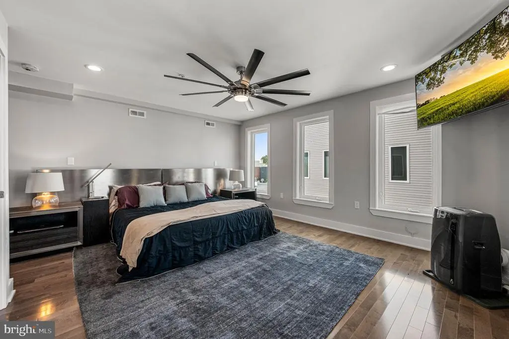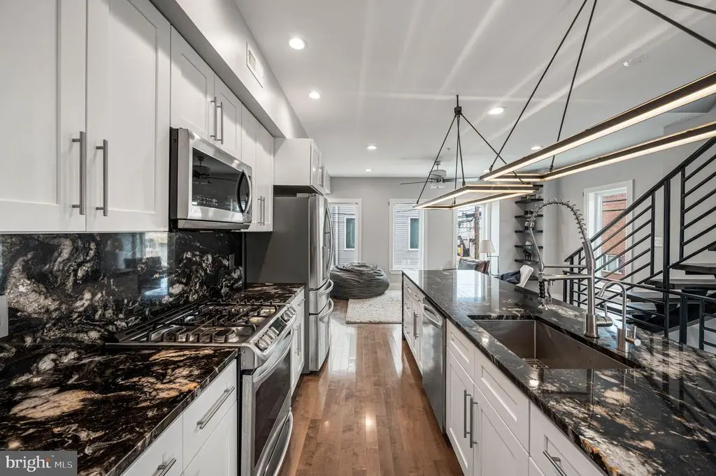 Welcome to 2000 East Moyamensing, also known as The FOURTH, a premium gated courtyard community with no HOA fees. Enter through the motorized gate on McKean Street and enjoy the ease of an attached first-floor private garage. This desirable corner home is bathed in natural light with an abundance of windows on three sides of the home. The first level offers garage access from the courtyard (and from within the home, too) along with a flexible room - plus a convenient half bath. The lower level is perfect to use as an office, library, fitness area, or sitting room. On the second floor, the open-concept design is perfect for modern living, featuring a spacious kitchen great for hosting dinner parties and cooking with friends, as well as an additional dining, and living area. The kitchen boasts stainless steel appliances, quartz countertops, a stylish backsplash, and white wood cabinetry. Designer light fixtures add a sophisticated touch, and the layout seamlessly connects to the dining and living spaces for effortless entertaining. The open floorplan accommodates countless people without ever feeling overcrowded. The third floor includes two bedrooms, a full bath, and a laundry room with a twin tub washing machine. The fourth floor is dedicated to the expansive primary suite, offering a luxuriously finished bathroom with the walk-through, curbless, double shower with dual shower heads and linear invisible drains. The radiant heat floors mean it is never a cold bathroom in the wintertime. There is a generous custom designed and built massive closet space, too. Great views of the city skyline from the primary bedroom. At the top, a private roof deck with unmatched 360 degrees views providing the perfect place to unwind while enjoying panoramic views of the Philadelphia skyline. A great place to host family and friends on New Years, 4th of July, and other holidays for immersive fireworks as far as the eye can see. Additional highlights include tons of storage throughout and the remaining tax abatement transferring to the new owner, offering significant and meaningful savings. Countless upgrades by current owner, all listed in additional docs available upon request. This ultra convenient location of Pennsport provides you with easy access to Dickinson Square Park, which hosts farmers markets and many other fun summer events, including movie night, and music events, too. Moonshine Philly, Rebel and Wolf Café, Grindcore House, Gooey Looies, Bok Bar, and everything East Passyunk has to offer are only a very short stroll away. Additionally, nearby is a Target, Lowes, Acme grocery, Peddlers Beer, Fine Wine and Spirits, Monster Pets, IKEA, Millers Ale House, and so much more. Schedule your tour today and experience all that this beautiful home has to offer.