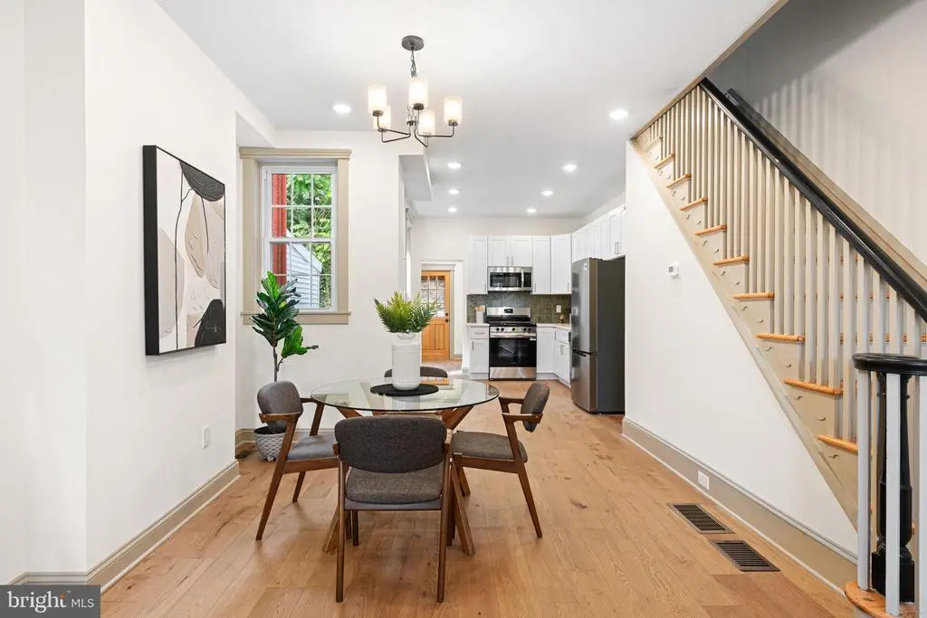 Welcome to 3639 Fisk Avenue—a beautifully updated 3-bedroom, 1.5-bath home located on a quiet block in the desirable East Falls neighborhood. Expertly renovated by Baker Street Partners, a trusted name known for quality craftsmanship and thoughtful design throughout Philadelphia, this classic brick rowhome has been reimagined for modern living while retaining its original character. Step onto the inviting front porch, perfect for morning coffee, and enter into an open-concept living and dining space filled with natural light. The brand-new hardwood flooring, recessed lighting, and clean neutral palette create a warm and modern atmosphere. The kitchen is a showstopper, featuring white shaker cabinets, quartz countertops, subway tile backsplash, and stainless steel appliances. A convenient powder room and access to the backyard make this level ideal for entertaining. Upstairs, you’ll find three comfortable bedrooms and a stylishly renovated full bath with designer tile and fixtures. The basement offers laundry, storage, and flexible space for a home gym or office. Enjoy a private backyard with a mix of green space and hardscaping—ready for barbecues, gardening, or simply relaxing. With easy access to Kelly Drive, Center City, and the shops and dining of East Falls and Manayunk, this home is a perfect blend of city living and neighborhood charm.
