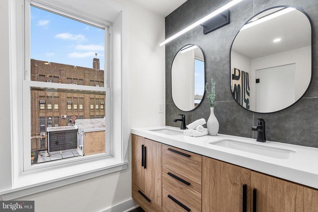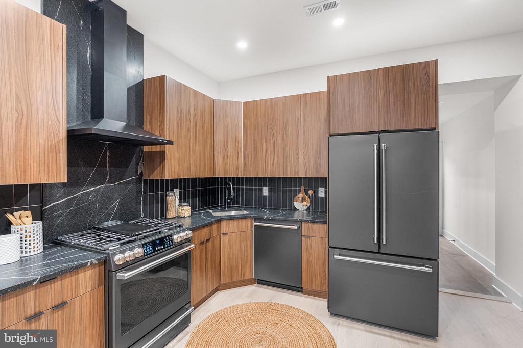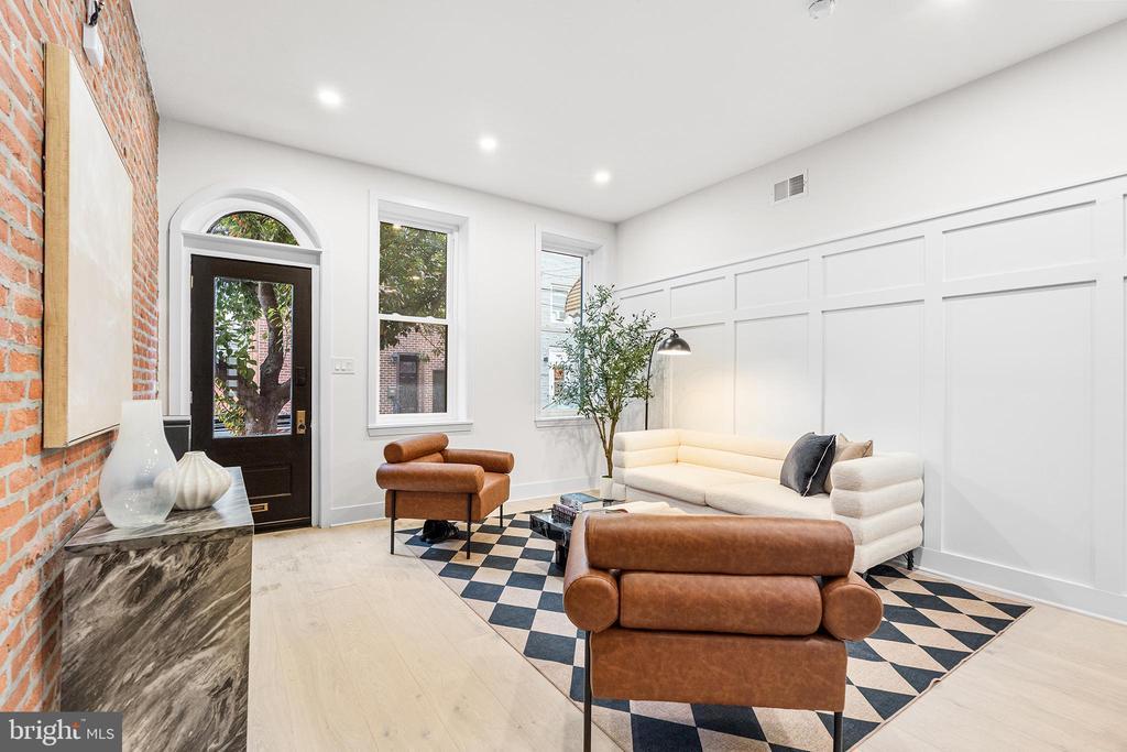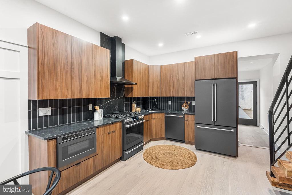 Stylish, modern interiors meet classic Philadelphia curb appeal on a treelined block in Olde Richmond. This 3-Story, 3 Bed, 2.5 Bath, original red brick row with a preserved front door and cornice, has been renovated from top to bottom with high end materials and comes with a 10 Year Tax Abatement. Wide plank white oak flooring is throughout the above ground levels of the home. The first floor boasts high ceilings, and an open floor plan that leads into a modern walnut, flat panel kitchen, honed black stone countertops and a matte black Cafe series appliance package. To the rear of the first floor you will find a half bath and a laundry room before heading out to your HUGE Rear Yard! Head up the custom steel stringer staircase, with reclaimed wood treads to the 2nd Floor where you will find 2 large bedrooms with great closet space and a full bathroom with herringbone tiled floors. On the 3rd Floor you will find the massive Primary Suite, complete with a spa-like bathroom, huge walk-in closet and a bedroom larger enough for a king bed and some. Downstairs you will find a fully finished basement for extra living space. 2566 Salmon St is just steps from Fishtown and all of the best amenities the neighborhood has to offer. Easy access to public transportation and major roadways including I-95. Don’t miss this beauty!
