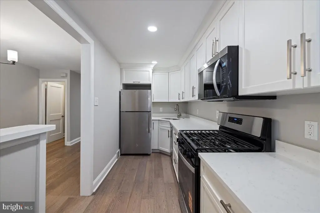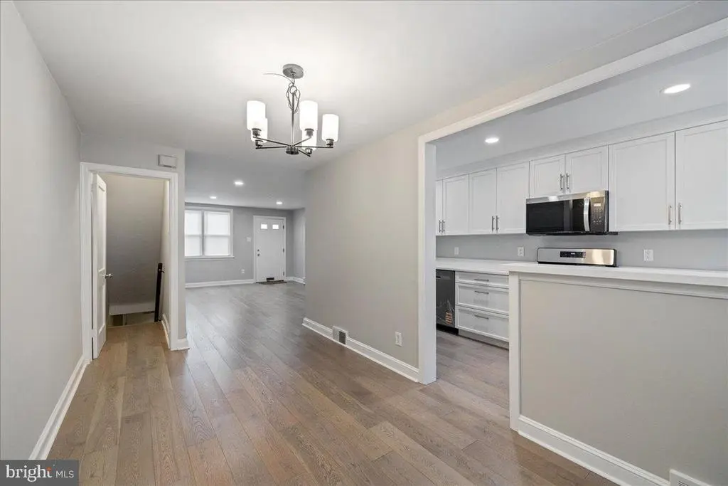 Welcome to Overbrook Park, a neighborhood known for its pride of ownership, convenience, and charm. Step onto the well-manicured lawns of the 7600 block of Brentwood and into your beautifully updated home. At the entry, relax on the front patio or head inside to a spacious first floor featuring a bright living room with recessed ceilings lights and brand-new flooring that flows seamlessly into the dining area. The modern kitchen has been thoughtfully designed with quartz countertops, stylish custom cabinetry upgraded hardware, and a smart layout that includes vertical upper cabinets and deep drawer-style lower cabinets for maximum storage. Stainless steel appliances—including refrigerator, stove, and dishwasher—complete this sleek and functional space. . Upstairs, the hallway and bedrooms feature plush carpeting that pairs perfectly with soft gray walls. Ceiling fans provide comfort year-round, with or without central air. The full bathroom offers a clean, modern look with a fiberglass bath and shower inlay. The finished basement expands your living space with another full bathroom and endless possibilities—whether as a family room, home office, guest suite, or man cave. It also includes a brand-new washer and dryer, plus all new mechanicals: heater, central air condenser, and hot water tank. A 100-amp circuit breaker panel is installed for efficiency and peace of mind. Parking is easy with a garage plus driveway space for a second car. Location highlights: Major supermarkets, retail shops, eateries, and even the neighborhood’s favorite Applebee’s are just blocks away. Additional perks: First-time buyer down payment and closing cost assistance available! Don’t miss the chance to make 7641 Brentwood Rd your new home. Schedule your showing today. Please remove shoes and use shoe bags or place bags over shoes