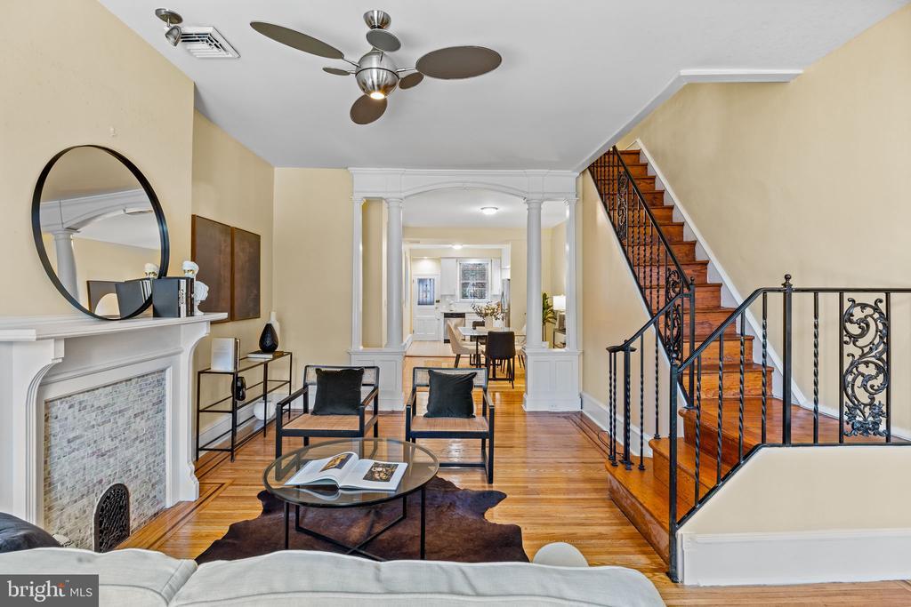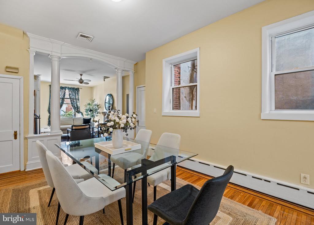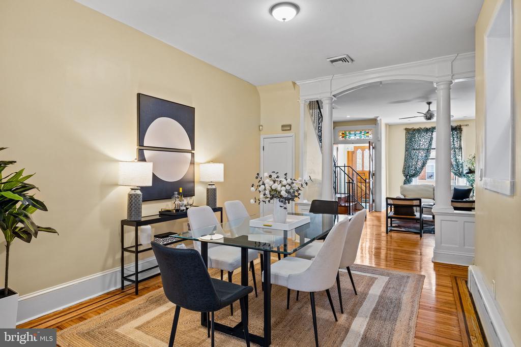 Every home has a story and 1303 W. Porter Street is ready to begin its next chapter with you. Step through the vestibule, open the original wood doors, and the home immediately greets you with light, space, and character. The grand living room sets the stage as sunlight pours through tall windows, hardwood floors warm the home, and the decorative fireplace and turned staircase give a timeless nod to the home’s past. Move seamlessly into the dining room, where columns frame a space designed for gathering. Imagine holiday dinners, weekend brunches, or quiet evenings around the table. Continue into the heart of the home where you will find a newly renovated kitchen; it blends modern convenience with clean, contemporary style. Bright, light cabinets, subway tile, stainless steel appliances, and quartz countertops make cooking and conversation a joy. From there, step outside into your own private backyard oasis. Whether it’s an end of summer barbecue, a morning coffee, or unwinding at the end of the day, this space invites you to slow down and enjoy. The story continues downstairs, where a fully finished lower level offers endless possibilities. With a half bath, laundry, storage, and a wide-open flexible space, you can create a media room, gym, playroom, art studio or all of the above. Upstairs, retreat to three spacious bedrooms, a full hall bath, and a bonus room that could easily become a baby's room, home office, walk-in closet, or creative nook. And just outside your door, the neighborhood adds its own chapter. Walk to Marconi Park, grab a bite at Chickie’s & Pete’s and a cannoli at Termini's Bakery or head to the Sports Complex for a game. Passyunk Avenue’s shops and cafés, the Navy Yard, Center City, hospitals, and universities are all just minutes away and when it’s time to travel, the airport is only 10 minutes from home. At 1303 W. Porter Street, style and convenience come together. This isn’t just a house, it’s the beginning of your story.