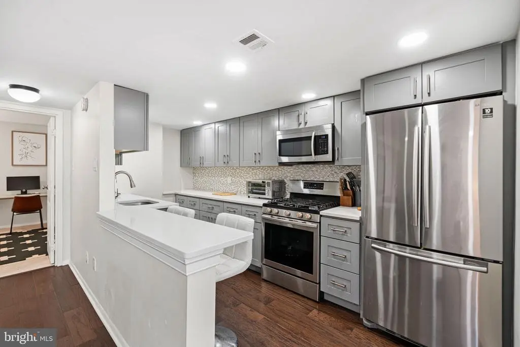 Picture yourself strolling down your own serene brick walkway tucked away in the heart of historic Society Hill. It leads to one of the rarest city features: a private, oversized brick patio. Whether it’s your morning coffee, an evening glass of wine, or a weekend gathering with friends, this outdoor space instantly feels like your own urban oasis. Step through sliding glass doors into a soaring two-story living room filled with natural light from double-height windows. The connection between indoor and outdoor living is seamless, bringing comfort and airiness to every moment. Just beyond, the open-concept kitchen is fully updated with quartz countertops, gray cabinetry, and stainless gas appliances that are ready for everything from quick weekday meals to leisurely weekend breakfasts. Living here means being a short stroll from some of the city's most beloved spots. Grab a latte at Bloomsday Café, catch live blues and bourbon at Twisted Tail, or enjoy a game night with wine at Queen & Rook. Groceries are simple with Whole Foods and The Fresh Grocer just a few blocks away. Upstairs, a sun-filled loft offers flexible space perfect for working from home, reading, or creative pursuits. The spacious primary suite is tucked away for privacy and features a spa-like bathroom with both a deep soaking tub and a sleek stall shower. On the main floor, a second bedroom and full bathroom provide versatility for guests, a nursery, or a dedicated office. Additional features include an in-unit laundry hookup and secure, guaranteed monthly parking at the nearby Independence Place garage. And when it’s time for dinner out or a celebratory night on the town, you’re just steps from acclaimed restaurants like Zahav, Provenance, and ESO Ramen Workshop. Whether you’re a young professional looking for modern design and walkability, a family needing smart use of space, an empty-nester seeking comfort without compromise, or an investor searching for the perfect pied-à-terre, this home adapts to your lifestyle. This isn’t just a place to live, it’s a better way to live. Thoughtfully updated and located in one of Philadelphia’s most iconic neighborhoods, this home offers historic charm, modern ease, and everyday inspiration.