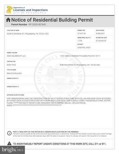 Seller developer financing options available. Price dropped for buyer equity capture pre-construction pricing. This ready-to-build property comes with approved plans, permits, and geotech complete. The design includes a 3BR/2.5BA home with rooftop deck and skyline views, plus the option for a 4th bedroom. Tailor the home to your style with customizable finishes and design changes. With comps at $490K, you’re stepping in with instant equity. Our lending partners also offer 203k renovation and conventional homestyle loans to make the process seamless. Owning new construction in this thriving location is close to northern Liberties, Fishtown and all of the developing boom in the area. Owner is motivated and your options are endless! This deeply reduced and updated price is for the vanilla builder grade finishes laminate floors, vinyl siding, 9 foot basic kitchen and basic bathroom finishes white subway tile, basic light fixtures and no upgrade options. Buyer may elect upgrades which can be added to the price and built in to the agreement for completion. Seller encourages all offers. The lot is also available for sale with the plans only and buyer may elect their own builder.