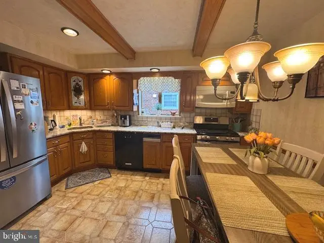 SAMPLE CONDITION! Large 5 level split situated across the street from the Park. Enter the through a custom insulated stain glass door into the large bright living room with newer hardwood floors and large windows facing the Park. Entertain in the beautiful dining room adjacent to the remodeled modern eat in kitchen with granite countertops with an under mount deep stainless steel sink, new 5 burner gas stove, ceramic tile floor and backsplash, and a built in pantry. Take the next level up to a foyer which features 2 nice size bedrooms (one used as an office) with their own hall bath and laundry chute. Ascend again to the top level to a beautifully appointed main bedroom and in suite bath and an adjoining second bedroom. There is an easy access to a floored insulated attic. Below the main level is a cozy family room with a brick gas fireplace and a powder room with easy access through newer premium sliding doors to a covered patio roof overlooking a fenced yard with a shed. The level below the family room is a neatly appointed laundry utility room with built in closets and an exit to a covered garage and a private driveway. The landscaping features a handsome 2 sided retaining wall, lighting and a beautiful Japanese Maple.