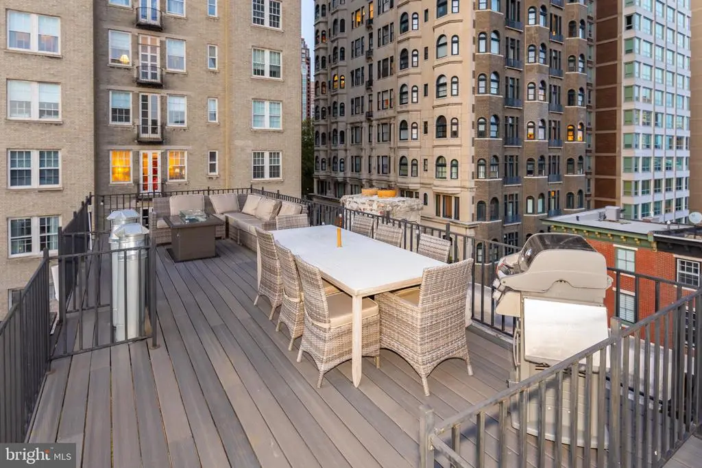 Welcome to this stunning two-bedroom, two-bathroom condo located just one block from Rittenhouse Square. This home offers the perfect combination of modern living and one of the most desirable locations in the city. Step into the dramatic living area featuring soaring two-story ceilings and oversized windows that fill the space with natural light. The open layout is complemented by a loft area overlooking the living room, providing an ideal space for a second bedroom, home office, den, or reading nook. One of the true highlights of this property is the two private outdoor spaces with incredible city views. A spacious rooftop deck offers plenty of room for entertaining, dining, or simply relaxing, while an additional outdoor balcony provides even more options for enjoying the city skyline. The home includes a first floor generously sized bedroom, loft area and two full bathrooms, designed with both comfort and style in mind. With world-class dining, shopping, and Rittenhouse Square Park just steps from your front door, this location offers unparalleled convenience and a highly walkable lifestyle. Experience the best of Philadelphia living in this exceptional condo—perfect for anyone seeking a vibrant city lifestyle in the heart of Rittenhouse.