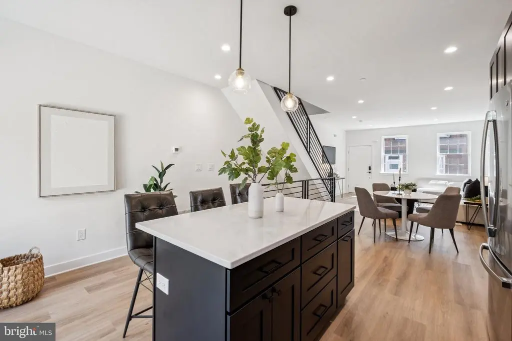 Welcome to 1608 N. Newkirk St., a stunning 2,300 sq. ft., 5-bedroom, 3-bathroom custom-built home in Brewerytown. This new construction offers unparalleled craftsmanship and luxurious living, with easy access to I-76 and the Art Museum. Step inside and enjoy an open-concept living area with a gorgeous kitchen featuring custom cabinetry, a spacious island, and stainless steel GE appliances. The large, private, fenced-in backyard is perfect for entertaining. The second floor includes two spacious bedrooms, a laundry room, and a luxurious bathroom equipped with a tub/shower and a double vanity. Head up to the third floor and be greeted by a versatile space—ideal for an office, nursery, or sitting area. Down the hallway is a spa-like bathroom with a double vanity and a glass-enclosed shower. The primary bedroom is large enough to comfortably fit a king-size bed. The basement features a full bathroom with a shower, an entertainment area, and a fifth bedroom. Each bedroom includes closets with shelving and ample storage. This property comes with an approved 10-year tax abatement and a one-year builder's warranty. Don’t miss this unique opportunity! Ask a about the loan program with our preferred lender