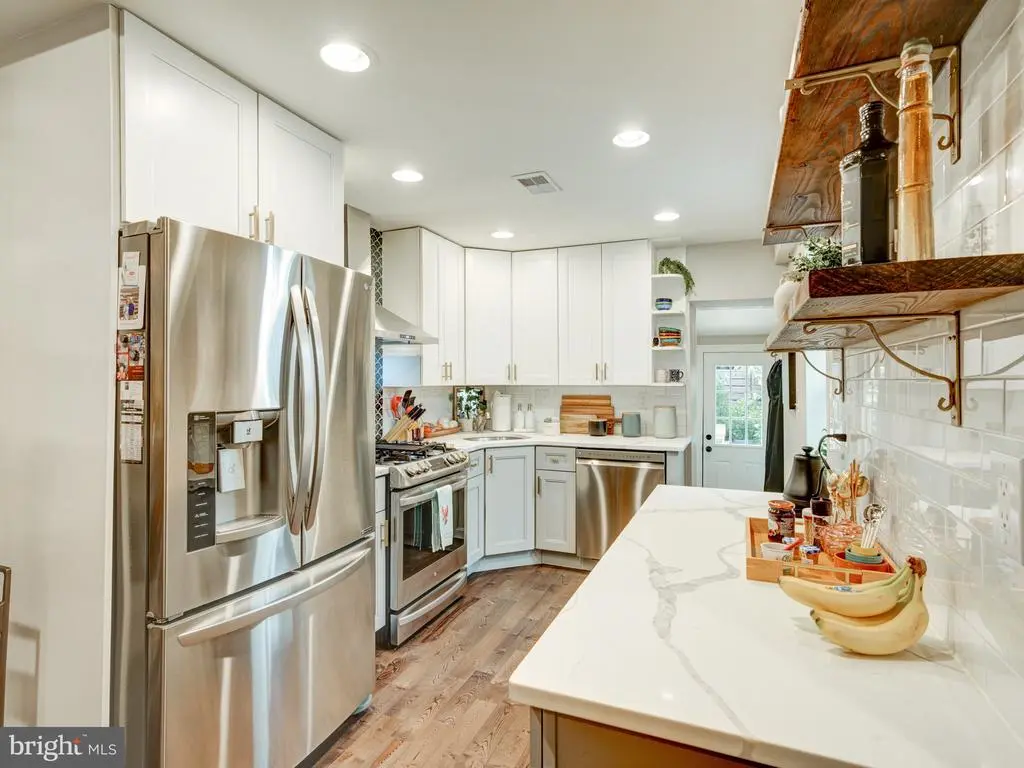 Nestled on a charming street just one block from Fairmount Avenue, this beautifully renovated home is steps away from some of the city’s finest restaurants, cafes, and cultural landmarks. Boasting exceptional craftsmanship and thoughtful design, this property blends timeless elegance with modern luxury. Inside, gorgeous hardwood floors flow throughout the home, complemented by soaring 10-foot ceilings adorned with ornate, textured wallpaper that adds a sophisticated and luxurious aesthetic. The kitchen is a showstopper, filled with natural light and featuring sleek cabinetry, quartz countertops, and a deluxe appliance package—including a slide-in gas range with pot filler set against a custom accent tile backsplash. Just off the kitchen is a practical mudroom with a washer and dryer area and a conveniently located powder room. The finished basement provides a spacious bonus living area, perfect for use as a den, playroom, home office, or additional lounge space, along with a large dedicated storage area. Built-in desk setups in both the master and guest bedrooms also make the home exceptionally functional for remote work. Step outside to your own private oasis. The expansive backyard is ideal for entertaining or simply relaxing, with a remodeled patio featuring blue stone pavers, blooming magnolia trees, and lush potted plants that create a peaceful, Zen-like retreat. An alleyway from the patio to the street adds convenience and easy access. Upstairs on the second floor, you’ll find two generously sized bedrooms with ample closet space and a beautifully designed shared bathroom. The bathroom includes a double vanity, marble flooring, mosaic-tiled shower walls, and an antique brass shower system with an 8" rainfall shower head and handheld sprayer. The third-floor primary suite is a true sanctuary, featuring an expansive walk-in closet and an oversized en-suite bath with a large stand-up shower, custom tile work, and premium designer hardware. This completely remodeled home also includes newer systems throughout, including electric, plumbing, HVAC, a high-efficiency heater, new hot water heater, windows, roof, and central air. Modern smart home features such as a smart lock, Ecobee thermostat, Flair smart vents, and Ring security system offer both comfort and convenience. With four years remaining on the tax abatement, this home delivers excellent value in one of Philadelphia’s most vibrant and desirable neighborhoods. The location is unbeatable—just steps from Fairmount Avenue, within walking distance to Kelly Drive and the Art Museum, and a short Uber ride to Center City. The block itself offers a rare sense of community and neighborhood charm that’s truly one-of-a-kind. This home perfectly combines modern luxury living with the walkable, connected feel of city life. Don’t miss your opportunity to make it your forever home. Schedule your showing today—this one is very easy to show and sure to impress!