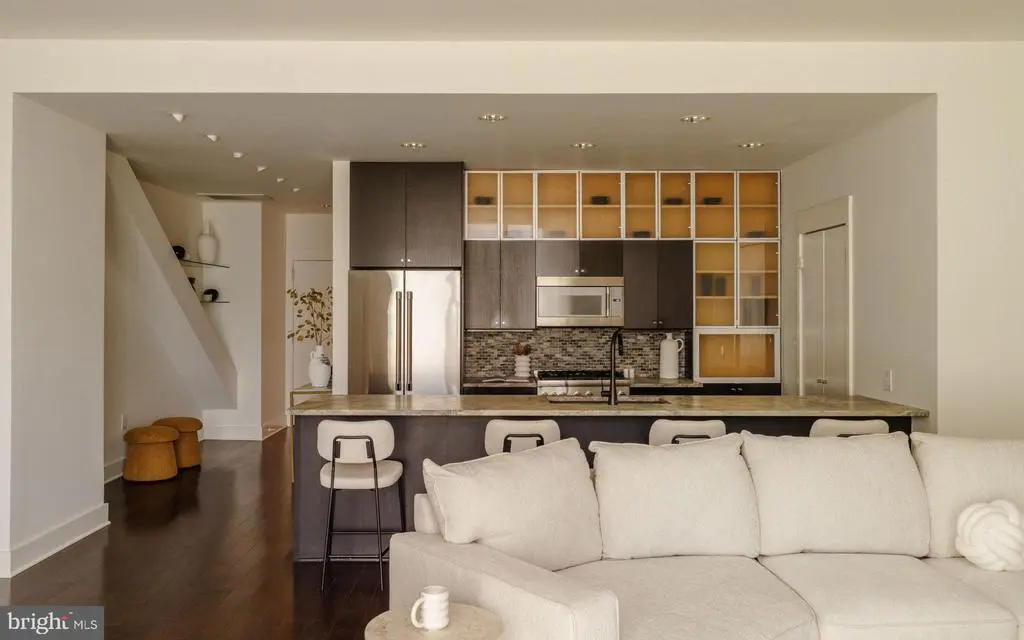 Rarely available, this PENTHOUSE in Washington Square West features an extraordinary 850 sq ft private double TERRACE with retractable awning, offering unmatched outdoor living and breathtaking sunsets over the city with 2 CAR PARKING AND separate STORAGE Room! Low condo fees and nearly 1,800 sq ft of renovated sun-filled space including floor-to-ceiling windows, an open layout with hardwood floors, recessed lighting, and a sleek gas fireplace. The chef’s kitchen with island seating for 6+ is outfitted with new Thermador appliances, quartzite countertops, and custom cabinetry, while the flexible floor plan provides 3 bedrooms or 2 plus a study/media room. Enjoy recently remodeled bathrooms, seven custom closets plus a private STORAGE room as well as 24-hour concierge service, TWO-CAR valet parking, and remarkably low condo fees in a financially stable building that hasn’t had an assessment in over 14 years. Steps from Jefferson Hospital and minutes to both Rittenhouse and Washington Squares, this is Center City living at its finest.