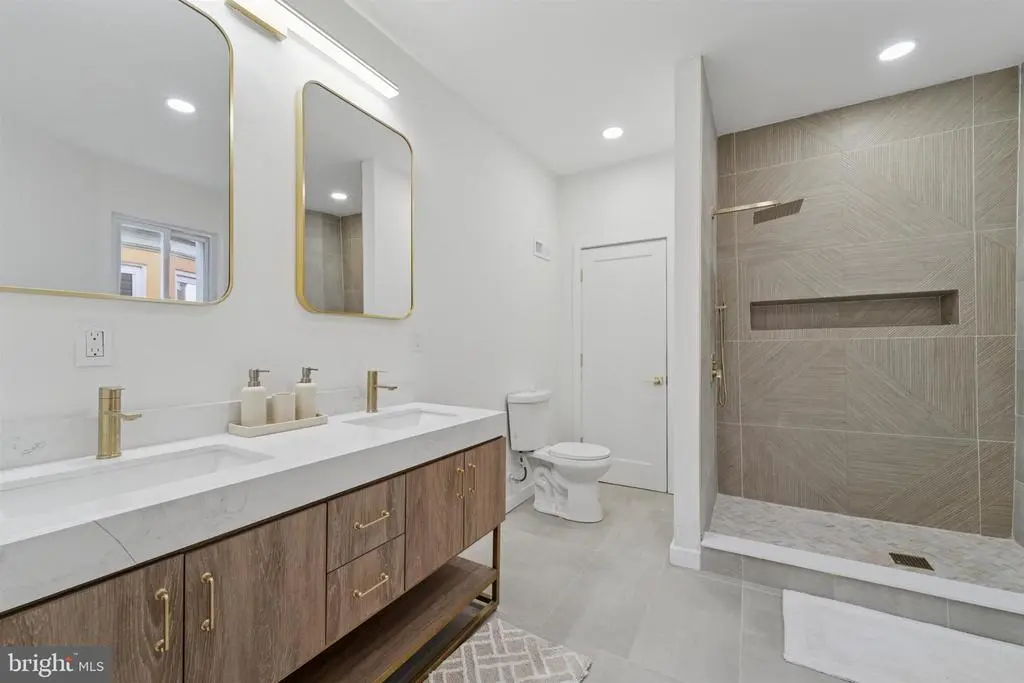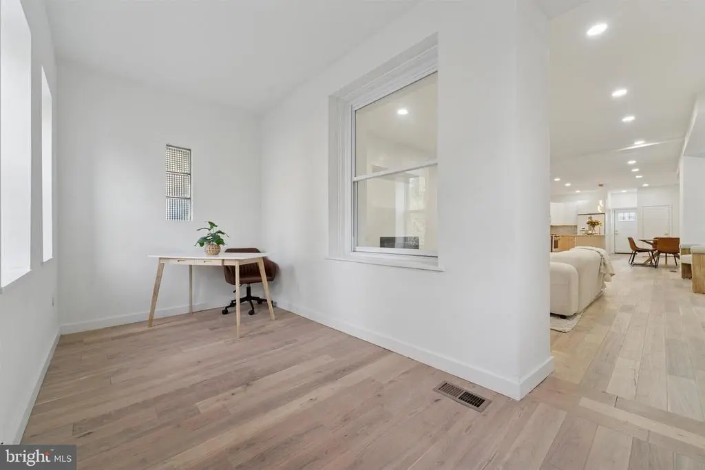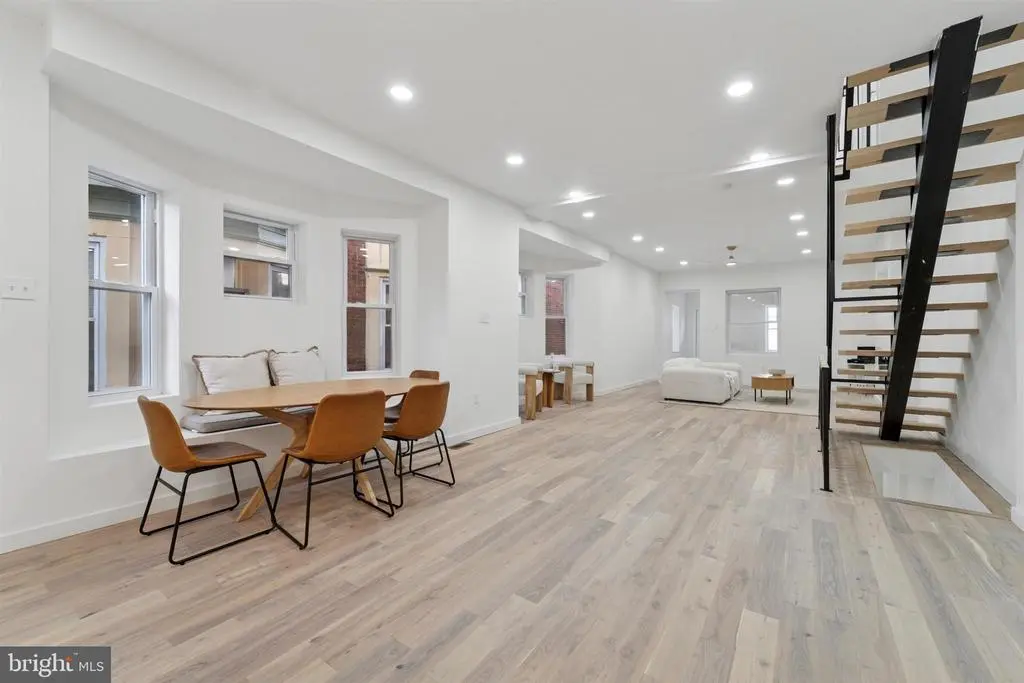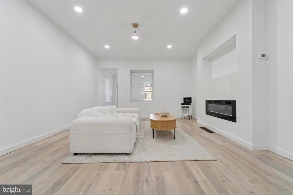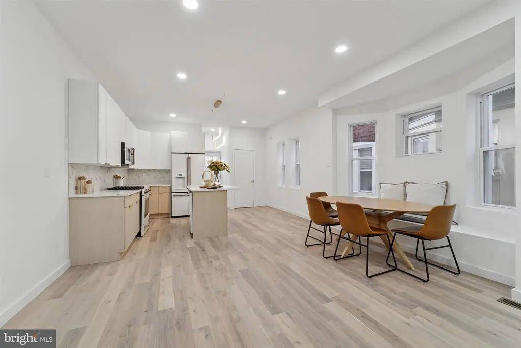 Welcome to 1203 S Wilton Street—This 4-bed/3.5-bath semi- detached twin home with Central air and finished basement in eastern Kingsessing is a rare gem. Thoughtfully designed with a light and airy palette composed of white and wood accents throughout this home is a move in ready canvas, that feels elevated and tasteful. As a twin home, the an abundance of natural light streams through the south facing windows. Enter to find an enclosed porch - a great place to put plants or store bicycles or carriages or a table to watch the world go by. The living space features floor to ceiling ivory colored natural mantle with built-in fireplace. Note the floating staircase with a light colored wood to compliment the wide planked flooring throughout. Proceeding to the rear find a premium chef's kitchen with an island. Note the quality Cafe line of coordinated appliances - microwave, dishwasher, range and refrigerator in white. The cabinetry is mixed media with wood at the base and white overhead. The rear of the home offers a tucked away powder room as well as a pantry preceding the large back yard. Upstairs, three bedrooms and two well designed bathrooms. Enter the primary suite, and find an illuminating bay window and large closets. The en suite, bath is large and spa-like with a beautiful soaking tub. At the ground level find a finished basement perfect for entertaining a gym or playroom. This home is close to Kingsessessing Rec center, Cedar Park and easy access to public transportation. Enjoy a private backyard with wooden fence, ideal for gardening, entertaining, or simply relaxing outdoors.