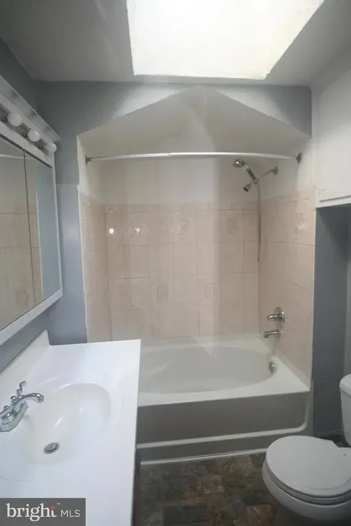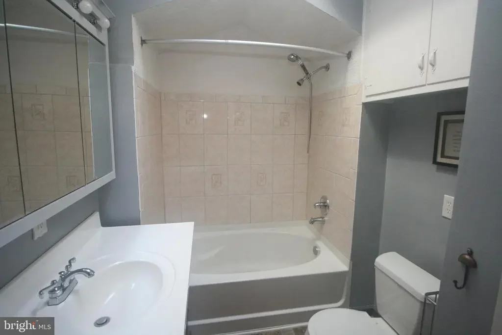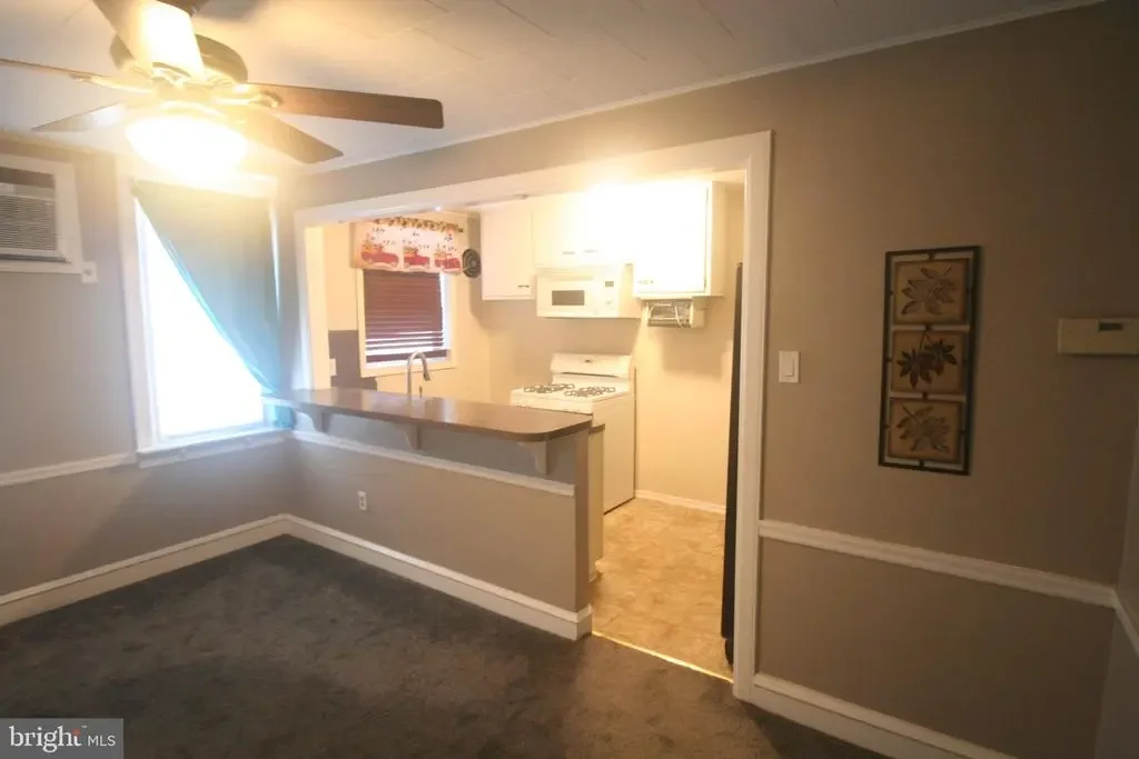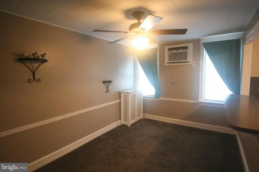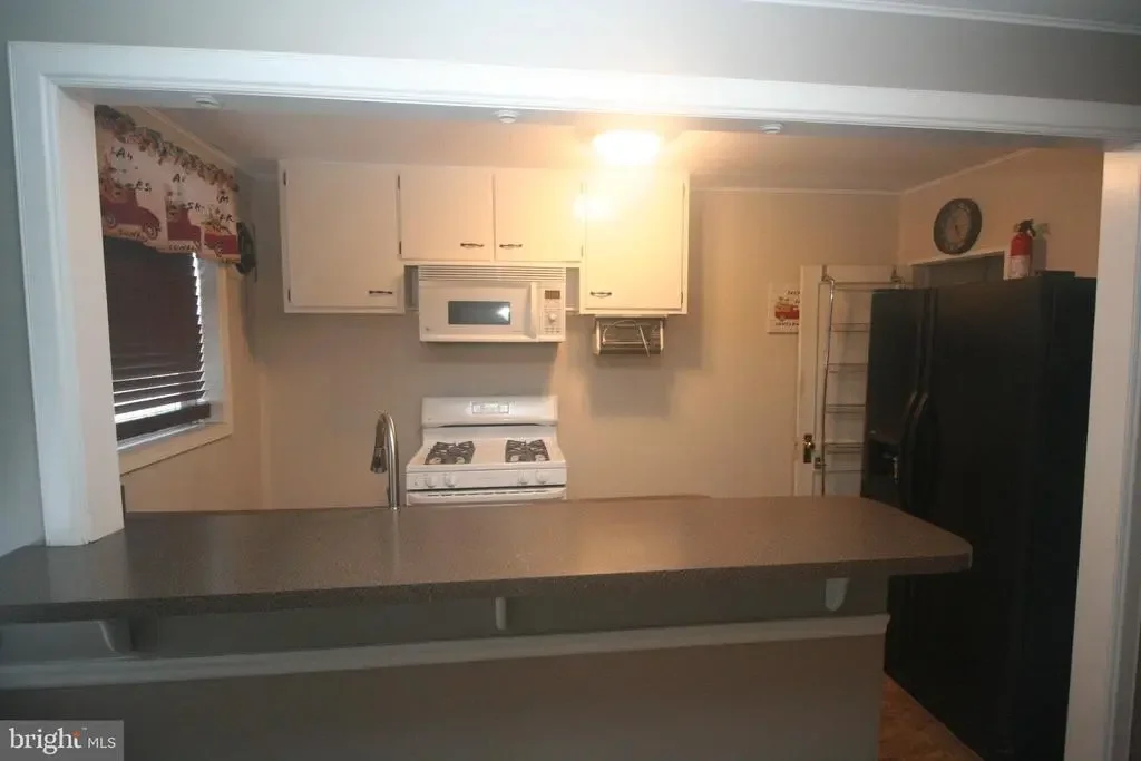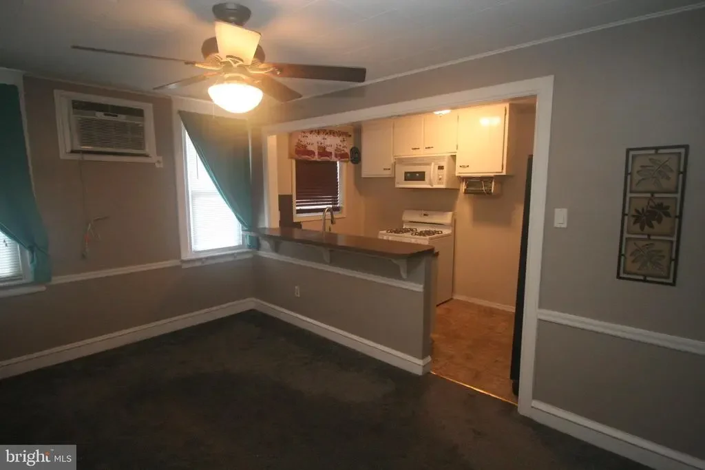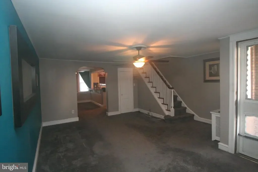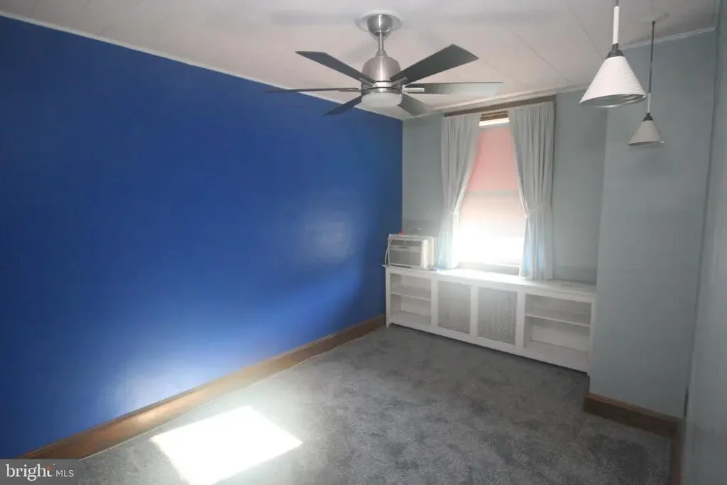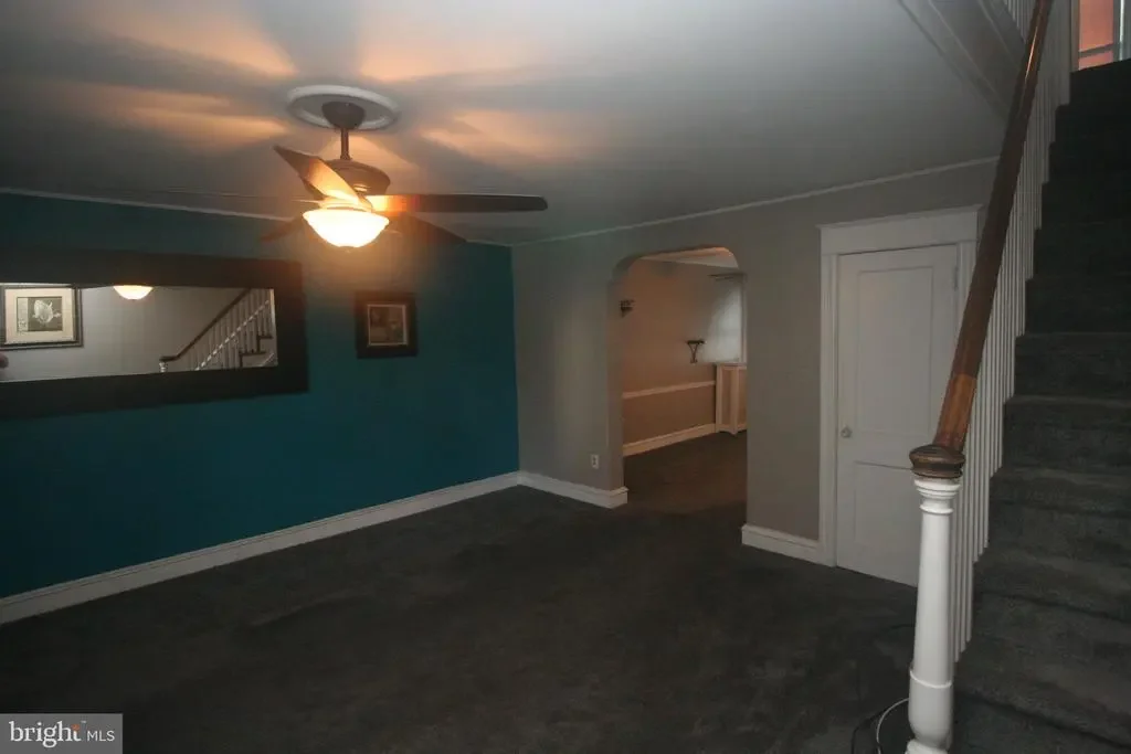 3 bedroom 1 bath middle of row with a front patio in the Mayfair section of Northeast Philadelphia.The living room and dining room both have carpeting.The dining room has a built in A/C unit.The kitchen has a gas stove,and a refrigerator with water and ice in the door.There are 3 bedrooms on the 2nd level with ceiling fans and window A/C units in all of the bedrooms and a updated hall bathroom.There is a double closet in the master bathroom.On the lower level there is a partially finished basement,and the laundry area and a door leading to the rear driveway .Out back there is parking and a 1 gar garage with a electric opener.The driveway for the house is located on a dead end driveway.
