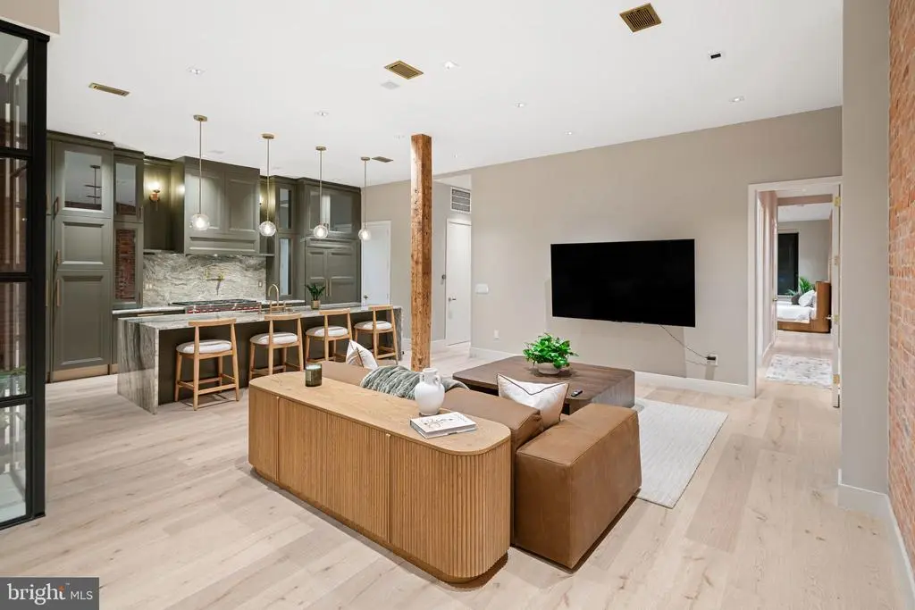2017 Sansom Street is a designer-curated masterpiece unlike anything on the market and located in the heart of prestigious Rittenhouse Square. This expansive residence was thoughtfully designed from top to bottom and offers nearly 6,000 square feet of space. The expansive single floor living area is paired with an unheard-of 12+ car private garage with incredible ceiling height. Combining historic charm with modern elegance, the home’s dramatic exposed brick walls, wood beams and soaring ceilings set the stage for an unparalleled lifestyle. The magazine-worthy living space is an expression of design and taste, where the stunning Chef’s kitchen is the heart of the home. The stunning custom cabinetry is combined with premium finishes and top of the line appliances. Multiple living spaces allow you to effortlessly entertain formally or informally. A true testament to the uniqueness of this home is a center glass-encased indoor arboretum allowing natural light to pour in, creating a striking centerpiece for everyday living and elegant entertaining. The luxurious primary suite is designed as a retreat, complete with a spa-inspired bathroom featuring a double vanity, soaking tub and oversized walk-in shower. Two additional bedrooms and bathrooms provide comfort and versatility for guests, office, or creative space. The crowning feature of this property is its 12+ car private garage—a true rarity in Center City and the ultimate urban luxury. Climate controlled with stunning ceiling heights and custom lighting, this is the perfect showcase for an owner's collection. Offering scale, character, and conveniences unlike anything else in Philadelphia, this Rittenhouse Square residence is truly one of a kind. *Roof rendering is for marketing purposes only but plans are approved for this work.* Taxes and square footage are the responsibility of the buyer to have verified independently.