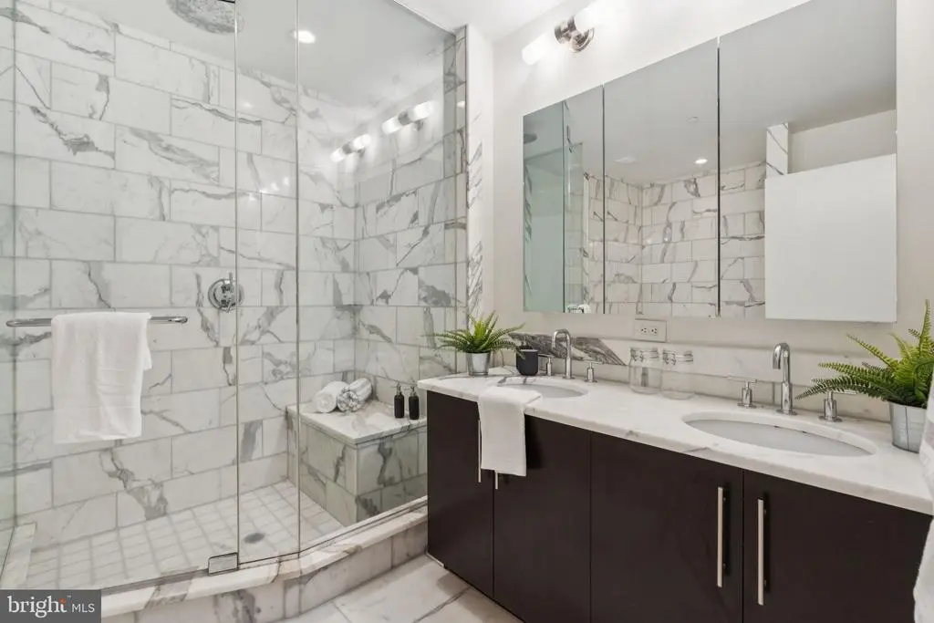 This oversized deluxe two bedroom plus den , two bathroom corner residence is not to be missed! This sprawling, sun soaked home boasts over 1700 square feet of magnificent living space. An impressive foyer and gallery invite you into an expansive living and dining area showcasing gleaming hardwood floors, soaring ceiling heights, and oversized windows that fill your interior with an abundance of light. The gourmet kitchen has been meticulously updated and features both Miele and Electrolux appliances, a Liebherr fridge, wine cooler, rich granite counters, and a large breakfast bar. The lavish primary bedroom suite has West and North facing exposures and boasts a separate dressing area, substantial closet space with premium closet organizers and room for a vanity, additional sleeping area or home office. The spa-like primary bathroom showcases marble throughout, a double sink vanity, and a jacuzzi soaking tub with a separate glass-enclosed shower boasting a waterfall shower head. The second bedroom is also generously proportioned and features ample closet space. An on-site storage unit and a multitude of discerning upgrades complete this one-of-a-kind residence at the ARIA. Association fees include a 24-hour concierge, an on-site fitness center, a residents' lounge, a business conference room, a pet spa, and bike storage. Parking is available at several nearby public garages. Perfectly situated in the Rittenhouse/Avenue of the Arts area, this pet-friendly home is just steps away from fine dining, one-of-akind shopping, world-renowned cultural destinations, and exciting nightlife. All major public transport lines - SEPTA, PATCO, MFL, and BSL - are right at your doorstep! ** Seller will pay the special assessment balance IN FULL at closing.