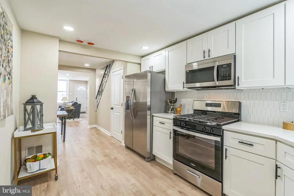 Welcome to 416 Dudley St, a beautifully renovated home in the heart of South Philadelphia. Step inside to discover an open main floor featuring brand new laminate wood flooring and a modern kitchen outfitted with white shaker cabinets, granite countertops, stainless steel appliances, and stylish hardware. Upstairs, you'll find two spacious bedrooms with matching new flooring. The primary suite includes a private bathroom with a unique vanity and a ceramic tile shower. An additional full bathroom has also been fully updated with contemporary finishes. For added convenience, the laundry room is located on the second floor, making laundry day a breeze. This home offers modern comfort in a classic South Philly setting—schedule your showing today!