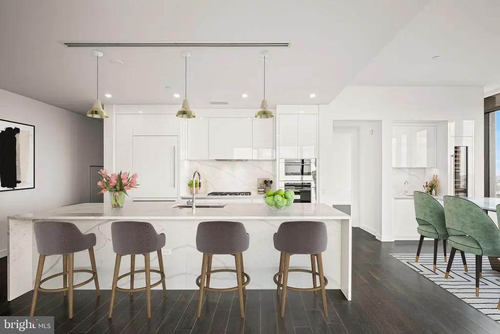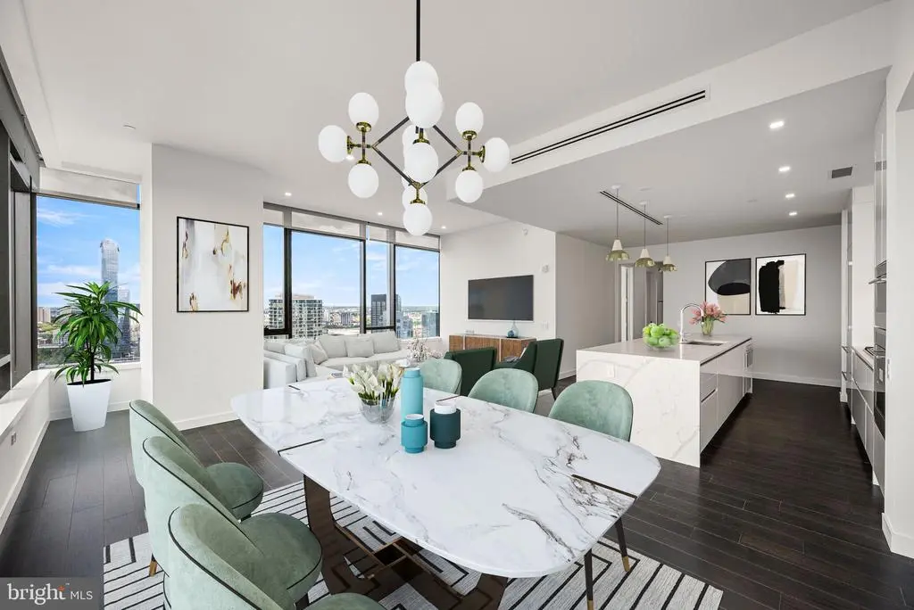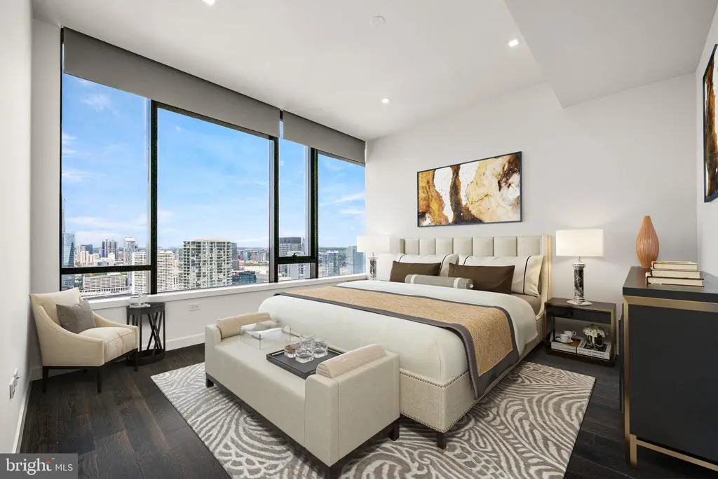 Welcome to The Laurel. Named for Pennsylvania's state flower, The Laurel introduces a lifestyle worthy of this final residential opportunity on prestigious Rittenhouse Square. With hotel-like amenities included for all owners, we offer the carefree enjoyment of city living. The meticulously curated array of services and amenities include an indoor and outdoor pool along with a stunning club room and expansive terrace overlooking the Square. "Above it All" with panoramic vistas of city and sky, we are the tallest all residential building in Philadelphia. The Sky Residence 2(S2) on 27th floor is a 2 bedroom + study/2.5 bath home located on the South West corner. The western views from the expansive wraparound windows in the living and dining areas showcase the beautiful sunsets over the Schuylkill River. Over 2000 square feet of luxury awaits you. Featuring 10 foot ceilings, this home is sure to WOW ! The custom built high gloss Polar White European kitchen cabinets by Hans Krug flow into open living and dining areas. The appliance package includes a Sub-Zero integrated refrigerator, Wolf gas cooktop, state of the art steam oven and full size convection oven. The oversized kitchen island features White Statuary Quartz counters with waterfall edges, a large under mounted sink, Dornbracht faucet, Signature Series dishwasher and under-counter drawer microwave. The Owner's bathroom is complimented with by an expansive shower with Fantini shower fixtures. The luxurious freestanding soaking tub sits atop stunning marble floors surrounded by floor to ceiling porcelain walls. A laundry room with full size Maytag washer and vented dryer complete this magnificent residence. Our on-site Sales Gallery is open 7 days a week. ***One parking space is included in listed price, second parking space is available for additional $100,000***