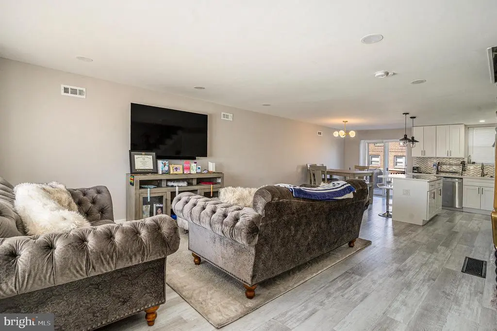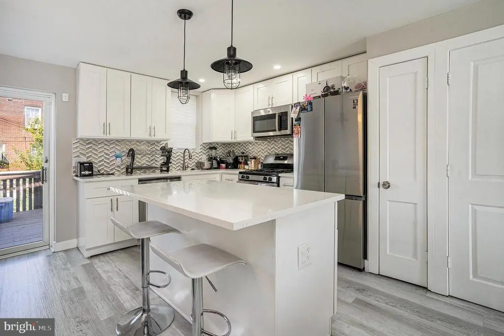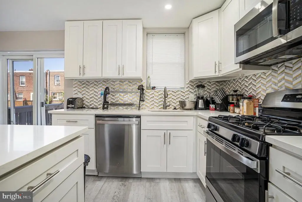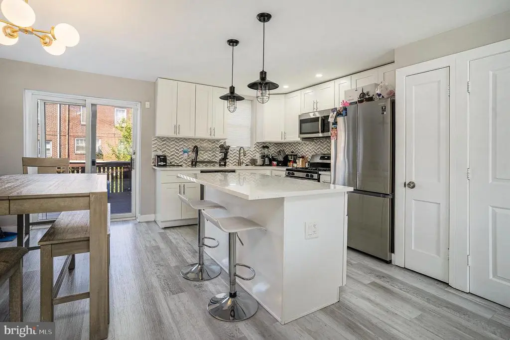Here’s your chance to own a recently renovated and pristine 3 Bed / 2 Full Bath home in West Oak Lane with a fully finished basement and dedicated parking! Step through the charming wooden front door into the main living area featuring modern luxury vinyl plank flooring, classic iron and brass railing, and flooded by an abundance of natural light. The gourmet kitchen is designed for both style and function - complete with 42" white shaker cabinetry with soft-close drawers, gleaming quartz countertops, a contemporary decorative tile backsplash, a spacious island with seating for two and pendant lights above, newer stainless steel appliances, a pantry, and a stainless steel sink. Beyond the kitchen are sliding glass doors that lead to a large deck - perfect for all of your outdoor entertaining needs! Upstairs, you’ll find three spacious bedrooms with ample closet storage, along with a stunning modern bathroom featuring a skylight, subway tile tub surround, and decorative floor tile. The fully finished basement provides even more living space - ideal for entertaining or relaxing, and includes a washer/dryer hookup, a second full beautifully finished bathroom with a large standing shower, glass doors, elegant tilework, and a newer vanity. From the basement, you can walk directly out to the rear driveway, which has an oversized dedicated 1-car parking space. Other features of this amazing home include a newer HVAC system with a manufacturer’s warranty, newer electrical and plumbing, replacement windows, and newer GAF roof shingles with a warranty. The main roof has also been recently sealed. Additional upgrades include recessed lighting throughout, stylish fixtures, wall-mounted flat screen TV hookups in the living area, basement, and primary bedroom, upgraded baseboard moldings, and energy-saving dual flush toilets. Every detail has been thoughtfully selected to combine classic charm with modern convenience. Don’t miss your opportunity to see this home! Schedule your showing today.