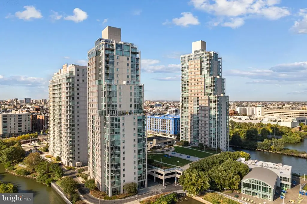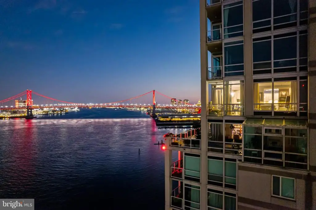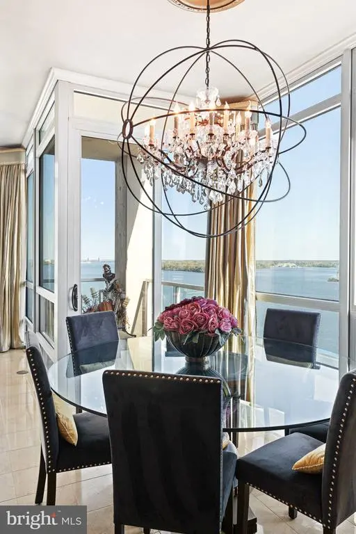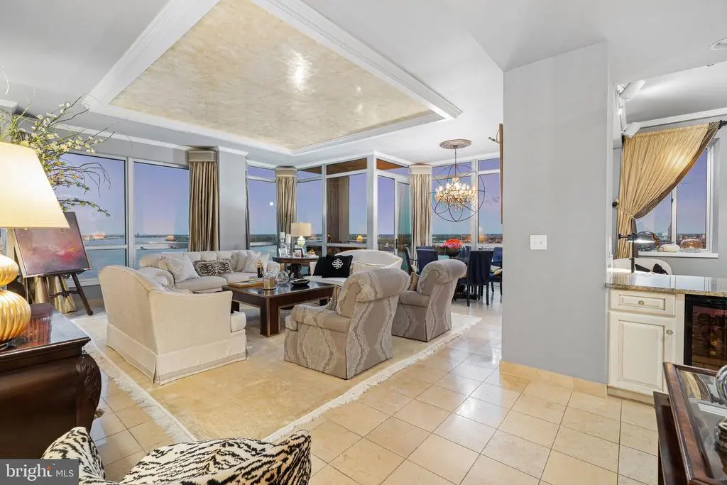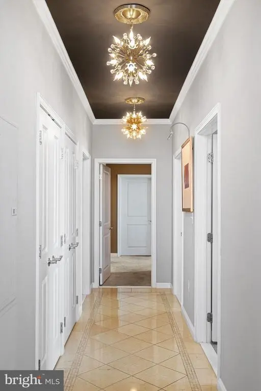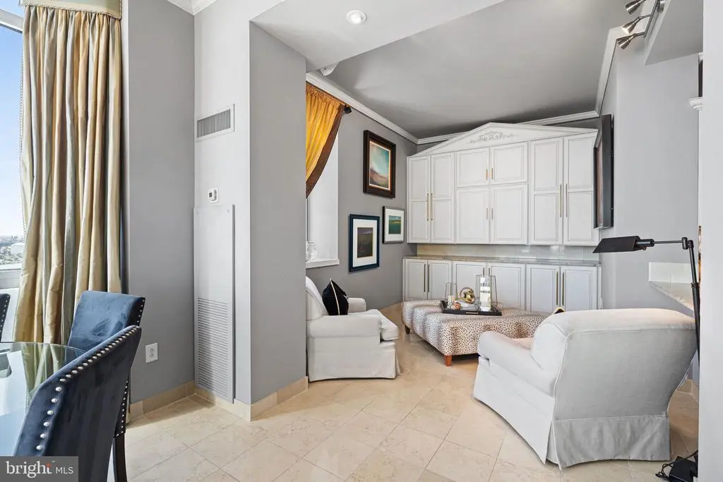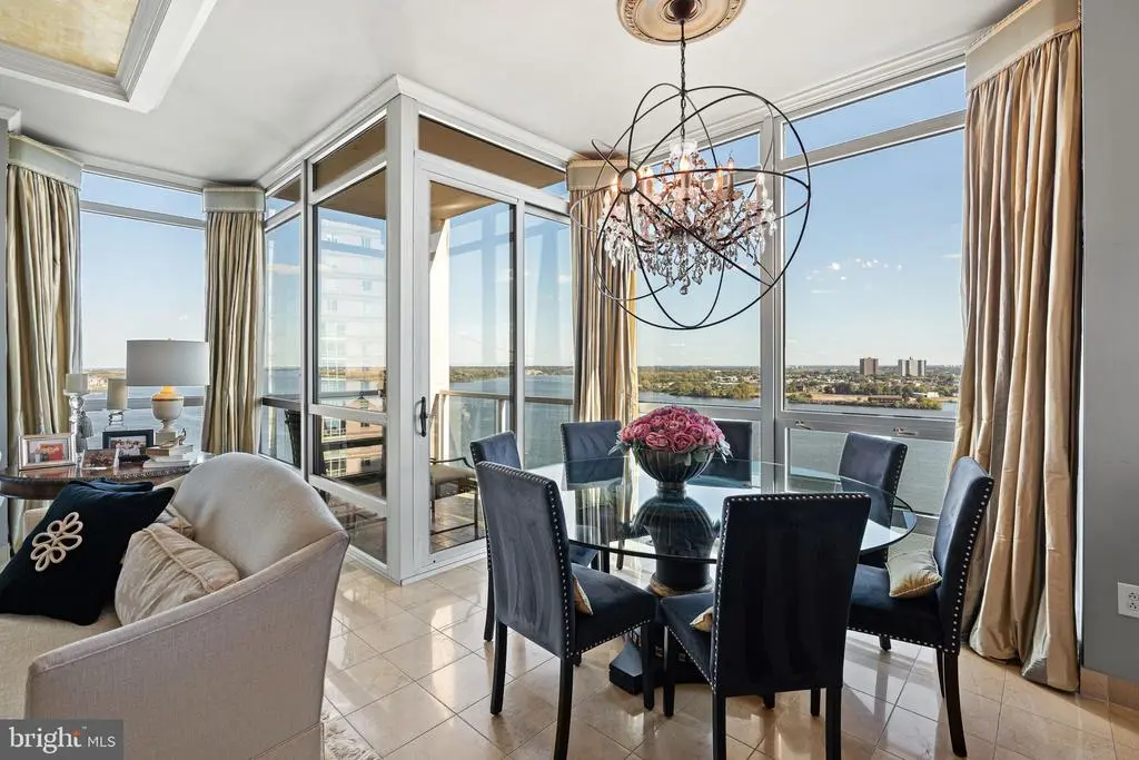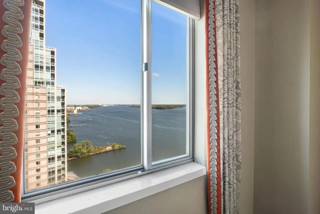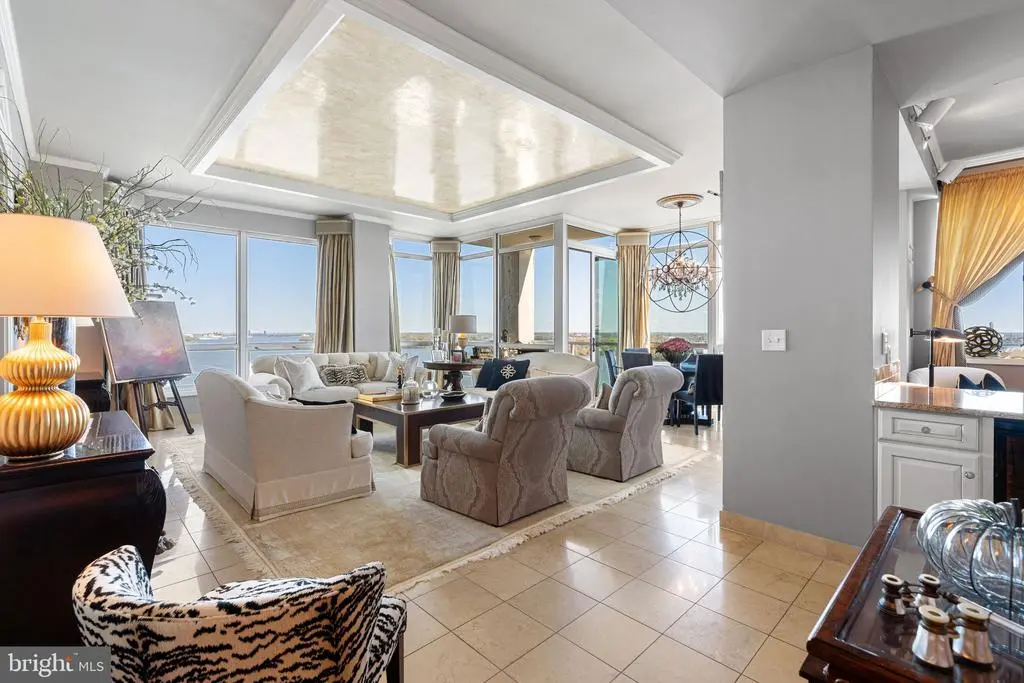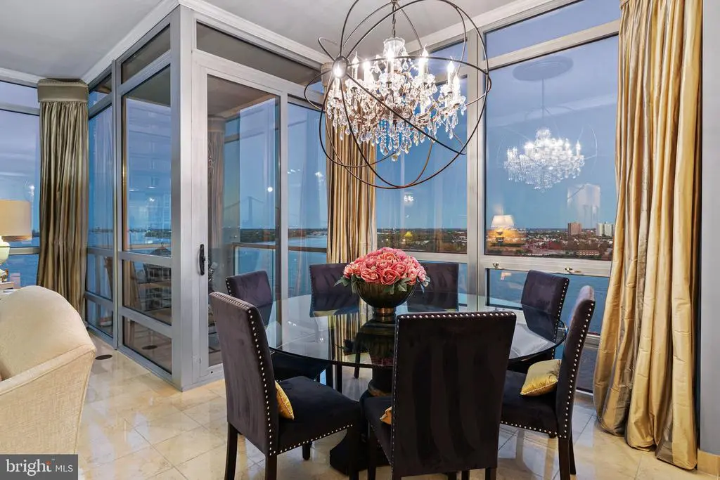 From the moment you step through the doors of P1501, it’s immediately clear this home has been designed with no detail overlooked. A sense of quiet elegance fills the space, beginning in the foyer, where specialty wall finishes shimmer beneath a Schonbek crystal chandelier. The polished marble tile flooring, which continues throughout the residence, sets a tone of refinement, while a double coat closet adds concealed functionality. Just off the entry, the powder room offers a touch of sophistication with its custom vanity, stone countertop, and designer lighting—a perfect welcome for guests. Heading into the main living area, the home opens to breathtaking scale. Ten-foot ceilings, crown moulding, and floor-to-ceiling windows showcase uninterrupted views of the Delaware River and Ben Franklin Bridge, bathing the interiors in natural light. The coffered ceiling, finished in a Venetian-inspired, hand-painted metallic plaster, captures the glow of day and the shimmer of evening chandeliers. Imported draperies frame the walls of glass. Suspended above the dining table, a Swarovski crystal orb chandelier becomes a sculptural centerpiece, highlighting this seating area. Continuing into the kitchen, form and function unite in harmony. Granite countertops contrast beautifully with custom cream cabinetry detailed with glass fronts, complemented by a natural stone backsplash and under-cabinet lighting. A built-in wine refrigerator and full stainless-steel appliance package enhance the space’s practicality, while the open layout encourages both culinary creativity and effortless entertaining. Every element here feels balanced—warm, welcoming, and meticulously crafted. Beyond the kitchen, the den transitions into an intimate media room, enveloped in sound thanks to the built-in surround system. The polished marble continues underfoot, maintaining visual flow, while layered lighting creates a cozy ambiance ideal for film, music, or quiet evenings in. The den features custom built-in cabinetry thoughtfully designed to conceal multimedia components, maintaining a clean, streamlined aesthetic. Versatile in function, this space transitions effortlessly between a media room as currently styled, a home office, or an extension of the kitchen for those seeking an open, connected layout. Stepping through glass doors, the balcony extends the living space outdoors. Here, the river and skyline unfold in full panorama—the bridge’s architectural lines rising gracefully above the water. It’s a peaceful setting that feels miles away from the city below. A frost panel design, glass door separates the private wing from the entertaining spaces beautifully, while allowing light to filter through. Each of the three bedrooms offers its own unique vantage and luxurious feel. The primary suite is a private retreat with a spa-inspired en-suite bathroom, walk-in closet, and serene river views. Additional bedrooms ensure ample space for both relaxation and productivity. Every bath is finished with custom tilework, and high-end fixtures, continuing the home’s elevated aesthetic. Completing the offering are two premium parking licenses and a storage unit, ensuring convenience and peace of mind. All crystal light fixtures convey. Waterfront Square Condominium & Spa is Philadelphia’s premier gated waterfront community, offering 24/7 guard and gate security, concierge. Residents enjoy resort-style amenities including an indoor pool and hot tub with river deck, fitness center, sauna and steam rooms, massage suites, and community lounges. The three-level garage supports Philadelphia’s largest green roof, and landscaped gardens across 9.5 acres of manicured riverfront grounds. On-site management and an advanced closed-circuit security system ensure peace of mind, while Global Limousine shuttle service provides weekday transportation to and from 30th Street Station.