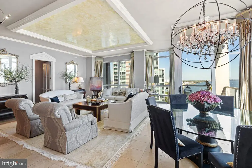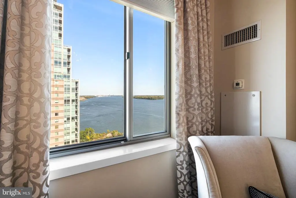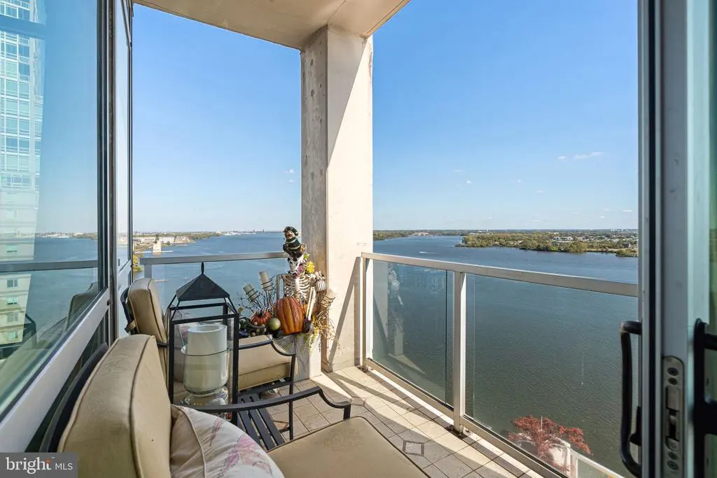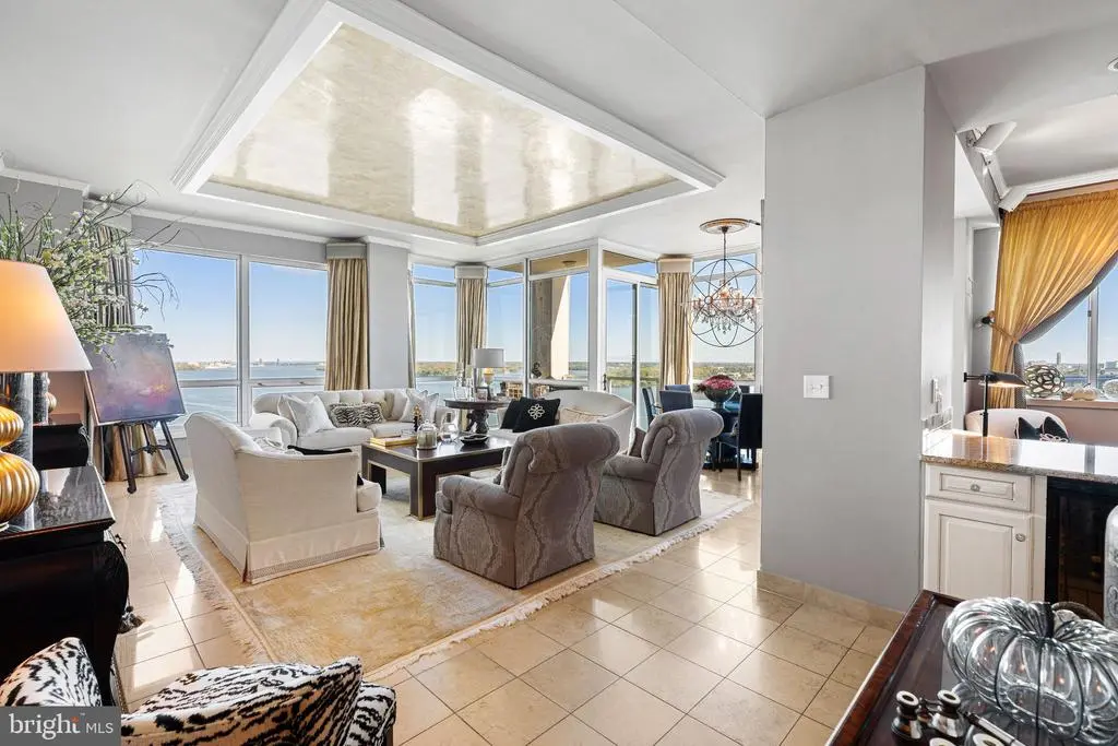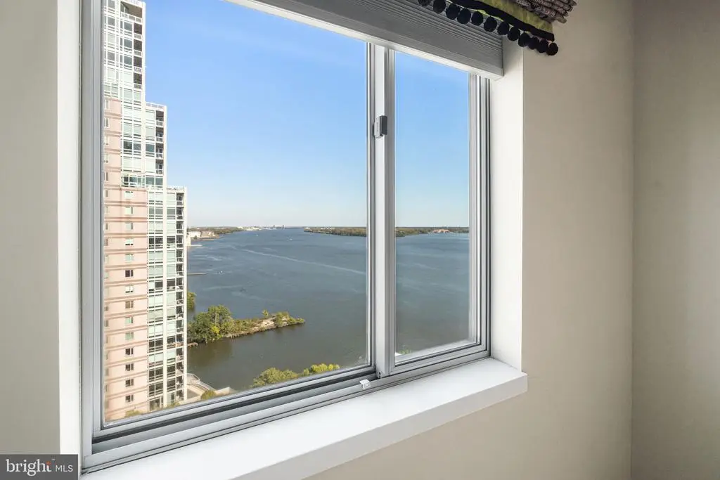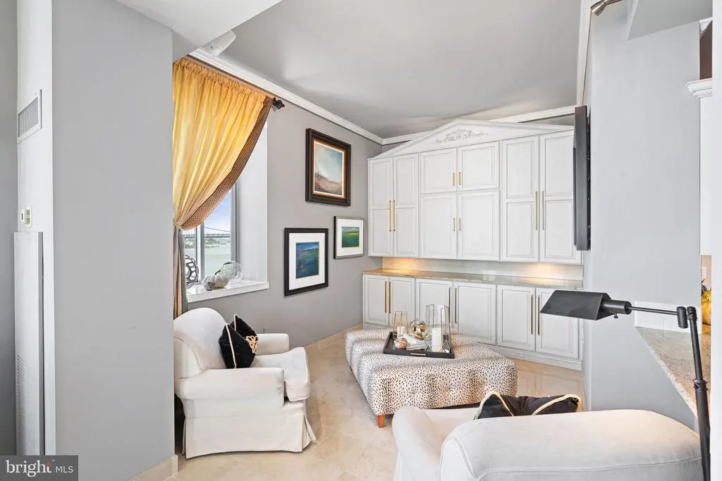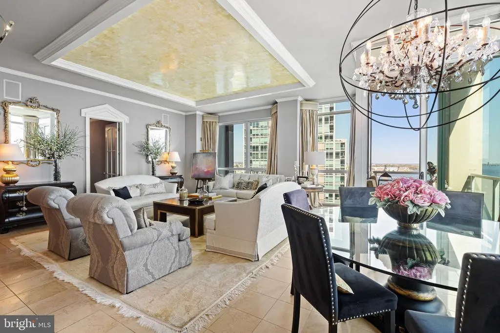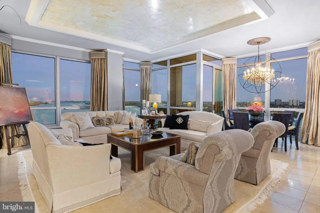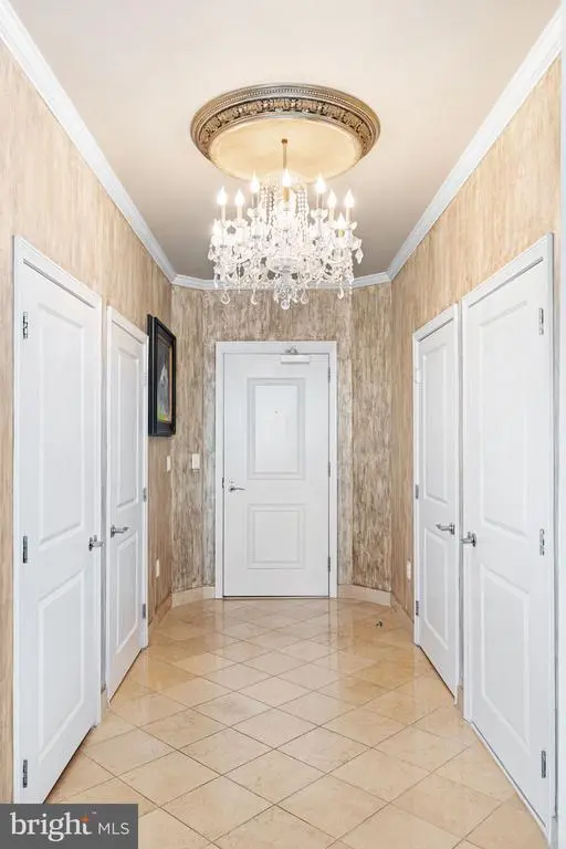 From the moment you step through the doors of P1501, it’s immediately clear this home has been designed with no detail overlooked. A sense of quiet elegance fills the space, beginning in the foyer, where specialty wall finishes shimmer beneath a Schonbek crystal chandelier. The polished marble tile flooring, which continues throughout the residence, sets a tone of refinement, while a double coat closet adds concealed functionality. Just off the entry, the powder room offers a touch of sophistication with its custom vanity, stone countertop, and designer lighting—a perfect welcome for guests. Heading into the main living area, the home opens to breathtaking scale. Ten-foot ceilings, crown moulding, and floor-to-ceiling windows showcase uninterrupted views of the Delaware River and Ben Franklin Bridge, bathing the interiors in natural light. The coffered ceiling, finished in a Venetian-inspired, hand-painted metallic plaster, captures the glow of day and the shimmer of evening chandeliers. Imported draperies frame the walls of glass. Suspended above the dining table, a Swarovski crystal orb chandelier becomes a sculptural centerpiece, highlighting this seating area. Continuing into the kitchen, form and function unite in harmony. Granite countertops contrast beautifully with custom cream cabinetry detailed with glass fronts, complemented by a natural stone backsplash and under-cabinet lighting. A built-in wine refrigerator and full stainless-steel appliance package enhance the space’s practicality, while the open layout encourages both culinary creativity and effortless entertaining. Every element here feels balanced—warm, welcoming, and meticulously crafted. Beyond the kitchen, the den transitions into an intimate media room, enveloped in sound thanks to the built-in surround system. The polished marble continues underfoot, maintaining visual flow, while layered lighting creates a cozy ambiance ideal for film, music, or quiet evenings in. The den features custom built-in cabinetry thoughtfully designed to conceal multimedia components, maintaining a clean, streamlined aesthetic. Versatile in function, this space transitions effortlessly between a media room as currently styled, a home office, or an extension of the kitchen for those seeking an open, connected layout. Stepping through glass doors, the balcony extends the living space outdoors. Here, the river and skyline unfold in full panorama—the bridge’s architectural lines rising gracefully above the water. It’s a peaceful setting that feels miles away from the city below. A frost panel design, glass door separates the private wing from the entertaining spaces beautifully, while allowing light to filter through. Each of the three bedrooms offers its own unique vantage and luxurious feel. The primary suite is a private retreat with a spa-inspired en-suite bathroom, walk-in closet, and serene river views. Additional bedrooms ensure ample space for both relaxation and productivity. Every bath is finished with custom tilework, and high-end fixtures, continuing the home’s elevated aesthetic. Completing the offering are two premium parking licenses and a storage unit, ensuring convenience and peace of mind. All crystal light fixtures convey. Waterfront Square Condominium & Spa is Philadelphia’s premier gated waterfront community, offering 24/7 guard and gate security, concierge. Residents enjoy resort-style amenities including an indoor pool and hot tub with river deck, fitness center, sauna and steam rooms, massage suites, and community lounges. The three-level garage supports Philadelphia’s largest green roof, and landscaped gardens across 9.5 acres of manicured riverfront grounds. On-site management and an advanced closed-circuit security system ensure peace of mind, while Global Limousine shuttle service provides weekday transportation to and from 30th Street Station.