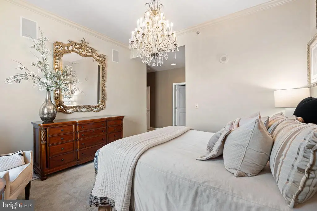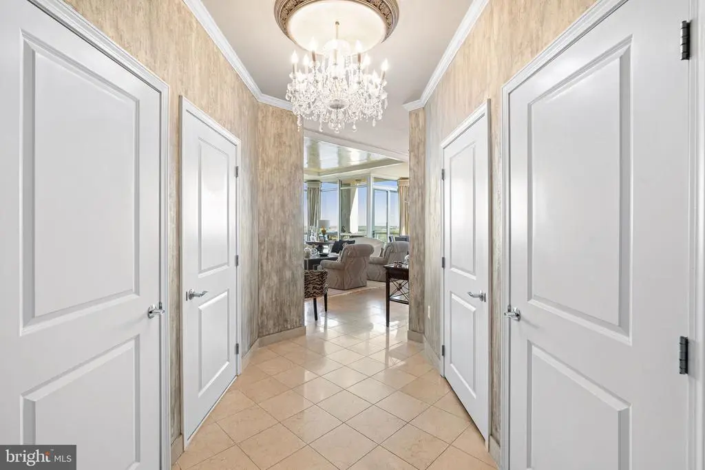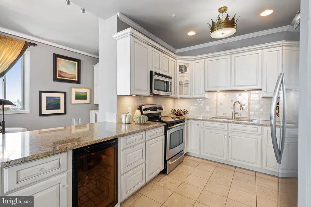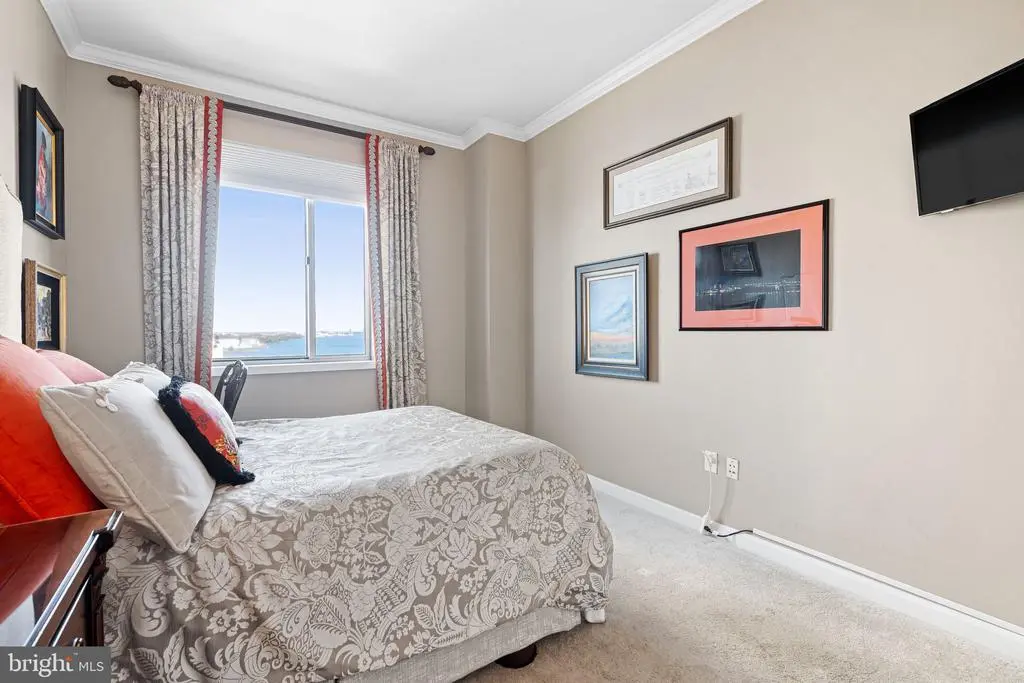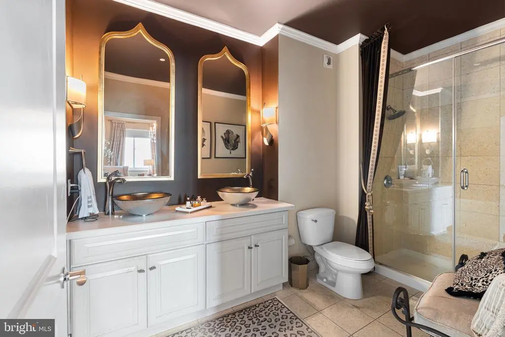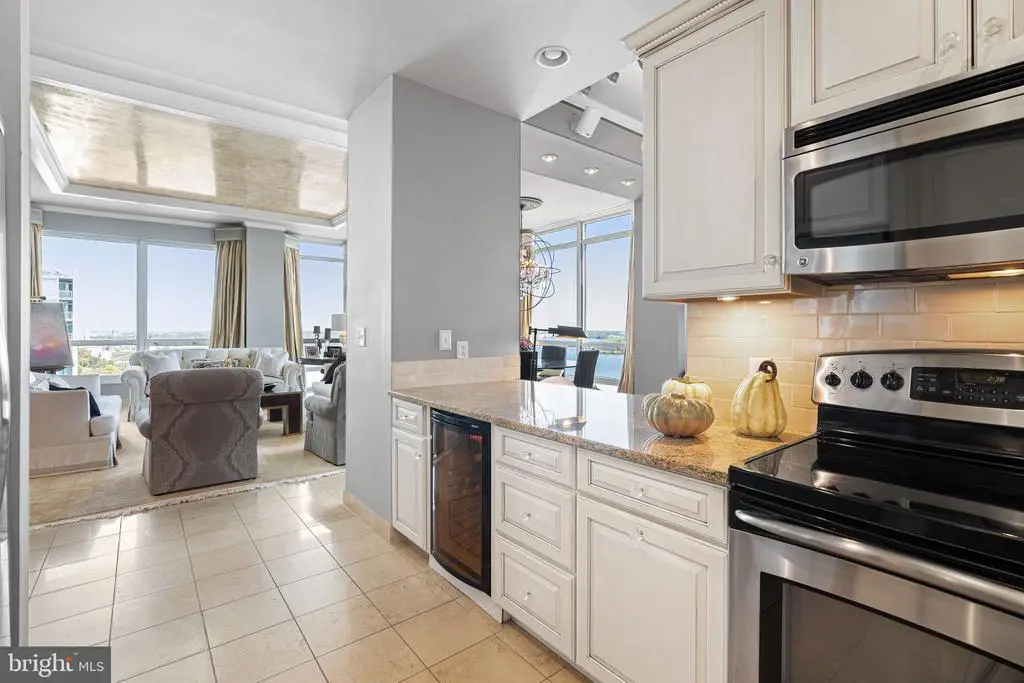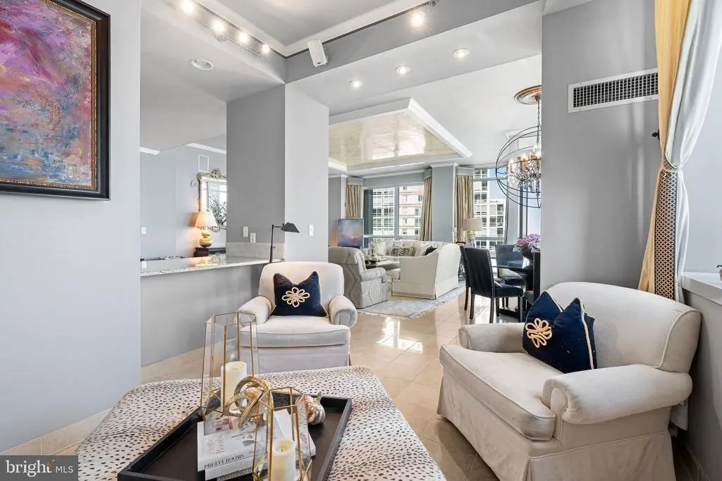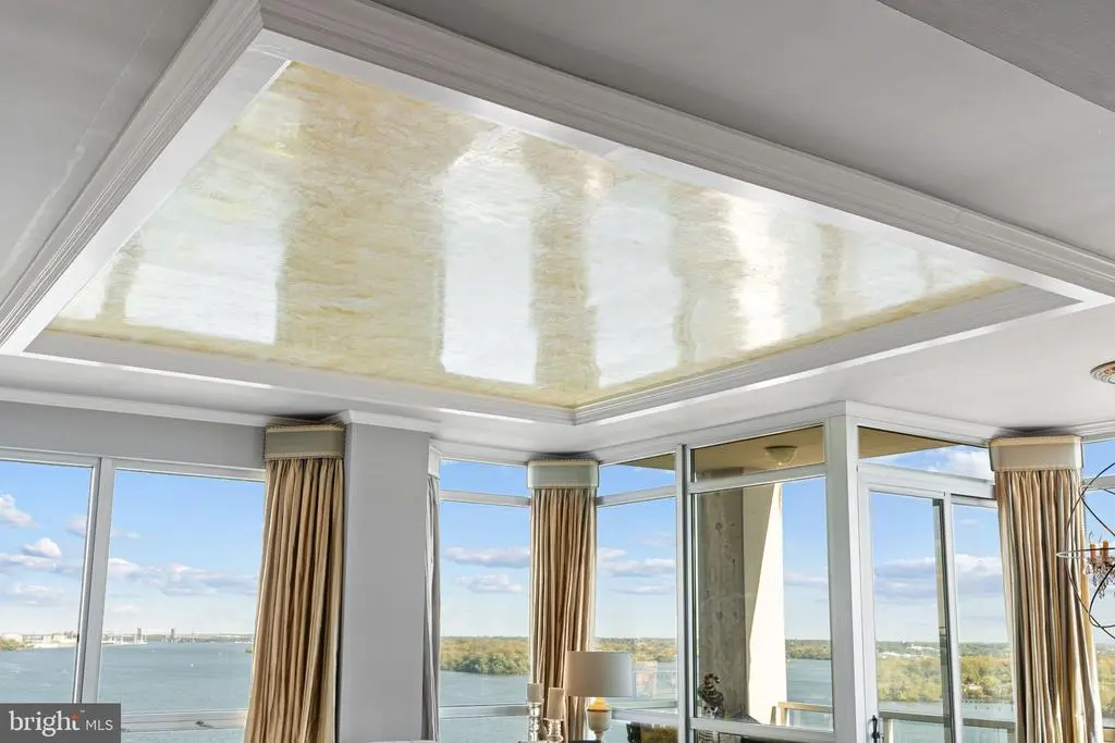 From the moment you step through the doors of P1501, it’s immediately clear this home has been designed with no detail overlooked. A sense of quiet elegance fills the space, beginning in the foyer, where specialty wall finishes shimmer beneath a Schonbek crystal chandelier. The polished marble tile flooring, which continues throughout the residence, sets a tone of refinement, while a double coat closet adds concealed functionality. Just off the entry, the powder room offers a touch of sophistication with its custom vanity, stone countertop, and designer lighting—a perfect welcome for guests. Heading into the main living area, the home opens to breathtaking scale. Ten-foot ceilings, crown moulding, and floor-to-ceiling windows showcase uninterrupted views of the Delaware River and Ben Franklin Bridge, bathing the interiors in natural light. The coffered ceiling, finished in a Venetian-inspired, hand-painted metallic plaster, captures the glow of day and the shimmer of evening chandeliers. Imported draperies frame the walls of glass. Suspended above the dining table, a Swarovski crystal orb chandelier becomes a sculptural centerpiece, highlighting this seating area. Continuing into the kitchen, form and function unite in harmony. Granite countertops contrast beautifully with custom cream cabinetry detailed with glass fronts, complemented by a natural stone backsplash and under-cabinet lighting. A built-in wine refrigerator and full stainless-steel appliance package enhance the space’s practicality, while the open layout encourages both culinary creativity and effortless entertaining. Every element here feels balanced—warm, welcoming, and meticulously crafted. Beyond the kitchen, the den transitions into an intimate media room, enveloped in sound thanks to the built-in surround system. The polished marble continues underfoot, maintaining visual flow, while layered lighting creates a cozy ambiance ideal for film, music, or quiet evenings in. The den features custom built-in cabinetry thoughtfully designed to conceal multimedia components, maintaining a clean, streamlined aesthetic. Versatile in function, this space transitions effortlessly between a media room as currently styled, a home office, or an extension of the kitchen for those seeking an open, connected layout. Stepping through glass doors, the balcony extends the living space outdoors. Here, the river and skyline unfold in full panorama—the bridge’s architectural lines rising gracefully above the water. It’s a peaceful setting that feels miles away from the city below. A frost panel design, glass door separates the private wing from the entertaining spaces beautifully, while allowing light to filter through. Each of the three bedrooms offers its own unique vantage and luxurious feel. The primary suite is a private retreat with a spa-inspired en-suite bathroom, walk-in closet, and serene river views. Additional bedrooms ensure ample space for both relaxation and productivity. Every bath is finished with custom tilework, and high-end fixtures, continuing the home’s elevated aesthetic. Completing the offering are two premium parking licenses and a storage unit, ensuring convenience and peace of mind. All crystal light fixtures convey. Waterfront Square Condominium & Spa is Philadelphia’s premier gated waterfront community, offering 24/7 guard and gate security, concierge. Residents enjoy resort-style amenities including an indoor pool and hot tub with river deck, fitness center, sauna and steam rooms, massage suites, and community lounges. The three-level garage supports Philadelphia’s largest green roof, and landscaped gardens across 9.5 acres of manicured riverfront grounds. On-site management and an advanced closed-circuit security system ensure peace of mind, while Global Limousine shuttle service provides weekday transportation to and from 30th Street Station.