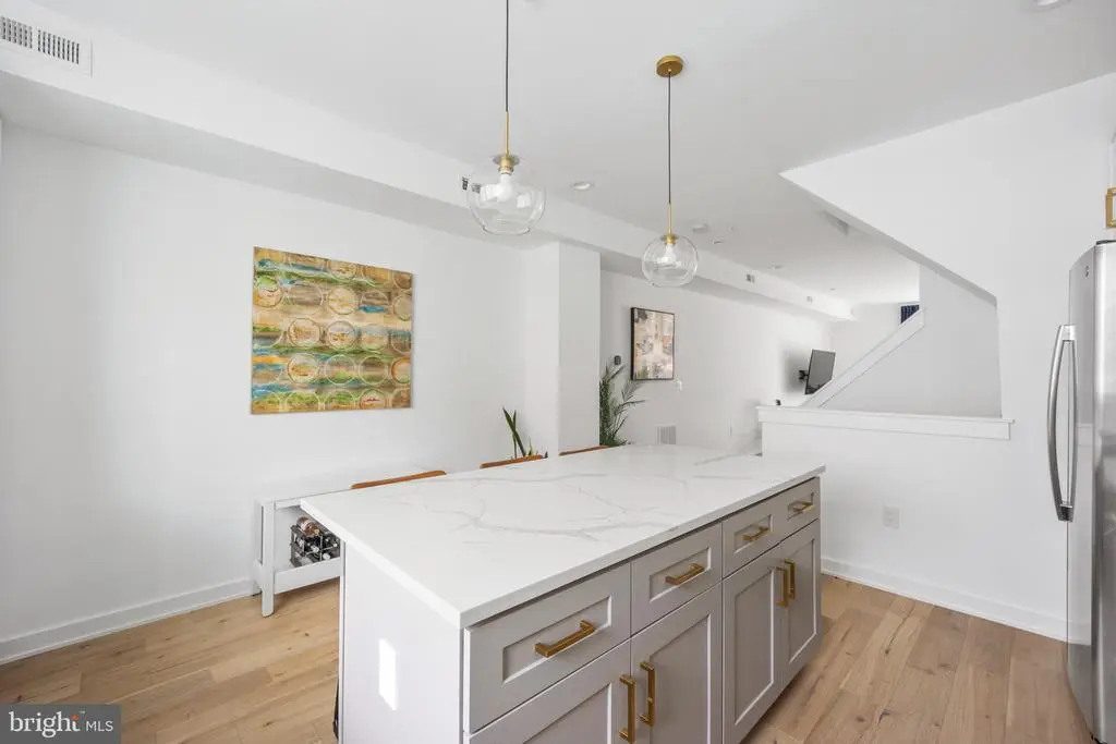 Modern Townhome with Garage, Rooftop Deck & Tax Abatement. Welcome to 1925 N Palethorp Street — a spacious 4-bedroom, 4-bath townhome over 2,300 sq. ft. of modern living, a 1-car garage, and a rooftop deck with sweeping skyline views. Completed in 2020, this home still benefits from 5 years of Philadelphia’s tax abatement (current taxes approx. $129/month). Main Features: Bright & Open Living Spaces: The second floor is designed for entertaining, with floor-to-ceiling windows, hardwood floors, and an open-concept living and dining area. The gourmet kitchen features quartz countertops, stainless steel appliances, a large island, and stylish cabinetry. Private Outdoor Spaces: Enjoy a ground-floor patio with sliding door access, or head upstairs to the rooftop deck — complete with a wet bar and beverage fridge on the third floor for easy entertaining. Flexible Layout: The ground floor offers a bedroom/office with natural light and full bath. The finished basement includes a full bath, laundry area, and versatile space that could serve as a gym, home office, media room, or guest suite. Bedroom Retreats: The third floor includes a primary suite with two large closets and en-suite bath, plus a second bedroom with its own full bath. Neighborhood & Location: Situated on a newly regraded street with updated utilities, this home is surrounded by new construction and growth. The location offers incredible convenience: Two blocks to a brand-new full grocery store. Walking distance to SEPTA bus stops and Berks Station on the Market-Frankford Line. Minutes from Fishtown and Northern Liberties — enjoy award-winning restaurants, bars, bakeries, coffee shops, yoga studios, and local shopping. Walk Score: 84 — daily errands are easy without a car. Additional upgrades include security cameras, high-speed optical internet, and modern cabling. This home delivers the perfect balance of space, style, and location — all with the peace of mind of a tax abatement and parking!